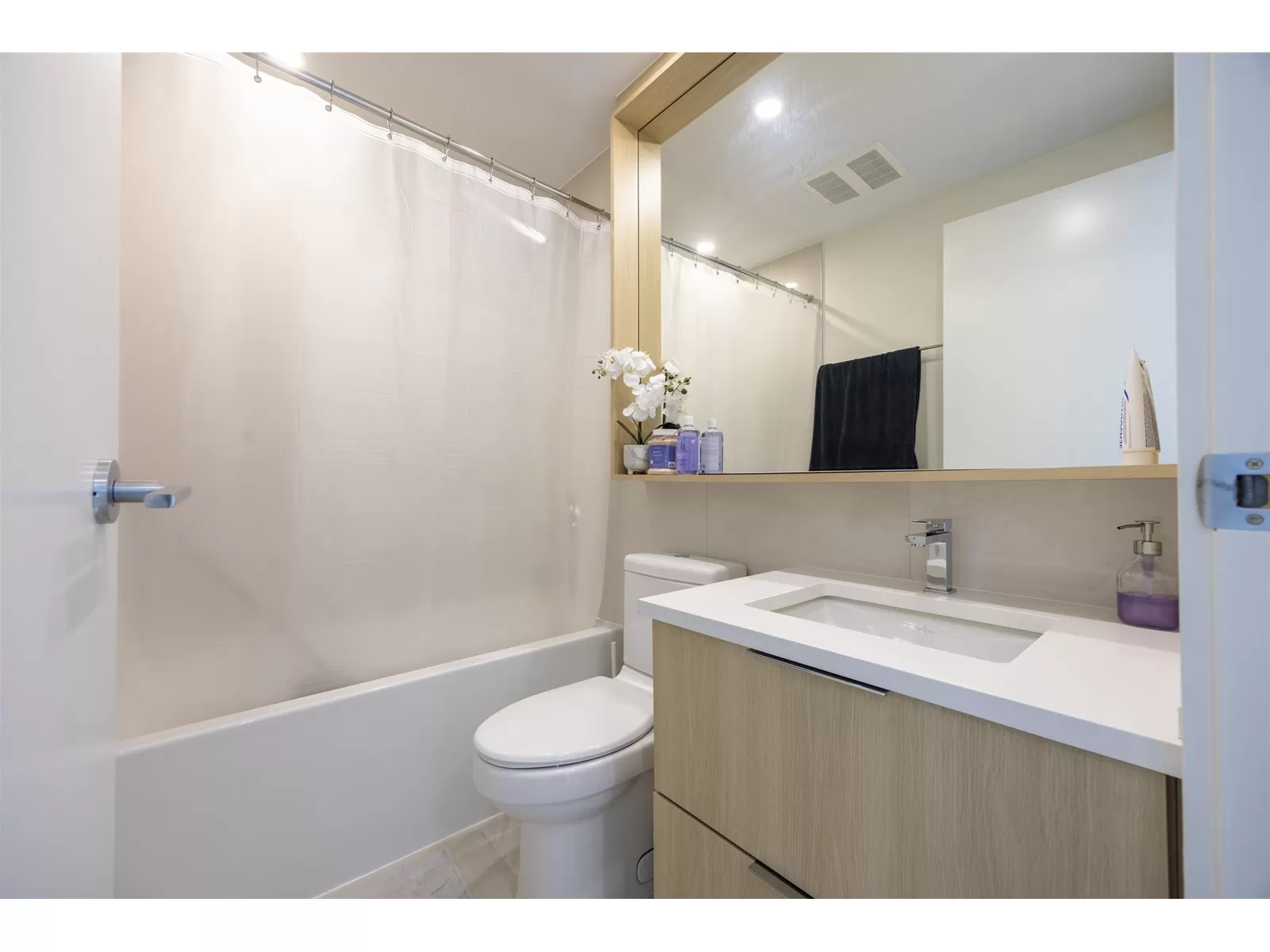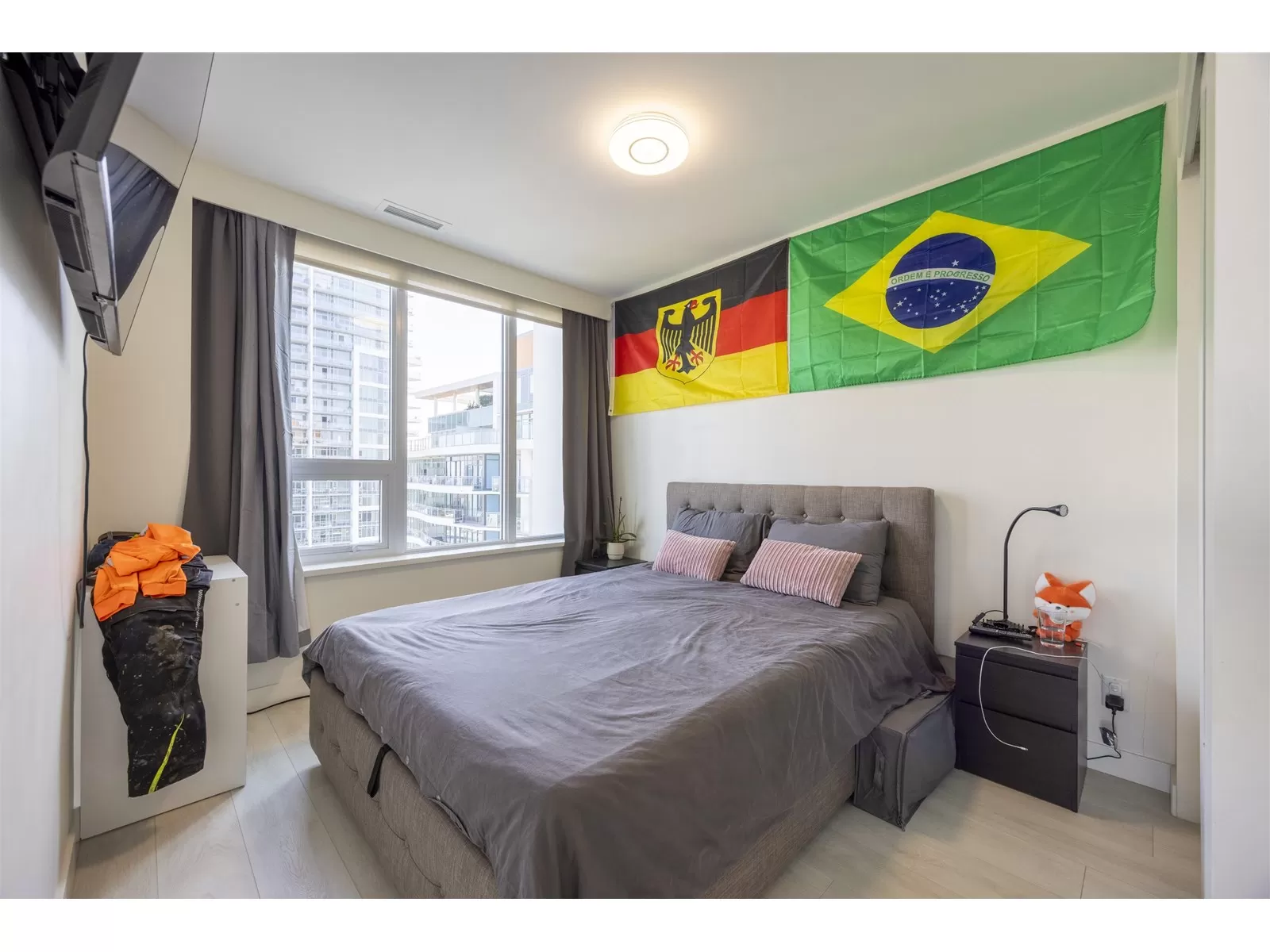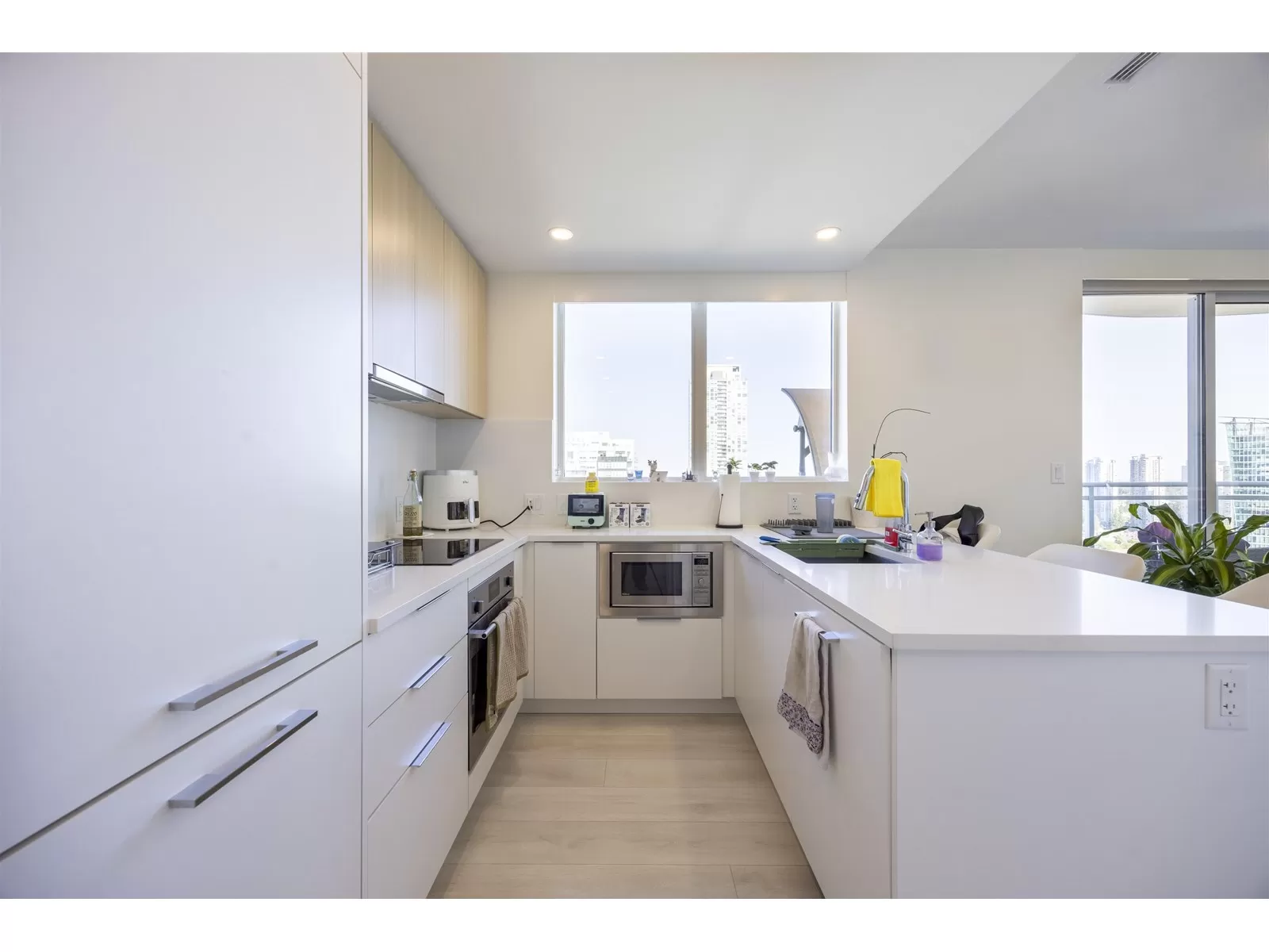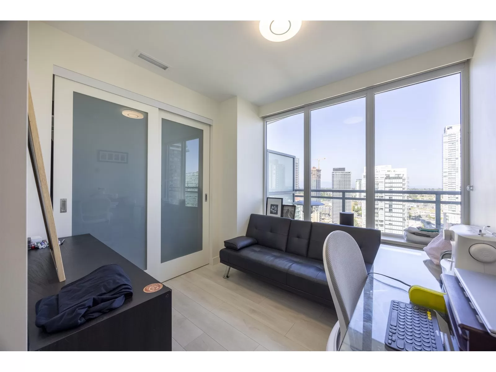 Subpenhouse Corner unit with views of city and mountain. This rarely available SOUTHEAST facing 2 bedroom 2 bath units has functional layout, laminate flooring through out, wrap-around big balcony, and high ceiling. Steps to skytrain station, SFU campus, KPU campus, library, city hall, shopping, restaurants and a lot more. This AIR CONDITIONED concrete high-rise building offers over 14,000 sf of indoor/outdoor amenities: outdoor courtyard with a children's play area, rooftop patio, social area, two-level fitness facility, co-working space, indoor lounge, social kitchen, dining area, games and media room, parcel room, dog wash and run area.1 PARKING + 1 STORAGE LOCKER (id:27476)