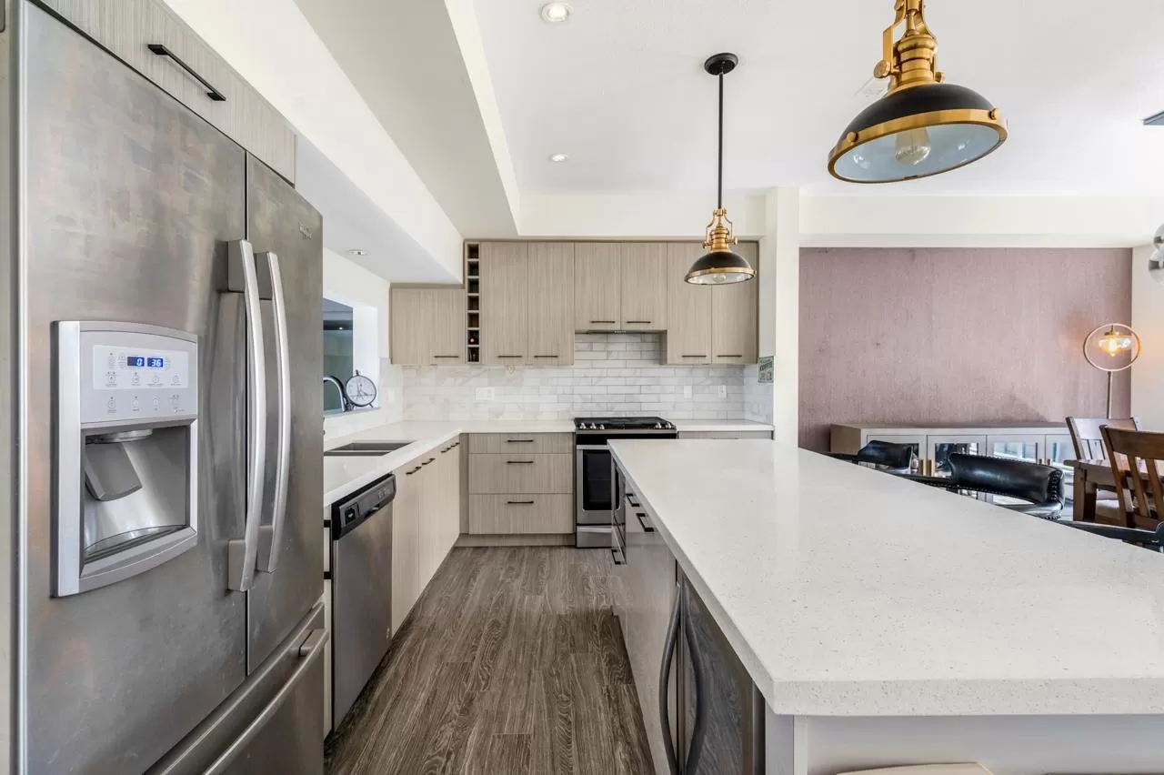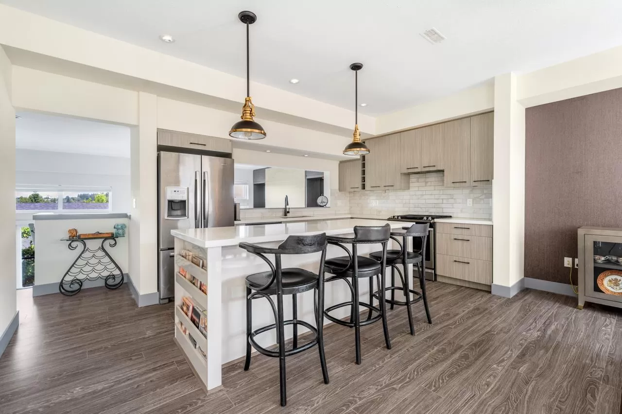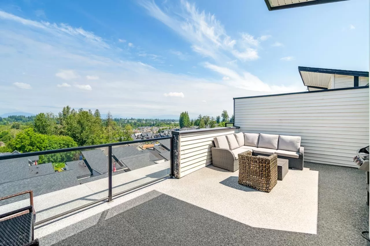 Welcome to Summit by Hayer at Sullivan Station, Surrey! This beautiful townhouse offers: Stunning Rooftop Patio: Enjoy an oversized rooftop patio with unobstructed mountain views | Double Car Garage: Convenient and secure parking | Open-Concept Main Floor: A unique, spacious layout with high ceilings, perfect for entertaining and family life | Gourmet Kitchen: A chef-inspired kitchen featuring stainless steel appliances, quartz counter top, a pantry, wine fridge, and a large kitchen island |Comfort & Style: Equipped with air conditioning and meticulously maintained, this home is spotlessly clean and ready for you to move in. | 3 outdoor space: balcony, back yard, roof top. (id:27476)