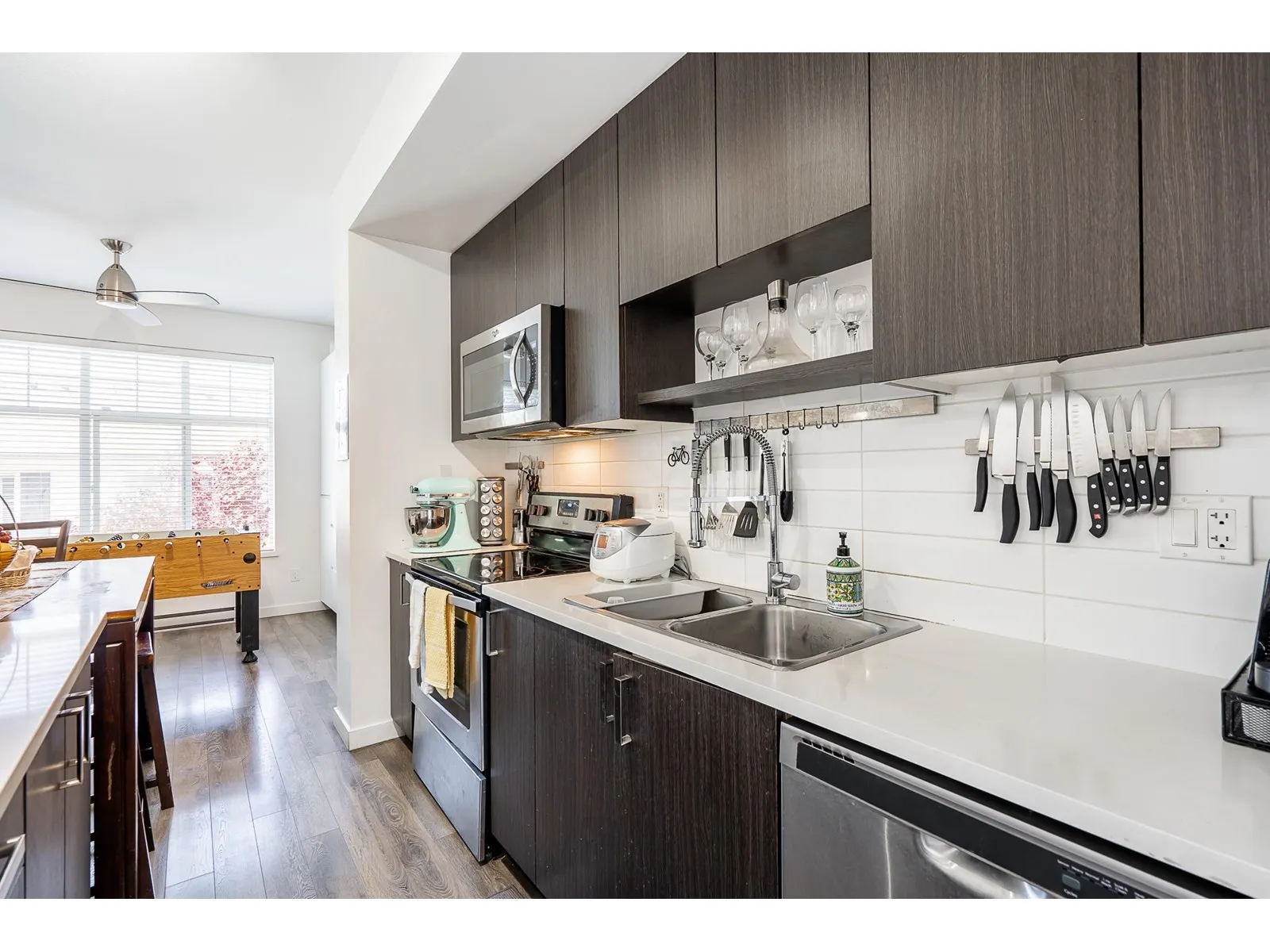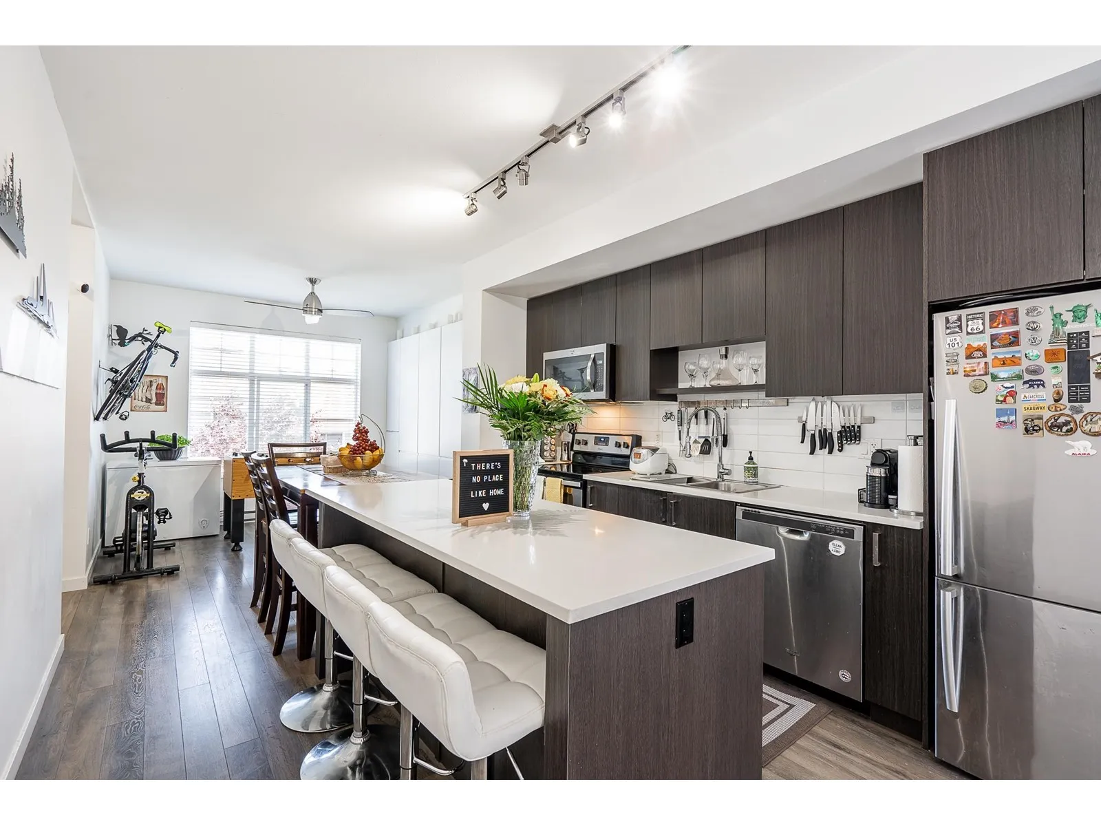 Your search is over! The main level of this beautiful 4-bedroom townhouse by Dawson and Sawyer offers an open concept layout, a gourmet kitchen with stainless steel appliances, a good-sized kitchen island, a powder room, and a sunken living room with access to a large balcony. Upper level consists of Master's bedroom with mountain view, upgraded walk-through closet leading to in-suite bath, 2 bedrooms and a full bath. One bedroom with full bath, front yard and 2 side by side car garage completes the lower level. Other features include extra parking space, added more storage spaces in the kitchen and master's bedroom, updated washer/dryer and recently renovated stairs. Close to transit, shopping, schools and Surrey Memorial Hospital. (id:27476)