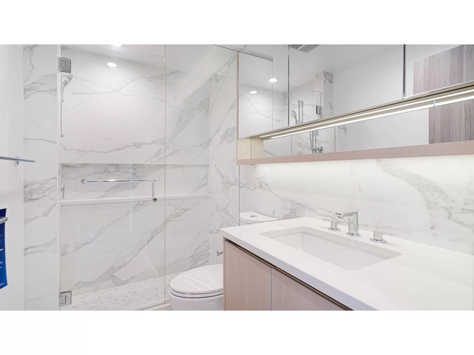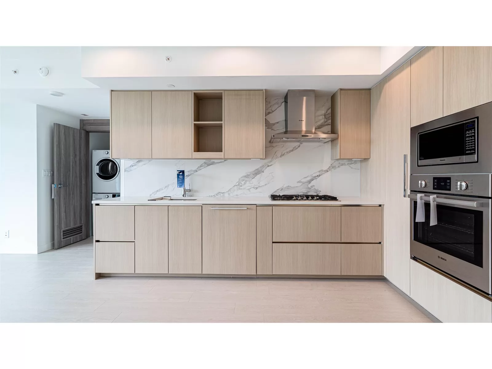 Welcome to this bright and spacious home in the final phase of Concord Pacific's master-planned community in Surrey. This upper-level unit offers expansive, unobstructed North facing views, a generous wraparound balcony, and a functional open layout with floor-to-ceiling windows that food the space with natural light. The sleek one-wall kitchen is equipped with premium appliances, quartz countertops, modern cabinetry, and smart storage solutions. The primary bedroom features a private ensuite and its own balcony, while both bathrooms include hidden mirror storage for added convenience. Comfort is guaranteed year-round with built-in A/C and a smart thermostat. Located just steps from King George SkyTrain Station, SFU, Kwantlen Polytechnic, T&T, Walmart, and Central City Mall. (id:27476)