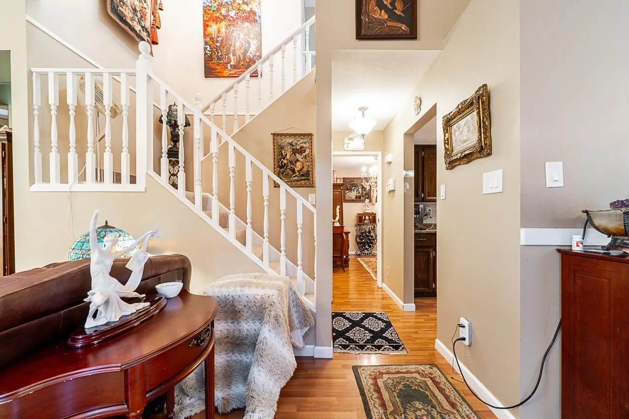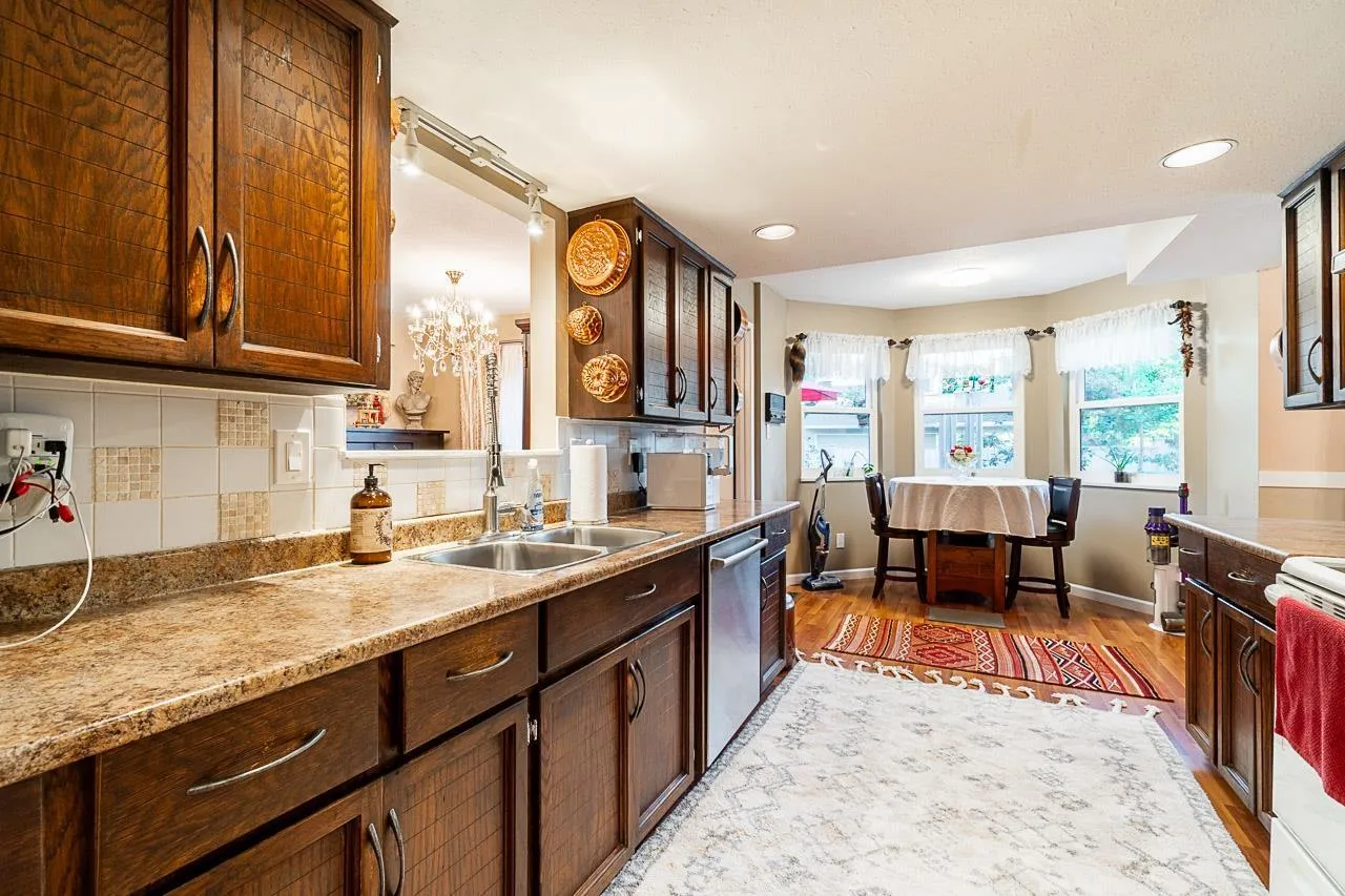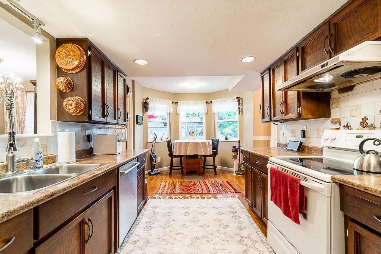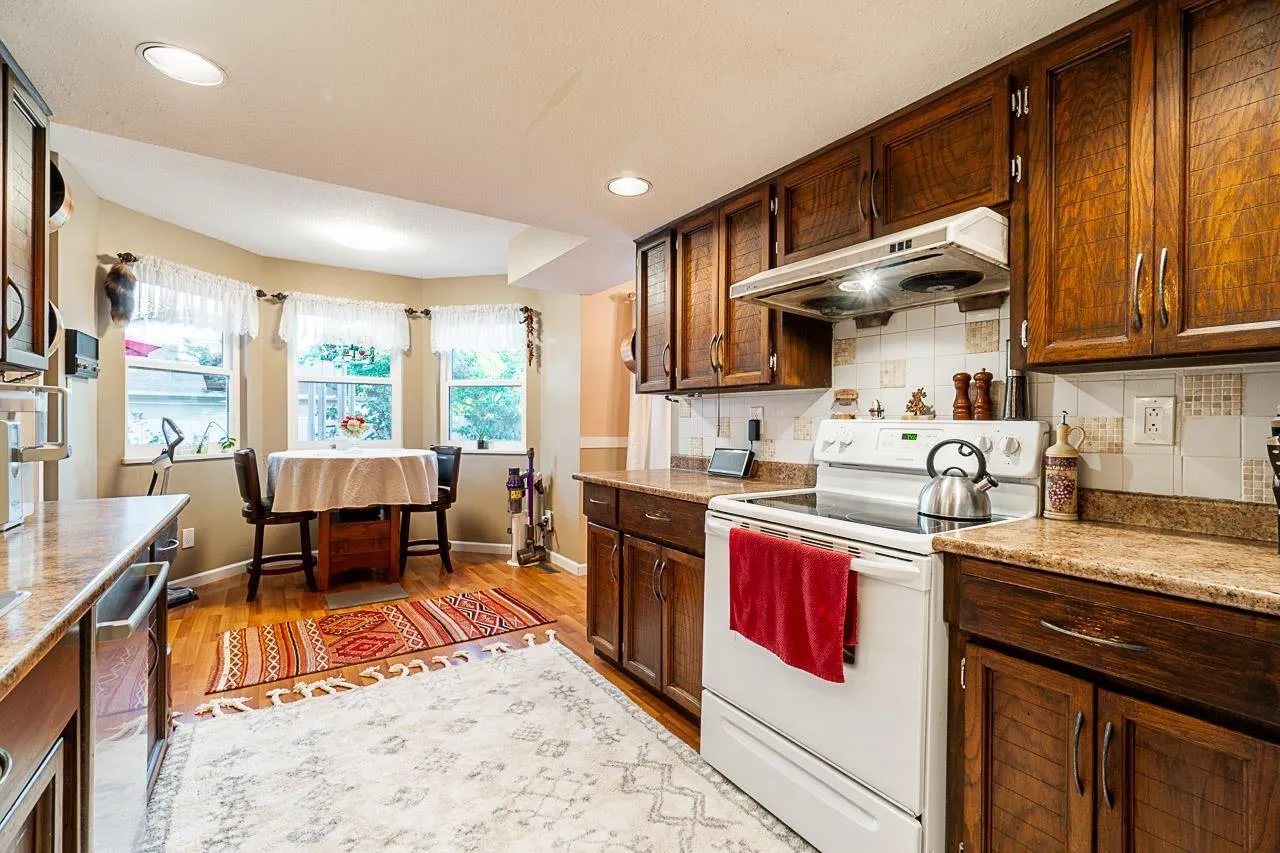 Welcome to your forever home in the heart of Guildford! This ideal family residence features 4 bedrooms, 3 bathrooms, and 2 kitchens across nearly 2,500 sq ft of well-planned living space. Situated on a large corner lot with a private, fully fenced yard-perfect for kids, pets, and entertaining. Extensive updates include roof, skylights, windows, bathrooms, stainless steel appliances, furnace, hot water on demand, A/C, fence, deck, exterior paint, and more. The beautifully landscaped, south-facing backyard is a peaceful retreat with numerous fruit trees-too many varieties to list! It's a serene space to relax, play, and enjoy nature year-round. Bonus: MORTGAGE HELPER with private entrance, 3' crawl space for storage, and 2 cozy fireplaces. Located in the Lena Shaw, Bonaccord, and Guildford Park Secondary catchments. Walking distance to Guildford Town Centre and Green Timbers Urban Forest, with easy access to transit, SkyTrain, and Hwy 1. A perfect blend of comfort, convenience, and community awaits you here! (id:27476)