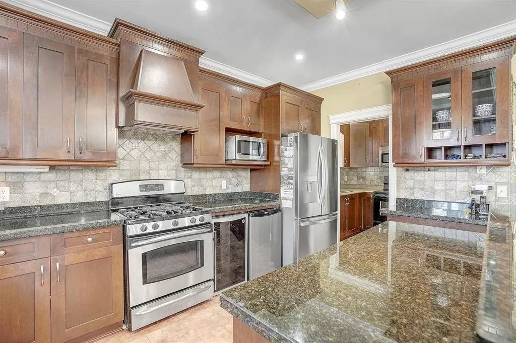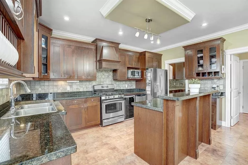 This stunning and well-maintained corner home in the best neighbourhood of Cloverdale offers 6 bedrooms and 6 bathrooms. Designed with high ceilings and elegant wide crown moldings, this home has a spacious formal living and dining area, along with a bright and airy family room featuring large windows that invite natural light throughout the day. The gourmet kitchen comes with stylish cabinetry, granite countertops, and a separate spice kitchen. Upstairs, you'll find 4 good-sized bedrooms, an office area, and a luxurious master ensuite with a jetted spa tub and shower. The lower level includes a 2 bedroom suite with its own laundry, plus a huge flex room and a washroom for upstairs use.. walking distance to Cloverdale Athletic Park, Fruiticana, transit, gyms, schools, and much more. (id:27476)