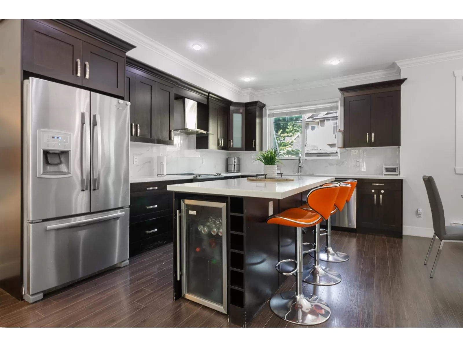 Well-Maintained and Gorgeous 4Bed & 4Bath 1647 sqft Spacious 2015 built townhouse is centrally located and close to everything. UPPER FLOOR features 3 large Bedrooms With 2 full Bathrooms, and Washer/Dryer. The Main Floor features Kitchen w/island, built-in wine fridge in island, granite countertops, valance lighting, sliding patio door with lots of natural light off deck and S/S appliances.Ground level- Bedroom With Full Bath **POTENTIAL FOR RENTAL INCOME**.DOUBLE SIDE BY SIDE GARAGE. Bonus: groceries shopping centre is just across the Street. Book your private showing to make this your next Home.Showings by appointments only. (id:27476)