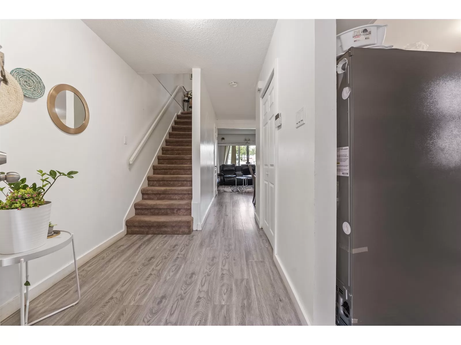 The Meadows Townhouse located in the heart of Surrey Central! Walk to Sky train, Local shops, Central City Mall Restaurants & Much more! End unit, Two story w/basement is, includes 3 bedrooms & 2 bathrooms. Bright corner unit with Big sized sliding glass door off the living room. Unit comes with 1 open parking stall & visitor parking. Fenced front yard and good size sundeck located on the backside with access to more street parking. Updated kitchen counters, vinyl flooring and nice tile back splash. Upstairs has good size bedrooms & closets. Basement features good size bedroom or rec room, updated bathroom vanity w/granite counter & roughed in shower. Enjoy the seasonal out door heated pool and tennis court. (id:27476)
