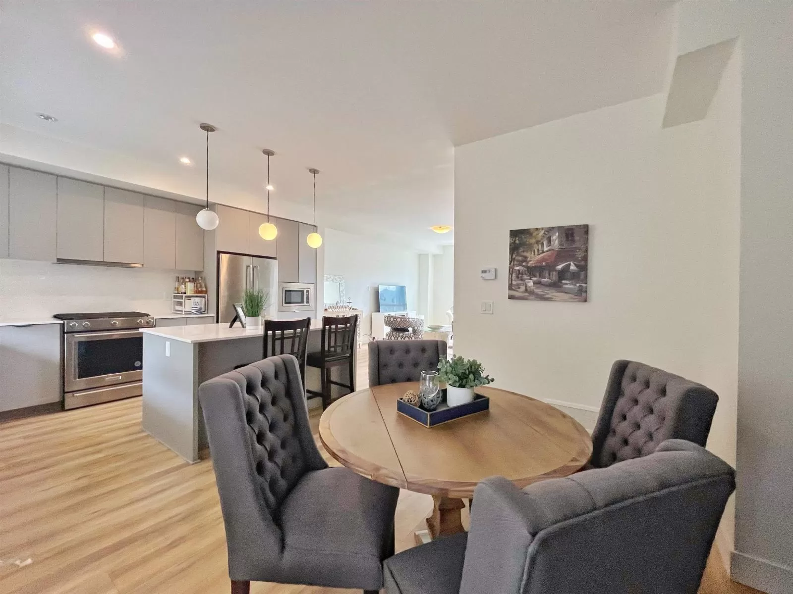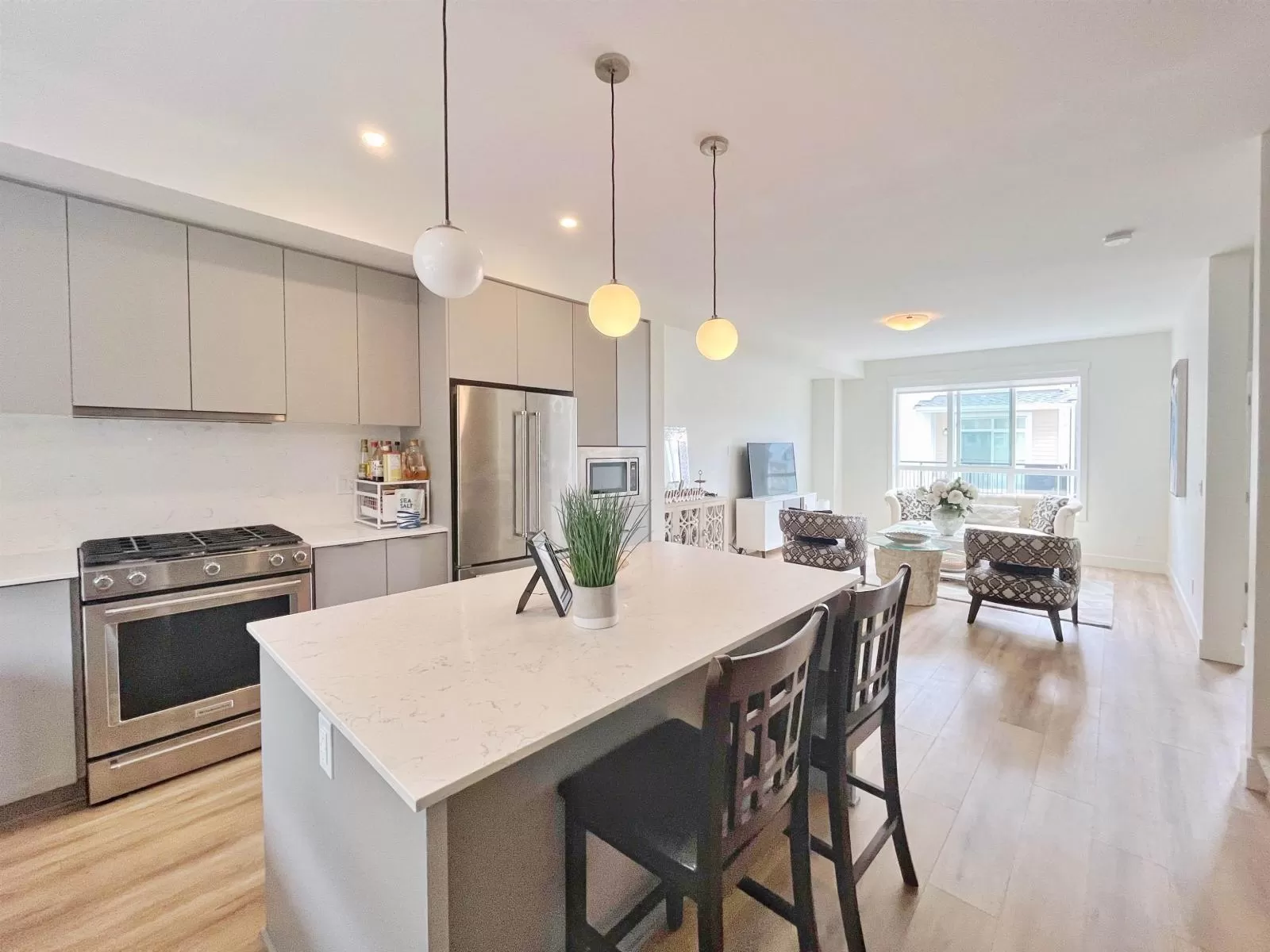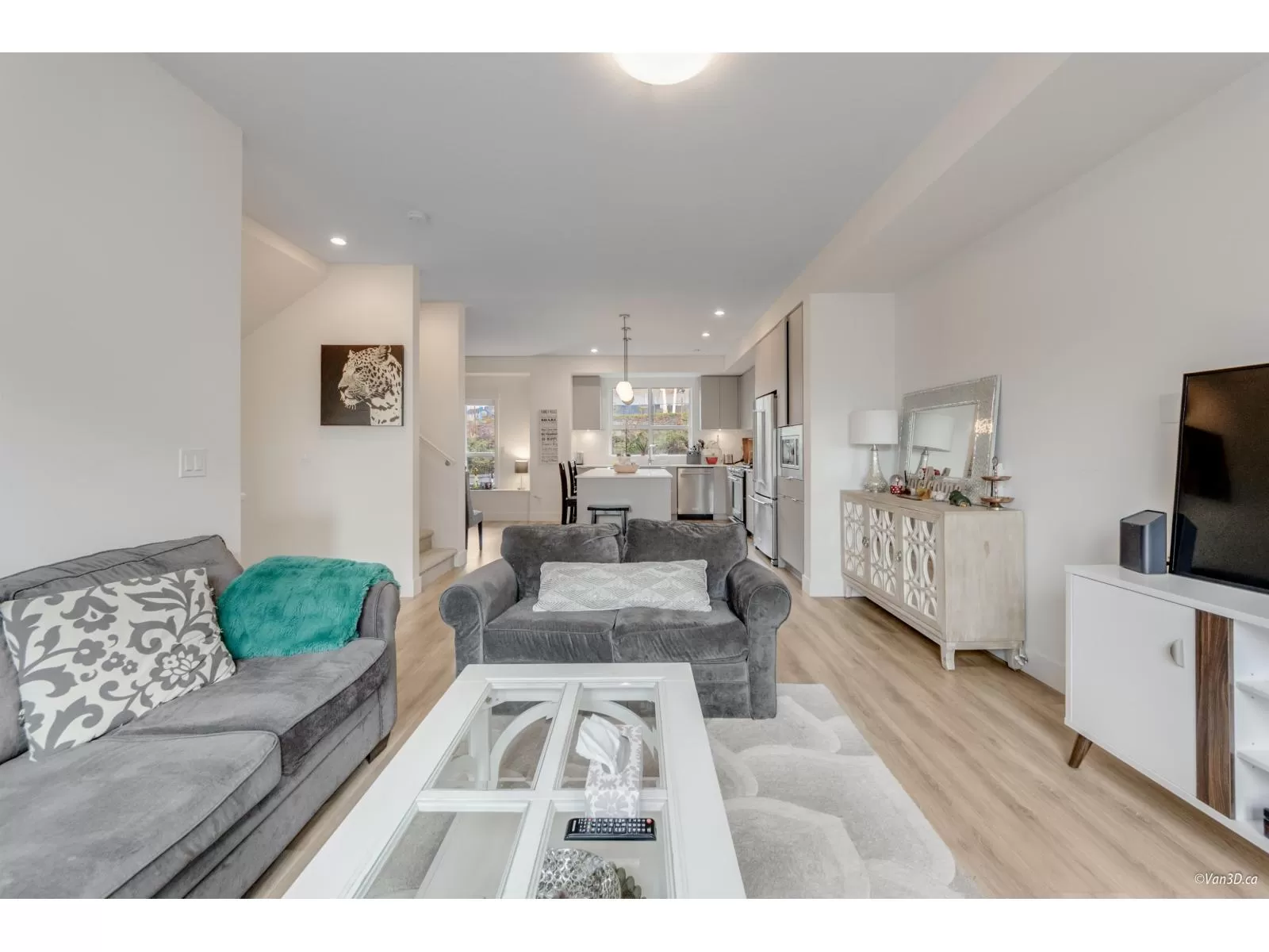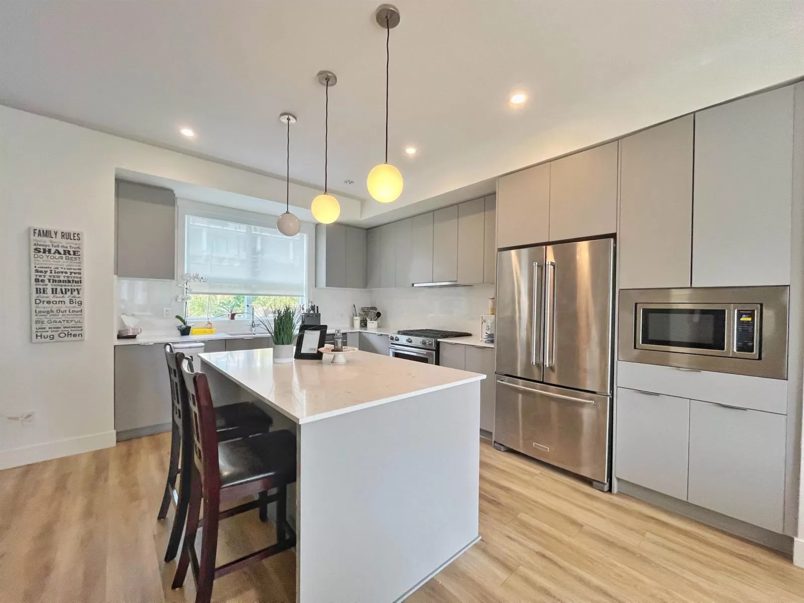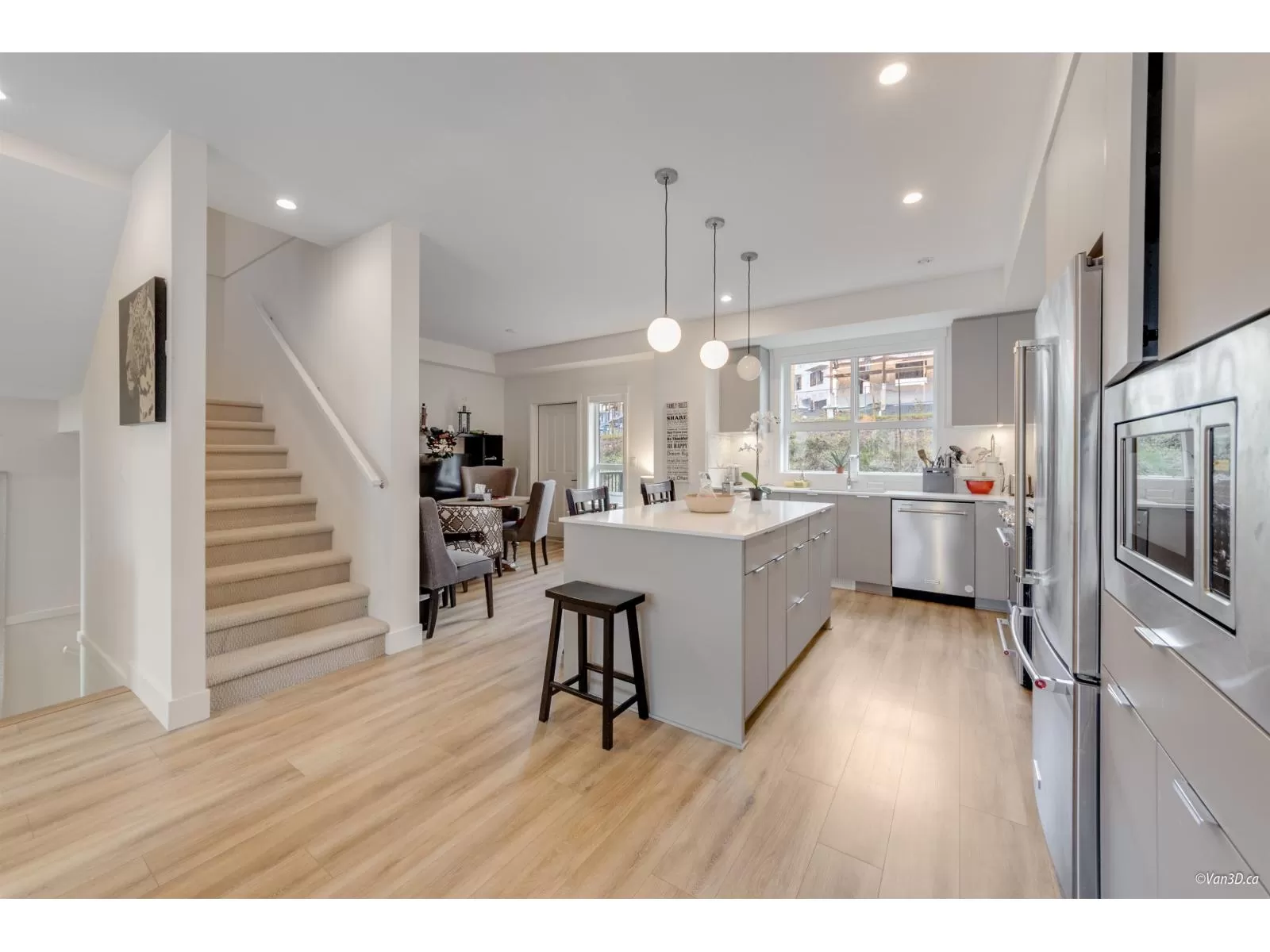 Stylish and functional, this Hungerford Properties townhome offers 4 bedrooms, 4 baths, and West Coast contemporary design in the vibrant South Grandview area. Highlights include a sleek island kitchen, high ceilings, a main-floor powder room, and a bonus lower-level bedroom with a full bath, perfect for guests or a home office. The spacious master suite features a walk-in closet and private ensuite with double sinks. Additional perks include a double garage with epoxy flooring, forced-air heating, central air, and an expansive rooftop deck for sunset views. (id:27476)