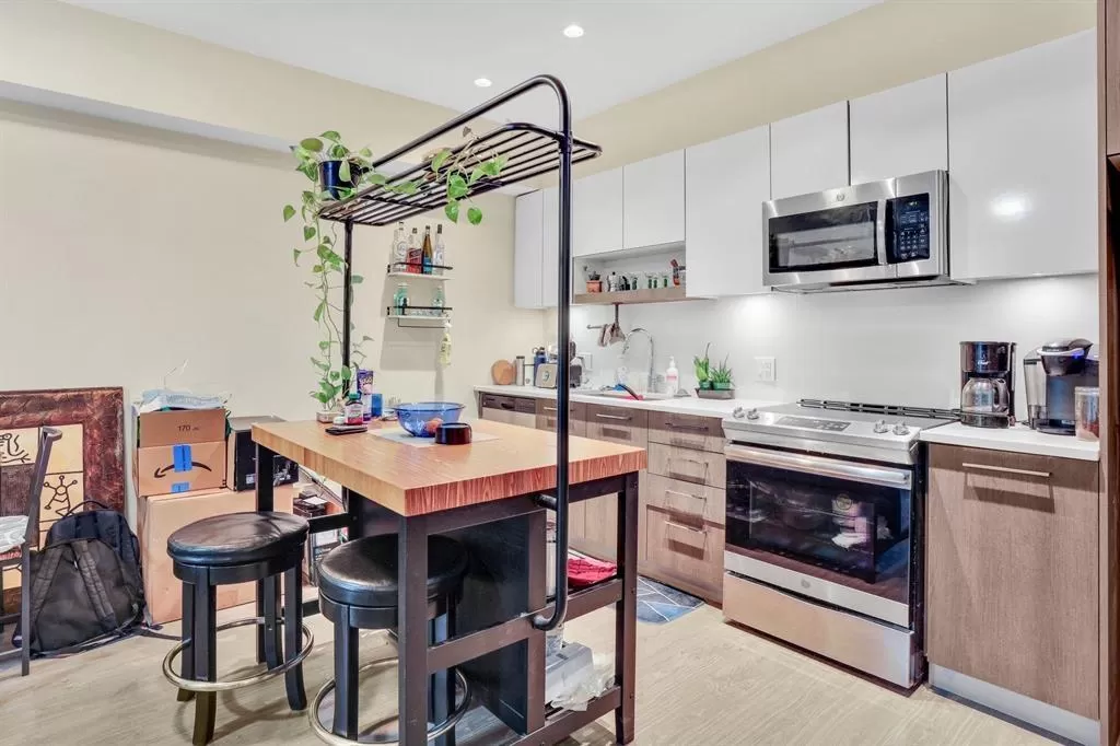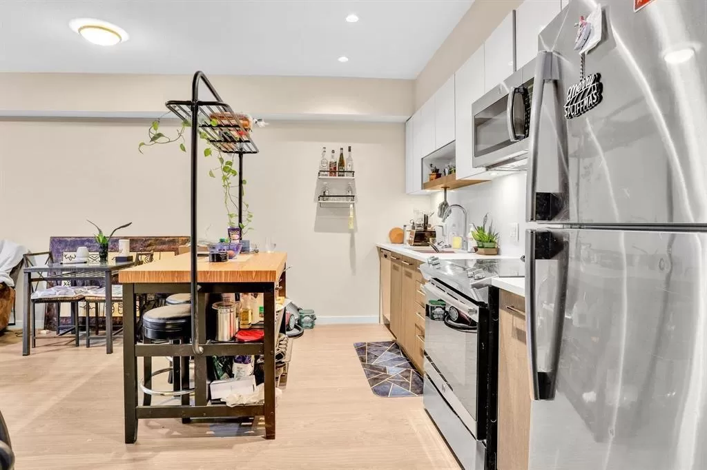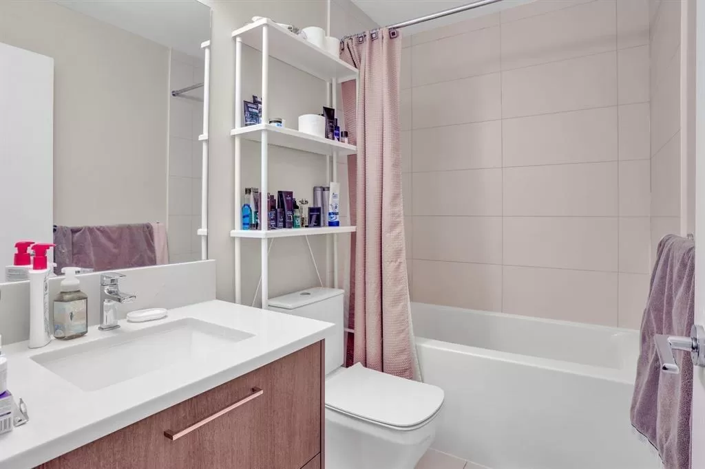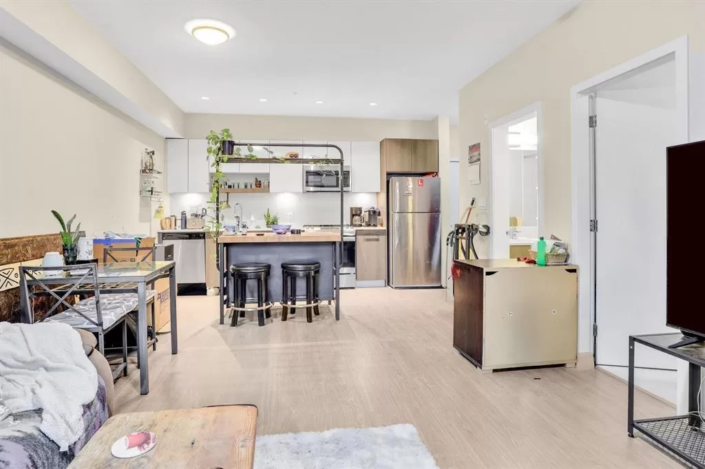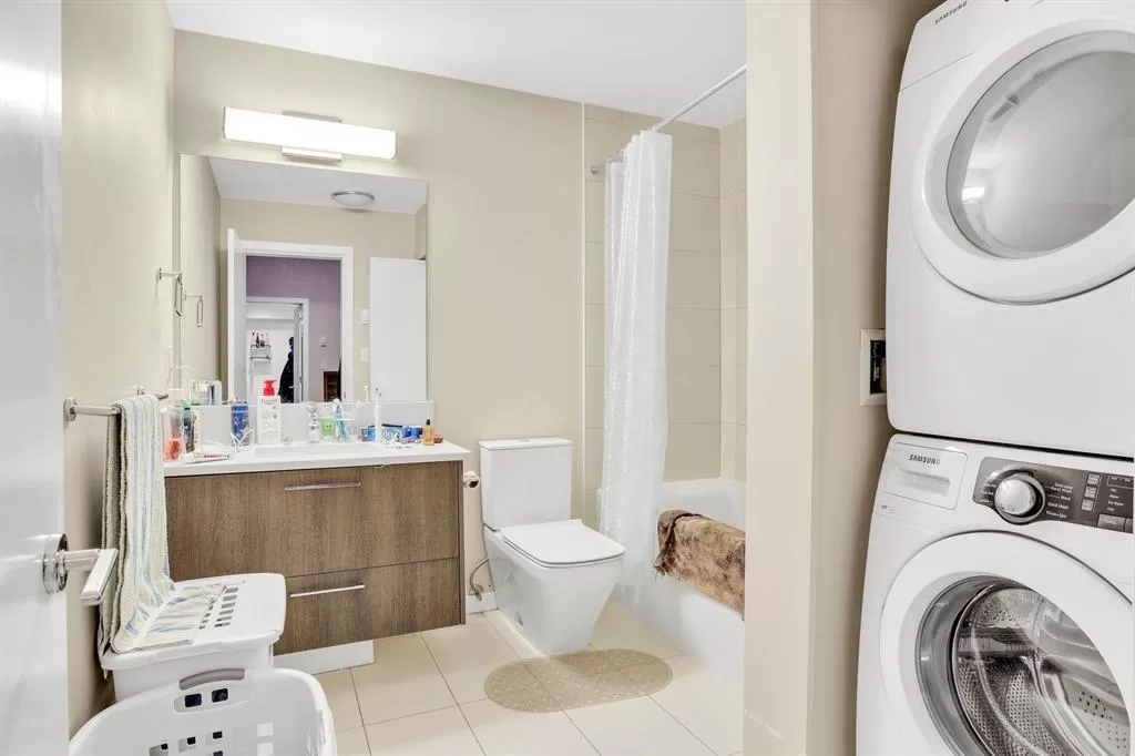 This is an excellent opportunity for investors or first-time buyers looking to enter the real estate market. This immaculate 2-bedroom, 2-bathroom unit is located on the second floor and features modern laminate flooring and 9-foot ceilings throughout. The oversized windows flood the space with natural light, enhancing the open feel. The kitchen boasts stylish quartz countertops and stainless steel appliances, while the unit also includes a full-sized washer/dryer for added convenience. Enjoy a spacious patio facing west, perfect for catching plenty of sunlight. The complex offers top-notch amenities, including an exercise facility and a rooftop deck with barbecue outlets, sitting areas, a gas fire table, and stunning city views. The property is ideally situated just a short walk from Gate (id:27476)