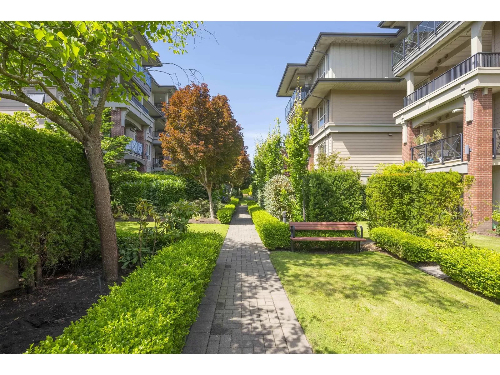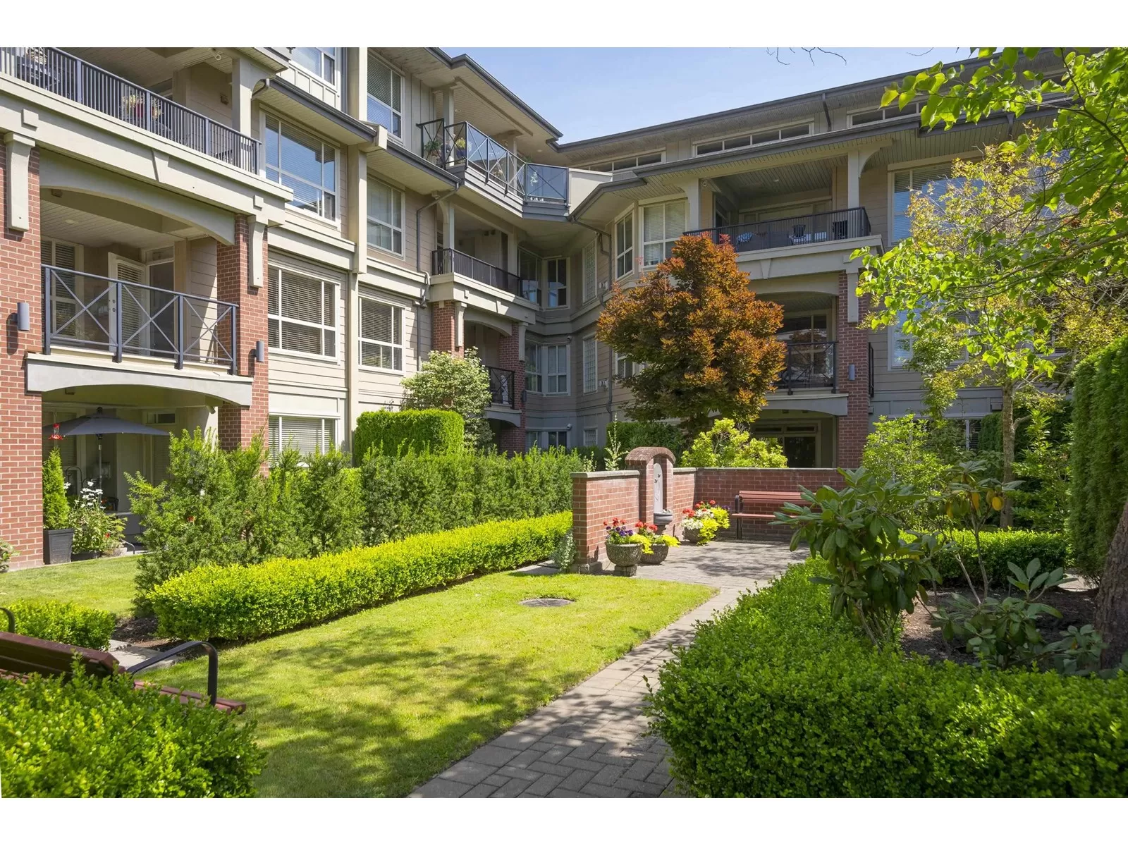 Welcome to The Madison by award-winning Genex-one of South Surrey's most sought-after buildings. This spacious, beautifully maintained 2-bed, 2-bath home features radiant in-floor hot water heating, 9' ceilings, a cozy gas fireplace, and a large covered balcony south-facing into quiet courtyard gardens, perfect for year-round enjoyment. Enjoy a functional open-concept layout with a bright kitchen, new on-demand hot water, freshly painted, and a serene primary suite with tasteful bathroom upgrades, a separate tub and shower. Located in a quiet yet central neighbourhood just steps to Semiahmoo Mall, restaurants, parks, Peace Arch Hospital, and transit. Includes 2 parking stalls, a storage locker, a full gym, a fireside lounge, and ample visitor parking. Move-in ready (id:27476)