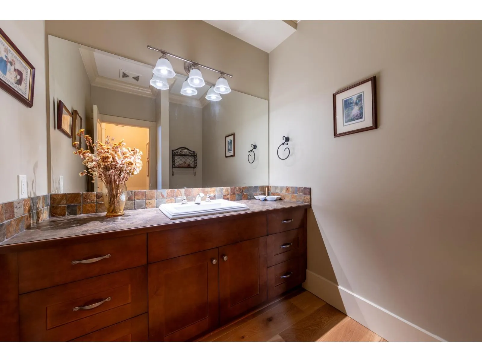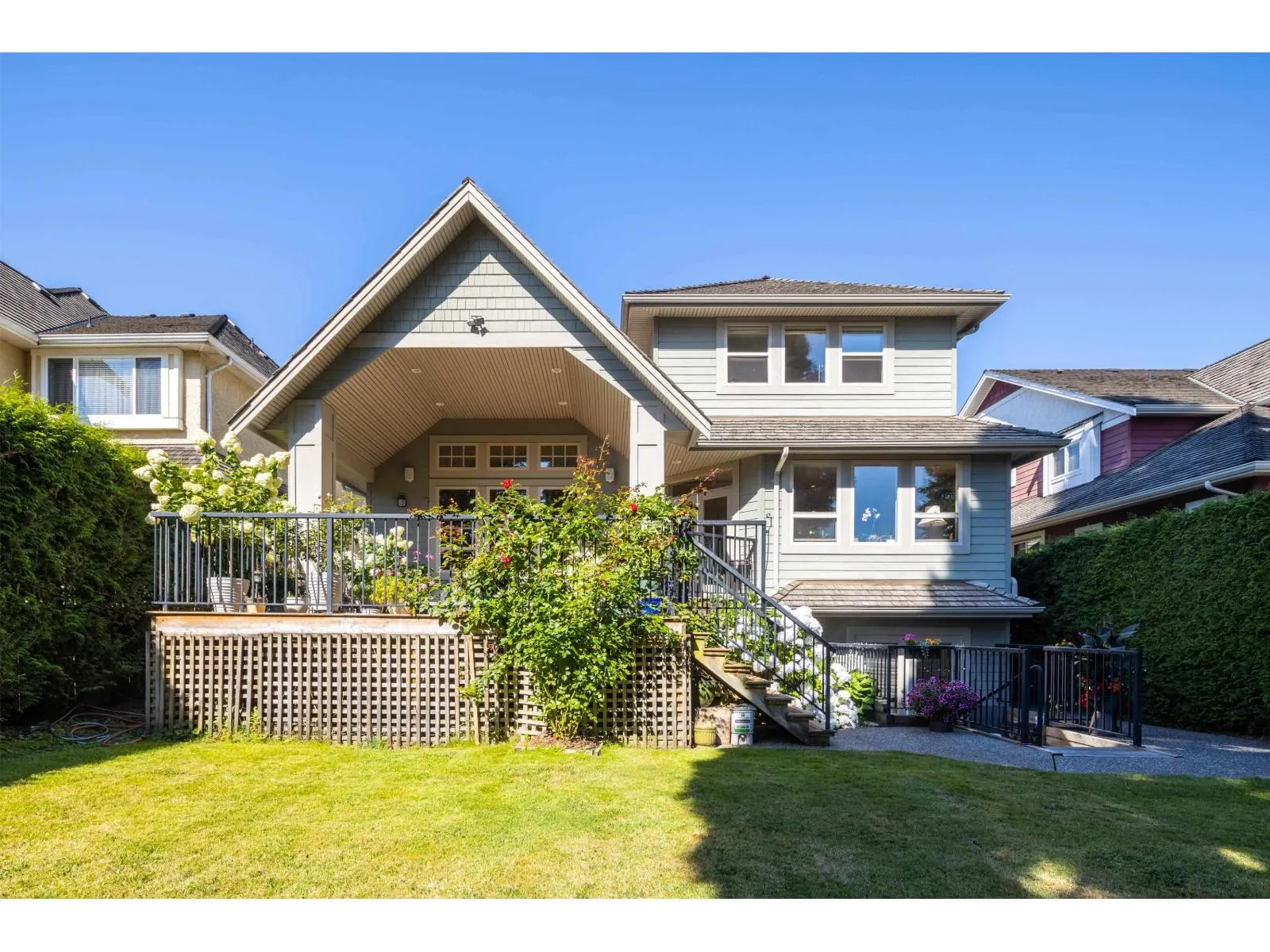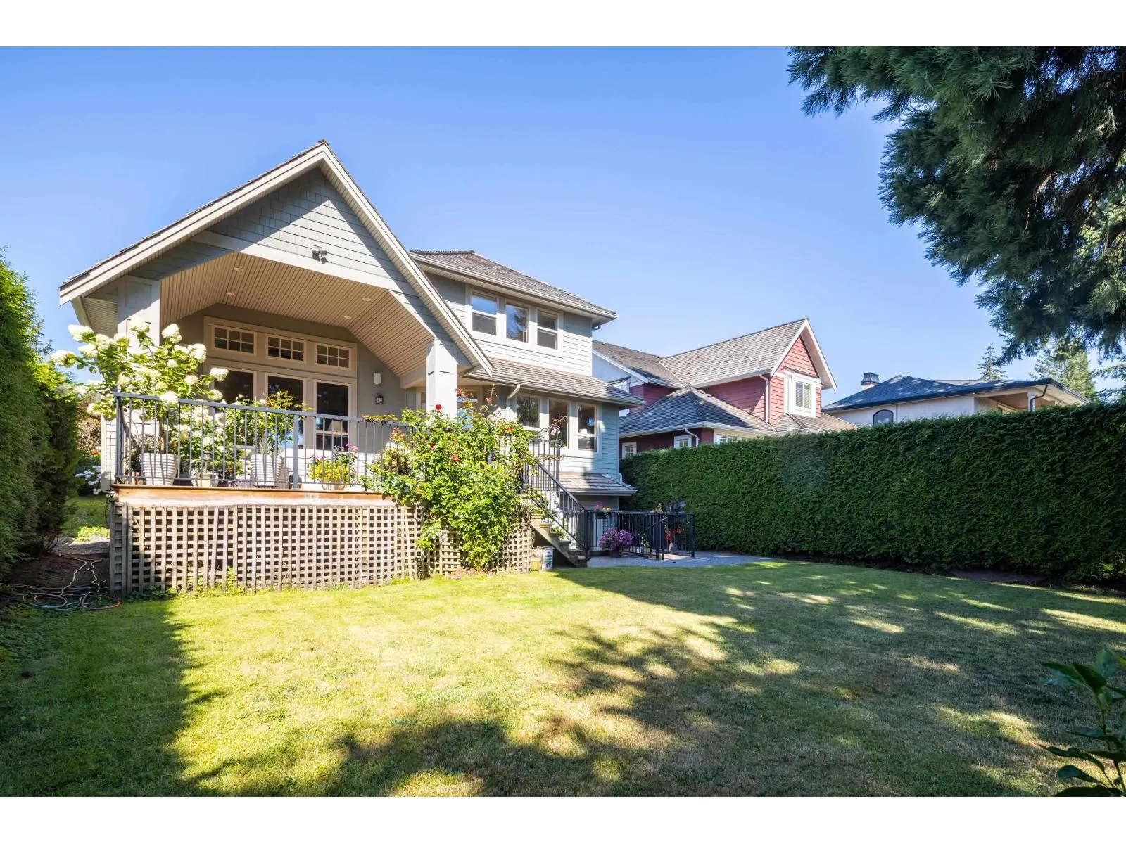 Custom built home offered in a quiet setting between Ironwood & Morgan Creek areas. Solid built a 2 storey home with a partial walkout basement, offers great natural light in the basement area(1 bdrm unauthorized rental suite with separated entry). Main floor is a Great Room plan with high ceilings and open to the kitchen & living areas, hardwood floors, 9' ceilings. Spacious kitchen with large island & counter seating area, granite counters & backsplash, walk-in pantry. Covered rear wood 19'x20' deck area overlooks private east facing back yard & ideal outdoor living area. A very warm comfortable home, ideal for families with lots of space inside & out. Home is in excellent condition, shows very well. Quiet no thru street. (id:27476)