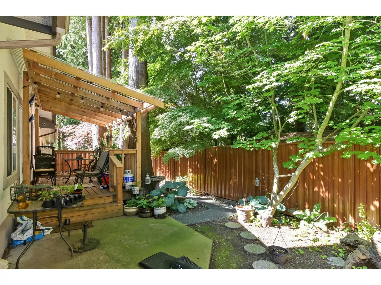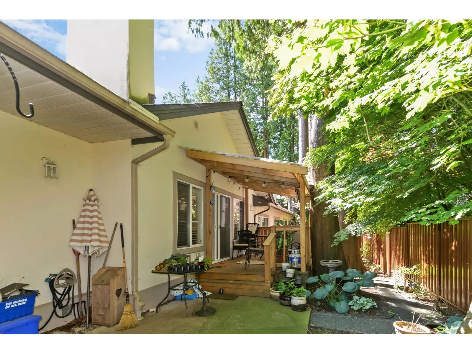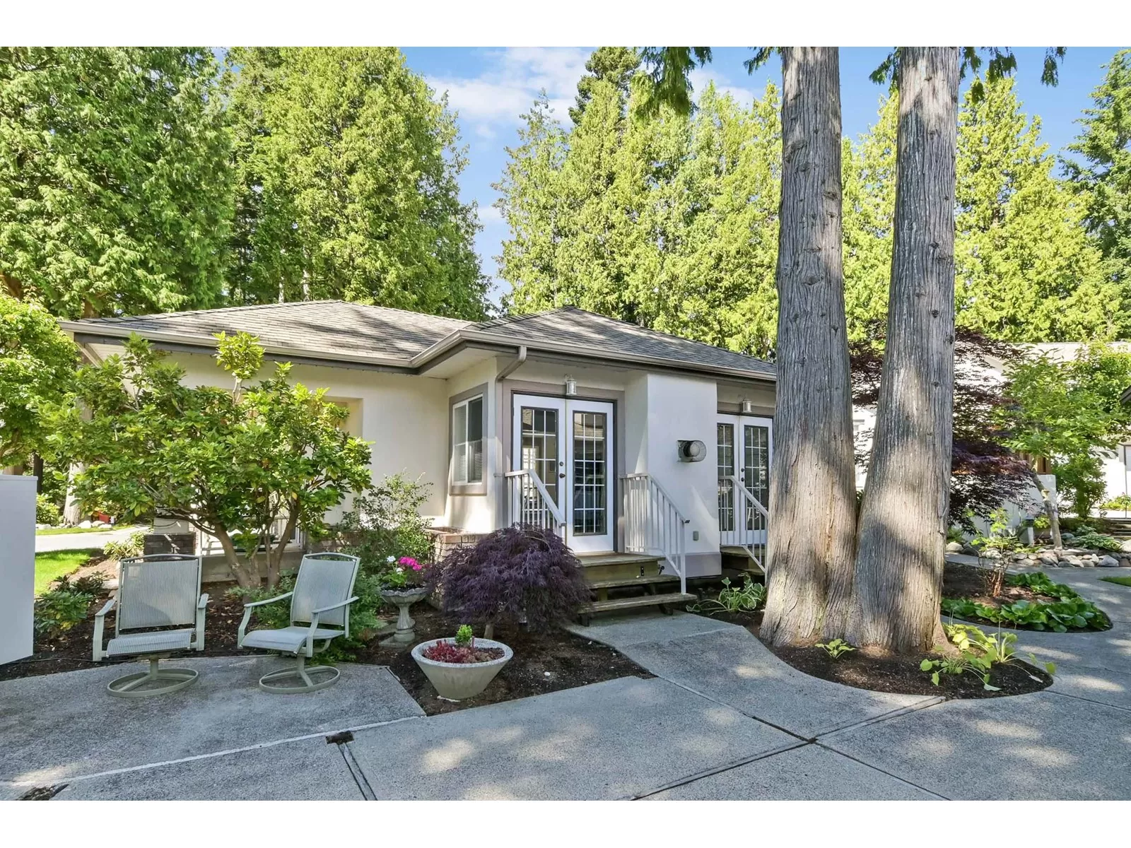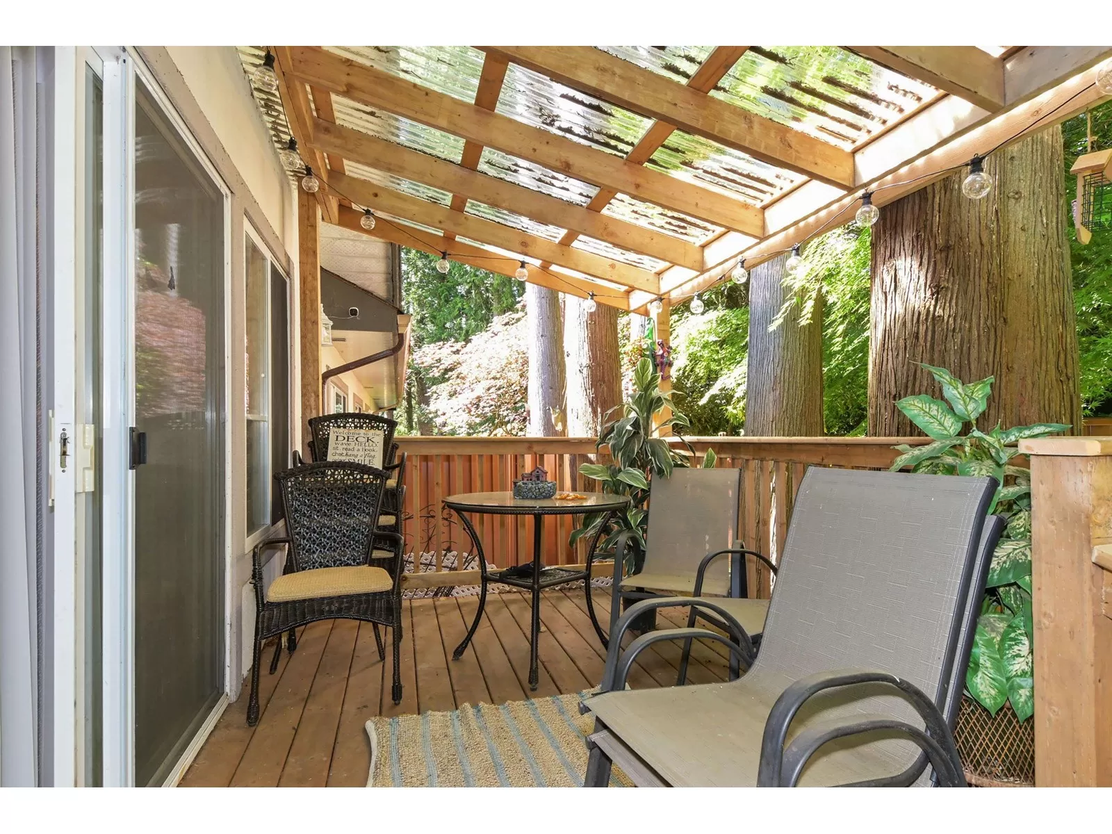 If you're a fan of natural light, but not the heat, this home may just fit that bill. With an east facing vaulted ceiling and loft for morning light, and lovely covered deck to the west you get the best of both. A/C was added for extra comfort, and all appliances have been replaced in the past 5 yrs., incl on demand h/w, and nat gas outlet outside for BBQ ease. Primary on the main, 2 bedrooms up, family room and eating area off the kitchen that offers lots of storage, and the formal living area and dining room feels like a house with the floor to ceiling windows, gas f/p, and a more traditional layout. Double car garage, roof is 14, gutters brand new, fence is aluminum for longevity. Only 16 homes here in this friendly strata. 1 dog or 1 cat allowed, no size or breed restrictions. (id:27476)