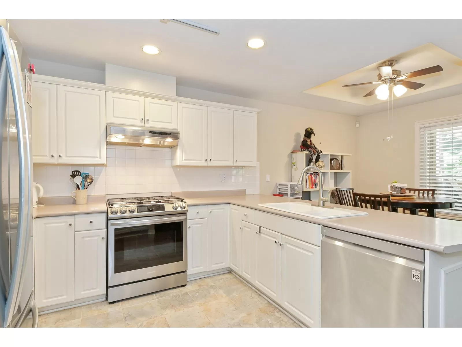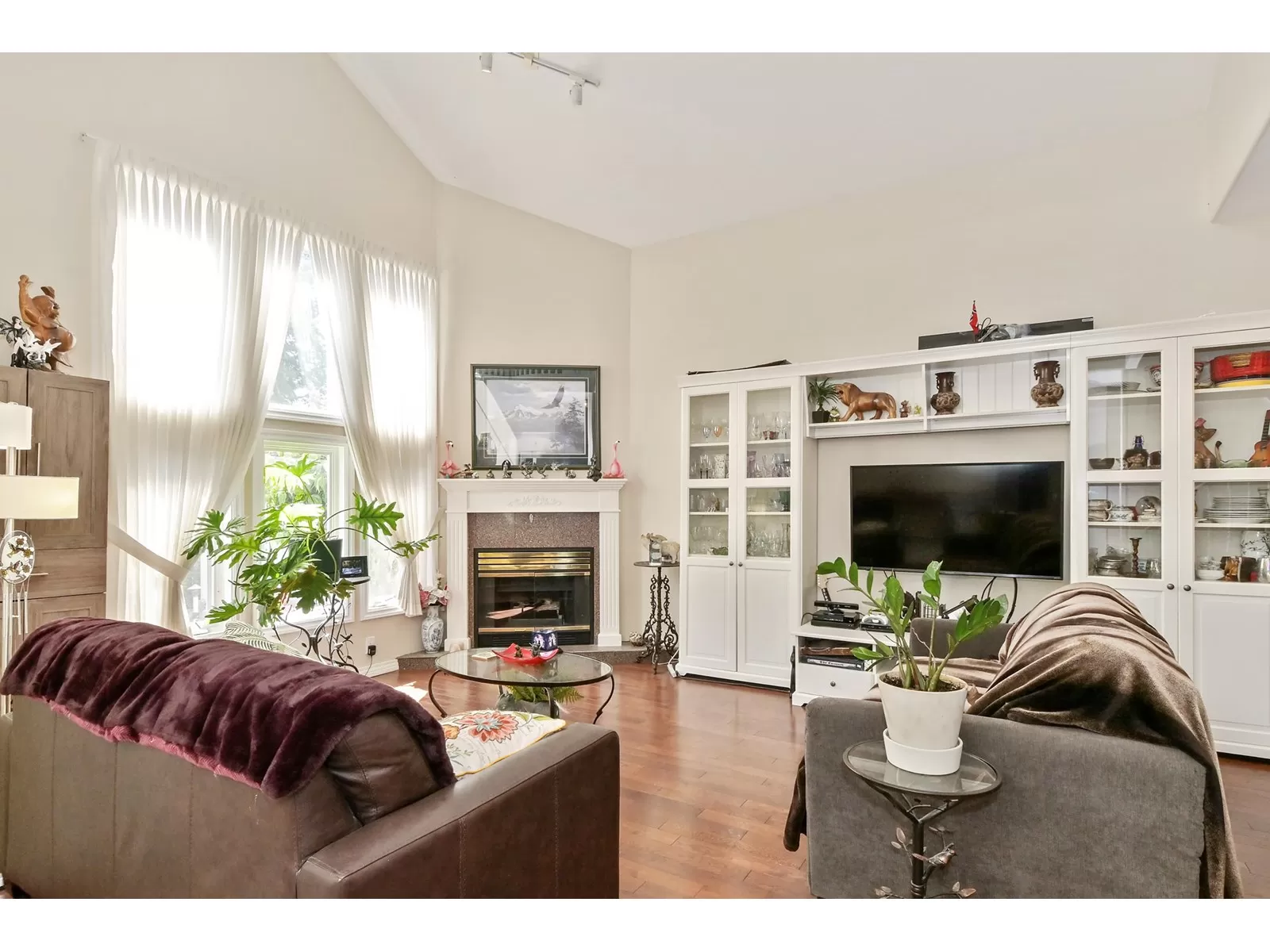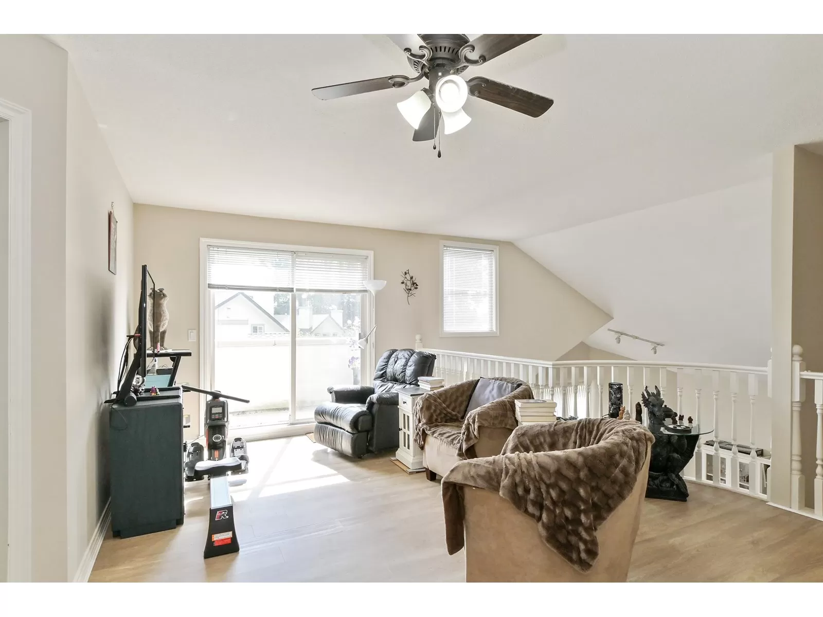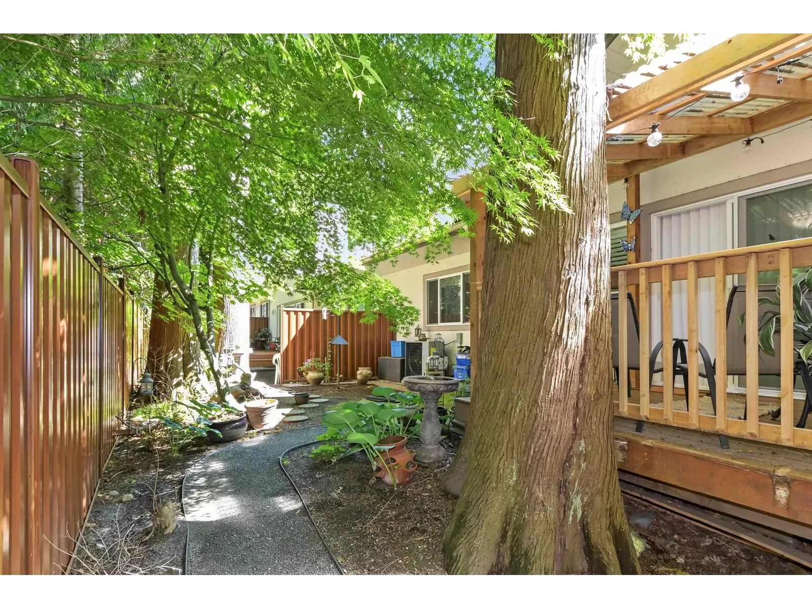 If you're a fan of natural light, but not the heat, this home may just fit that bill. With an east facing vaulted ceiling and loft for morning light, and lovely covered deck to the west you get the best of both. A/C was added for extra comfort, and all appliances have been replaced in the past 5 yrs., incl on demand h/w, and nat gas outlet outside for BBQ ease. Primary on the main, 2 bedrooms up, family room and eating area off the kitchen that offers lots of storage, and the formal living area and dining room feels like a house with the floor to ceiling windows, gas f/p, and a more traditional layout. Double car garage, roof is 14, gutters brand new, fence is aluminum for longevity. Only 16 homes here in this friendly strata. 1 dog or 1 cat allowed, no size or breed restrictions. (id:27476)