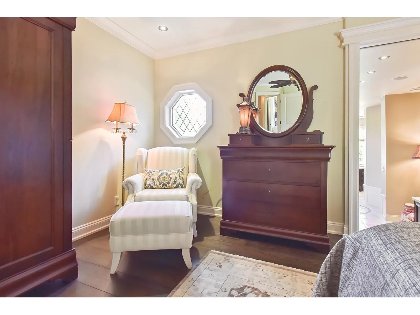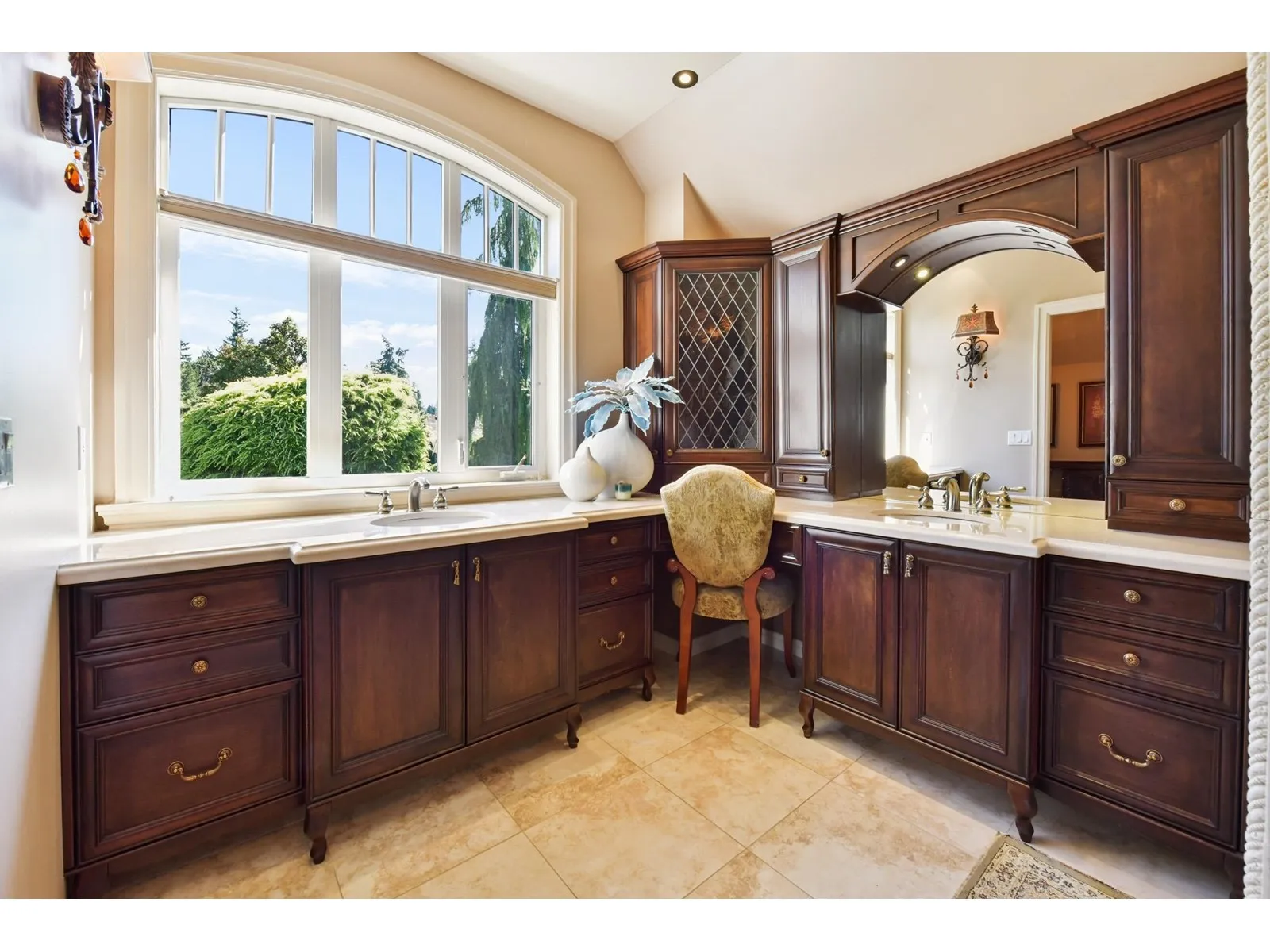 Well-designed luxury house feature timeless beauty, elegant furnishings, intricate mouldings, and luxurious materials.5210 sqft 5 bdrm , 6 bathrm residence , backing onto green space. The large gourmet kitchen opens to the family room and spacious covered patio. The master bedroom, with spa inspired ensuite/steam shower , and large WIC is accompanied by 3 additional bedrooms on the upper floor . Bar lighting design basement has media room, recreation room , GYM room , and a wine cellar you will not believe until you see it. Other features include radiant heat with a/c, Control 4 sound system, Lutron lighting control, travertine and Oak hardwood floors throughout, RV parking with sani dump, and 2nd detached garage with guest bdrm. New boiler , hot water tank, HRV system . Tile roof . (id:27476)