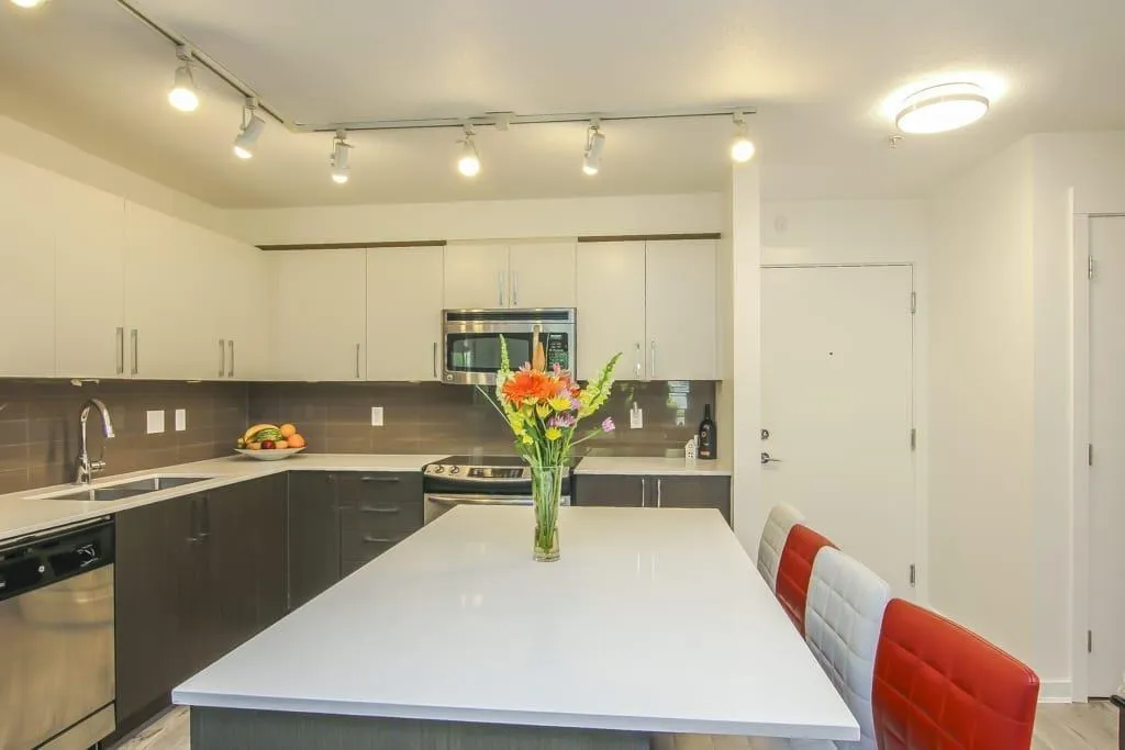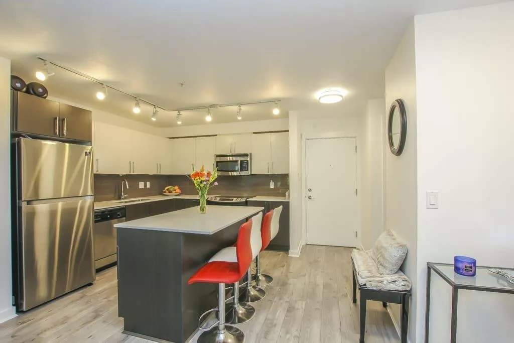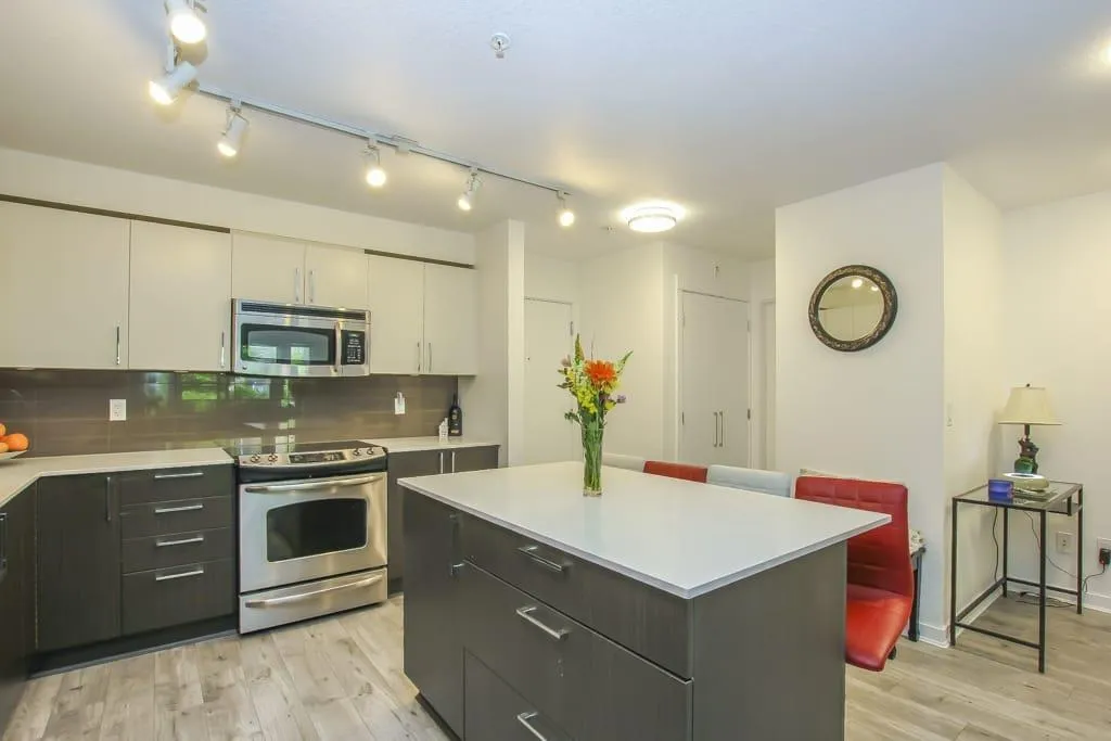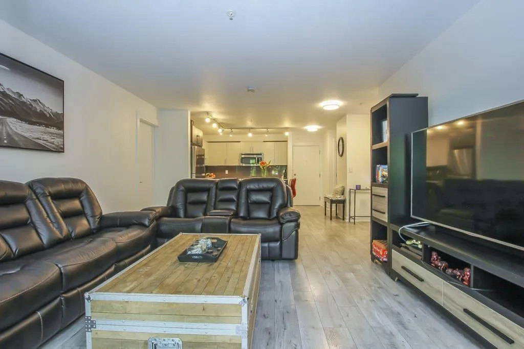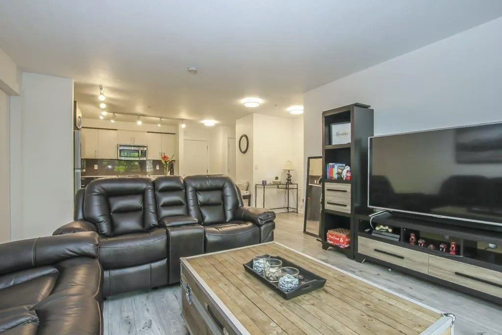 Welcome to Monterosso in the heart of Fleetwood! This bright and well-maintained 2 bed, 2 bath condo offers a smart split-bedroom layout with 945 sq ft of functional space. Features include quartz countertops, stainless steel appliances, tile backsplash, and upgraded laminate flooring throughout most of the hohme. Only one shared wall for added privacy. Enjoy outdoor living on your covered patio, perfect for BBQs. Comes with rare side-by-side double parking. Built to BuiltGreen Standards for energy efficiency. Walking distance to schools, parks, shops, restaurants, and future SkyTrain. A fantastic opportunity in one of Surrey's fastest-growing neighbourhoods! Open House: SUN NOV 23TH, 2-4PM (id:27476)