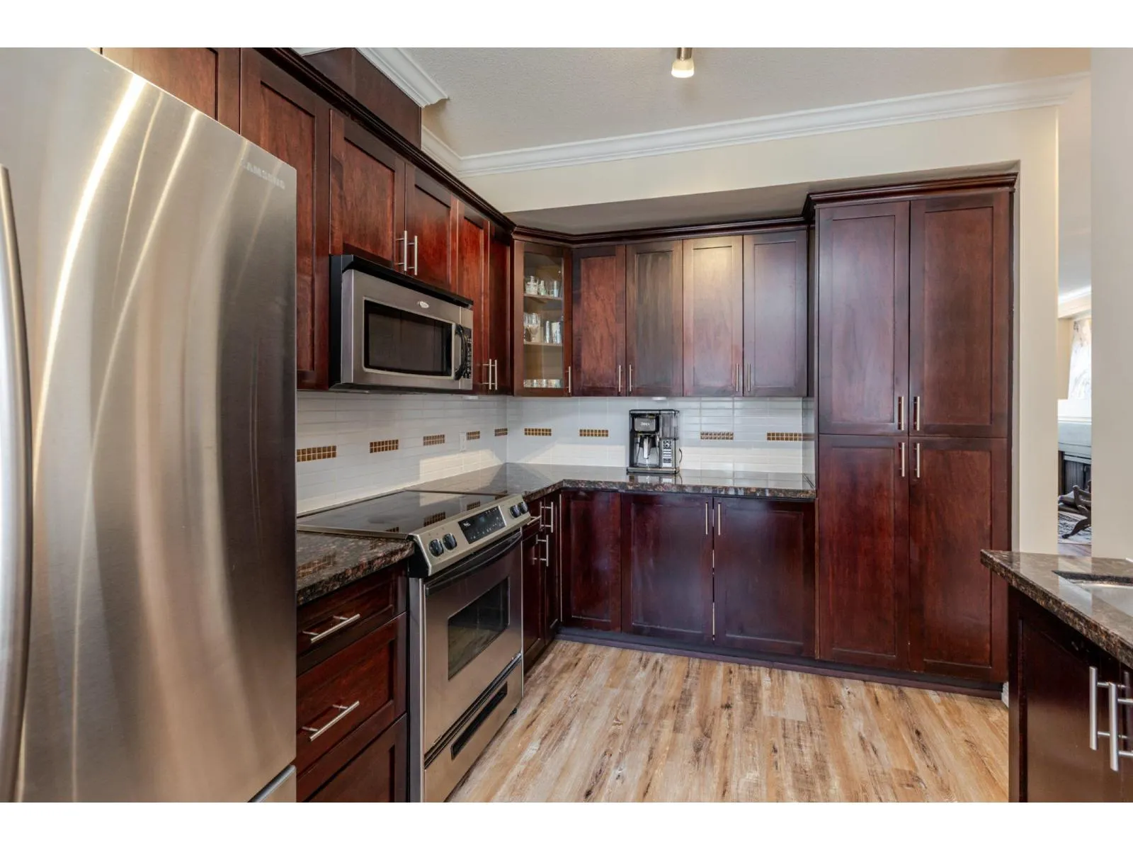 MONTEBELLO - Rare large townhome with double side by side garage & extra parking. Main floor features high ceilings, gourmet kitchen with granite countertops, stainless steel appliances. Main floor has a living room, dining area, family room, eating area, generous deck off kitchen for entertaining. Upper floor includes 3 good sized bedrooms, master with walk-in-closet & ensuite with double sinks. Downstairs, there is a large open area, perfect for a media or a recroom. Mirrors are mounted on one wall making it ideal for a gym or studio. There have been several upgrades including paint & flooring. Large double garage with parking behind & you have street parking right in front of your entrance. Home, garage, porch and deck gives you 2,672 square feet of private space. (id:27476)