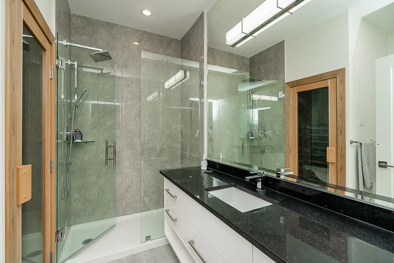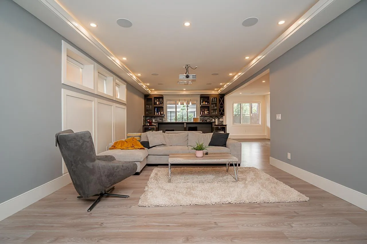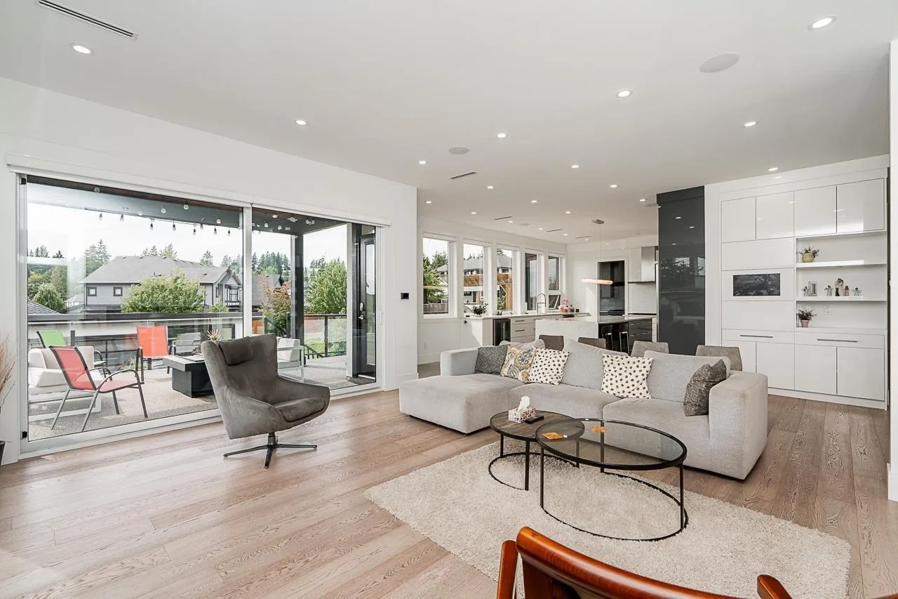 Custom executive BASEMENT home with beautiful ocean views and lots of natural light. This house is made for entertaining and features include huge spice kitchen, high end Jenn Air appliances, Expresso Bar, Wine Fridge, 2-way gas fireplace, dining room with a custom glass wall wine rack that is spectacular. Main floor also features a large office and a bedroom and ensuite with a private deck and entry for backyard. Outdoor there is a covered deck, fire table, impressive bbq area, huge grass yard, fully landscaped, a gazebo for outdoor entertaining, 3-car detached garage plus storage, sauna, steam shower, soaker tub, sprinklers, security cameras, remote blinds, Control 4 Automation, A/C, private upstairs deck from master, ELEVATOR, and a theatre with projector and surround sound all set up. (id:27476)