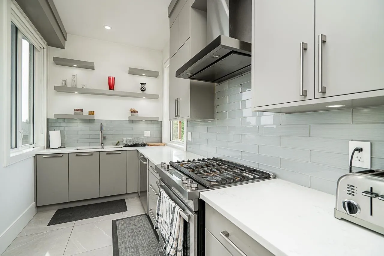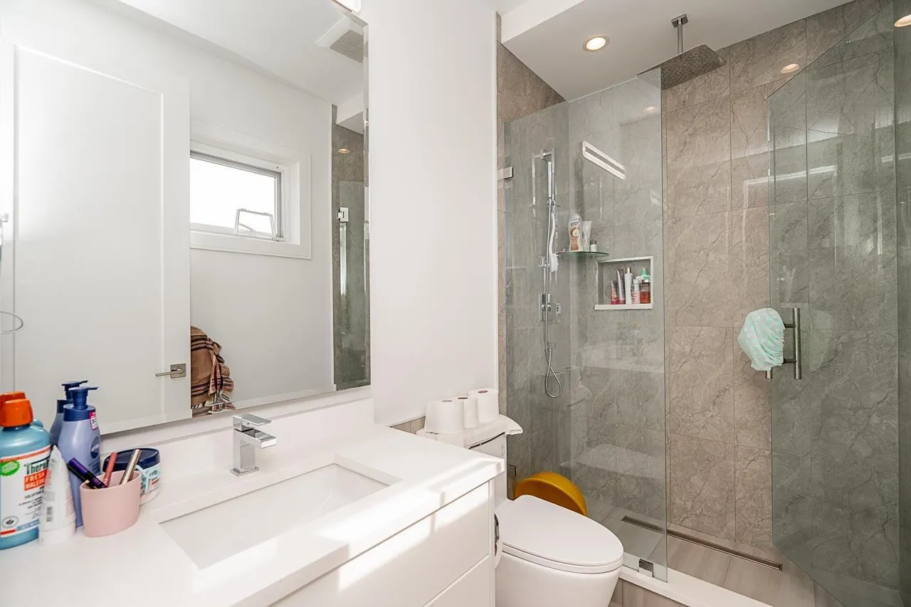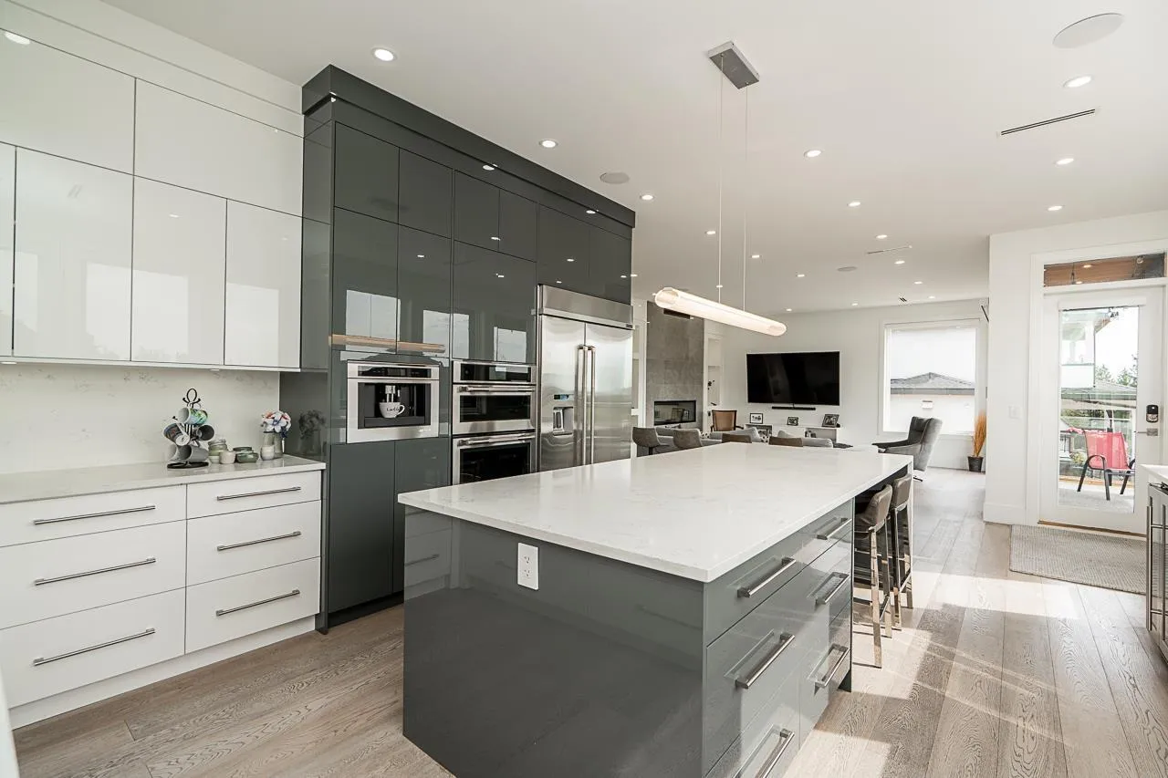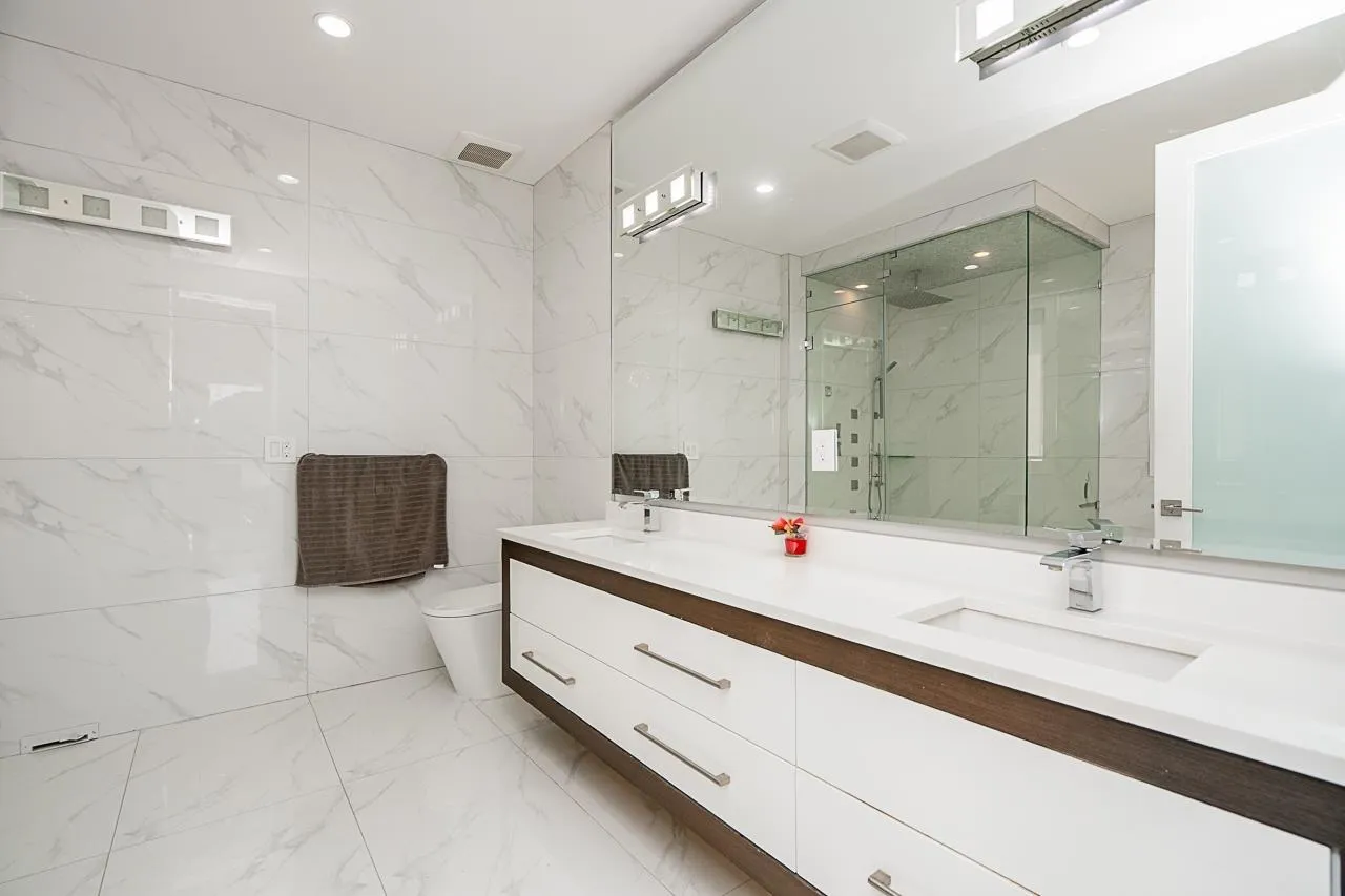 Custom executive BASEMENT home with beautiful ocean views and lots of natural light. This house is made for entertaining and features include huge spice kitchen, high end Jenn Air appliances, Expresso Bar, Wine Fridge, 2-way gas fireplace, dining room with a custom glass wall wine rack that is spectacular. Main floor also features a large office and a bedroom and ensuite with a private deck and entry for backyard. Outdoor there is a covered deck, fire table, impressive bbq area, huge grass yard, fully landscaped, a gazebo for outdoor entertaining, 3-car detached garage plus storage, sauna, steam shower, soaker tub, sprinklers, security cameras, remote blinds, Control 4 Automation, A/C, private upstairs deck from master, ELEVATOR, and a theatre with projector and surround sound all set up. (id:27476)