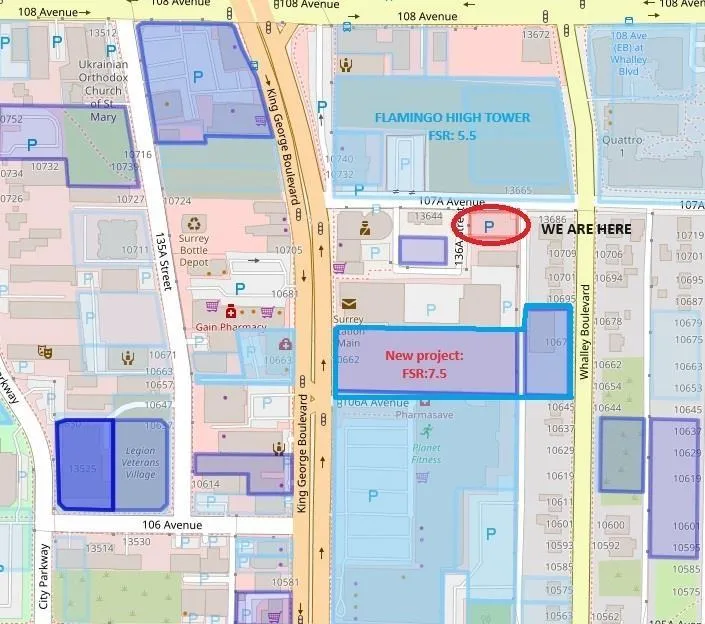 In the CORE of Surrey City Centre, excellent investment opportunity for investors and developers. Investment property for future development right on King George Blvd & 107th Avenue. Three blocks from the Surrey Centre Skytrain Station, Central City Mall, SFU, UBC, Kwantlen, Douglas & VCC College. Many high rise projects with high FSR around there. Lot size 7980 sq.ft (120ft frontage x 66.5 ft depth). Currently C-8 zoning, with potential to assemble with neighbour lots. Don't miss our on this golden opportunity to own/develop in Surrey Centre. (id:27476)