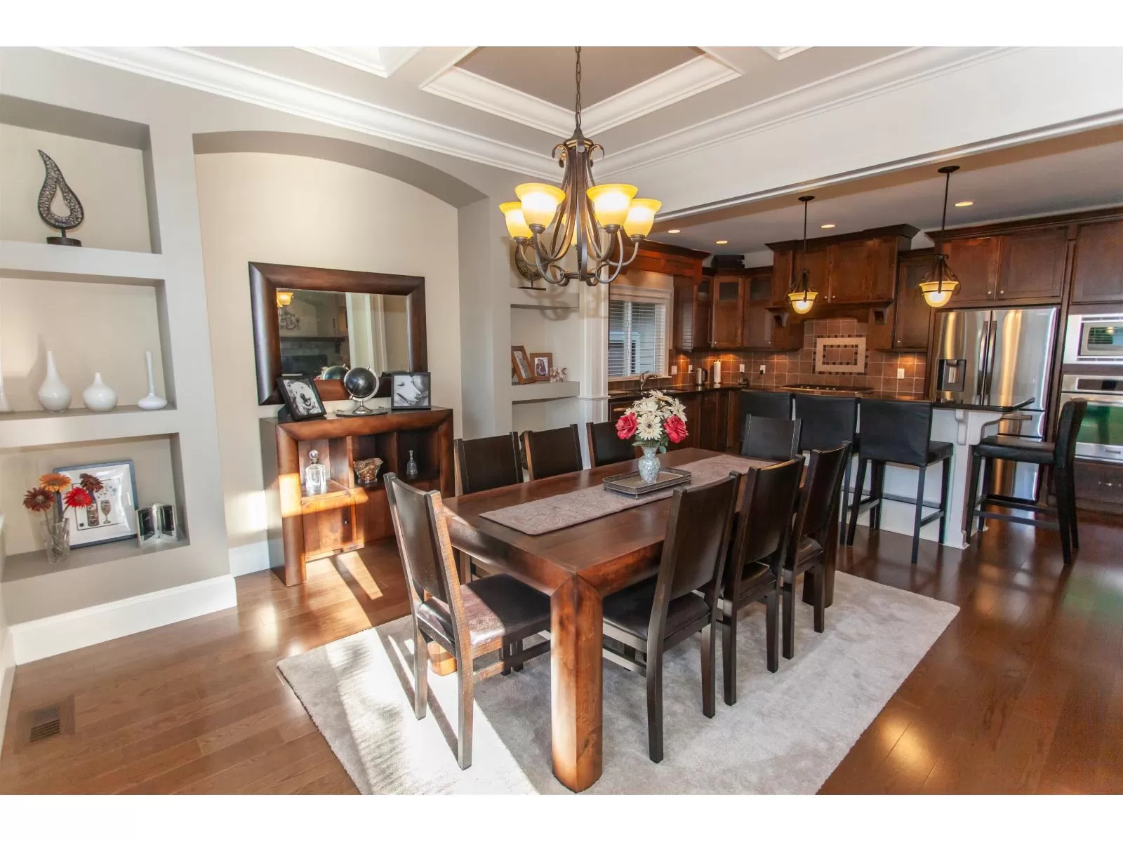 MORGAN HEIGHTS: Stunning 6br + den Family Home by BENCHMARK! Proudly owned by the original owner, this beautifully maintained residence is move-in ready. Designed for both comfort and style, the open-concept great room boasts 10ft ceilings, elegant crown molding, coffered ceilings, and rich brick accents. The gourmet kitchen is a chef's delight, featuring granite countertops, premium stainless steel appliances, and ample workspace. The basement offers a media & games room, creating the ultimate recreation retreat. With 2 additional BR & separate entrance, the lower level provides suite potential or a welcoming space for guests. Efficient heating and cooling are ensured with built-in heat pump, complementing the gas furnace for year-round comfort. Book your private showing now! (id:27476)