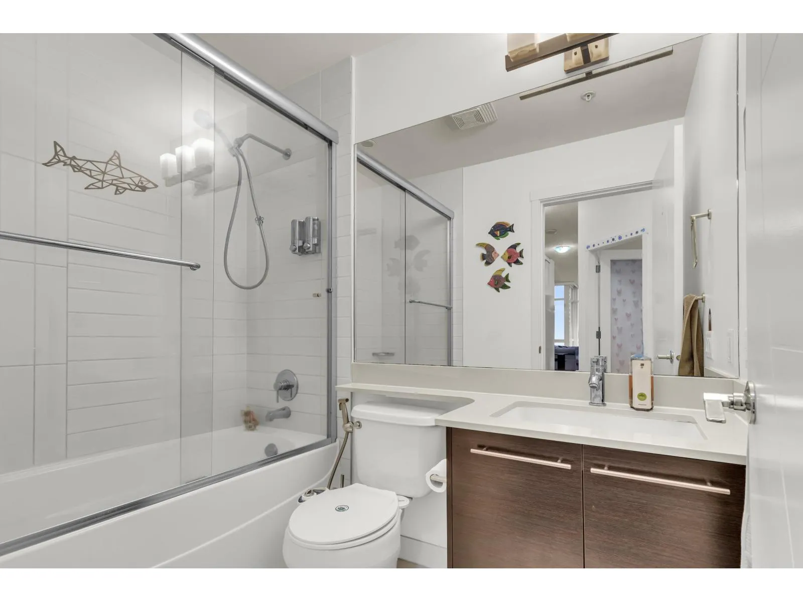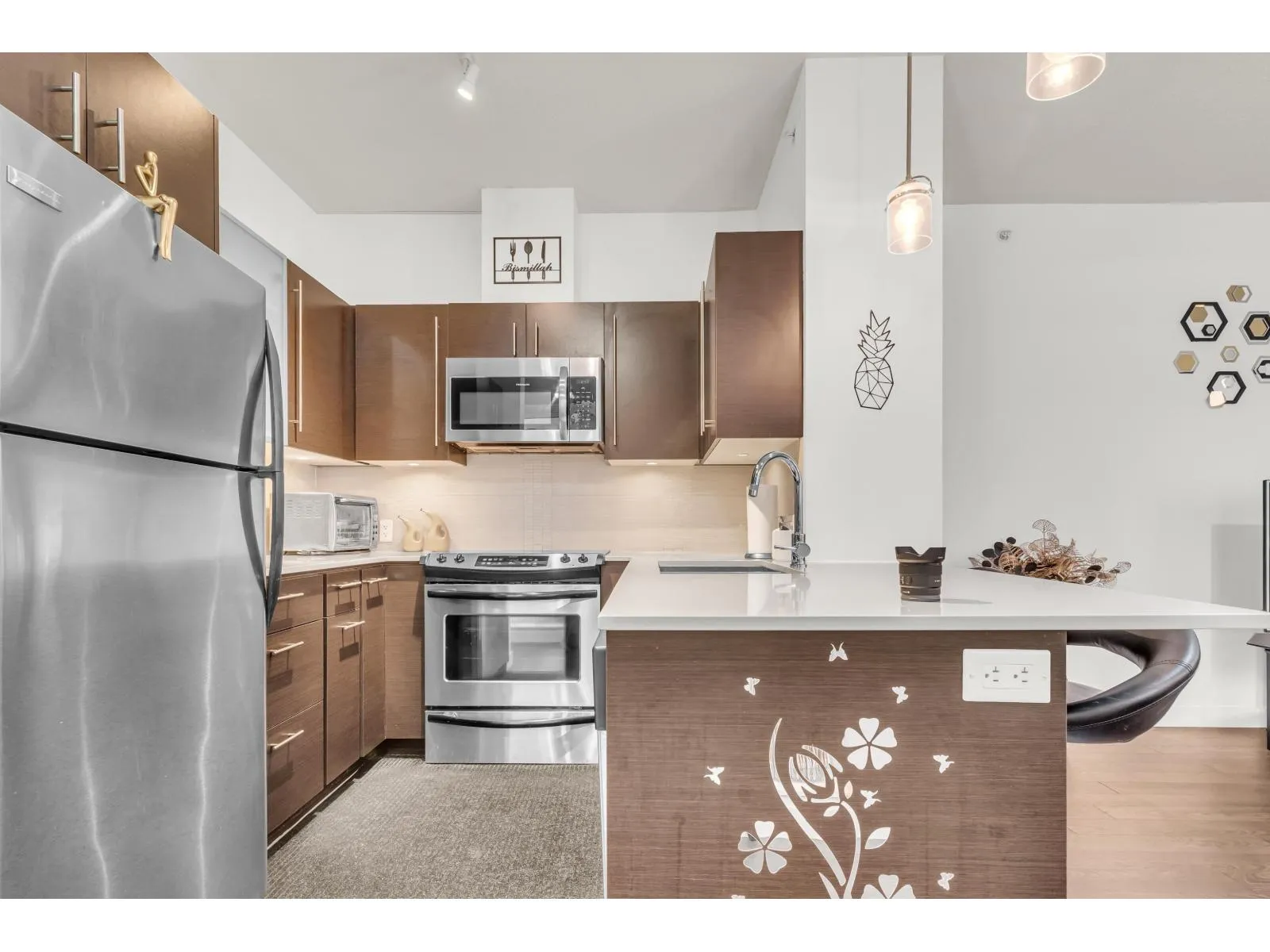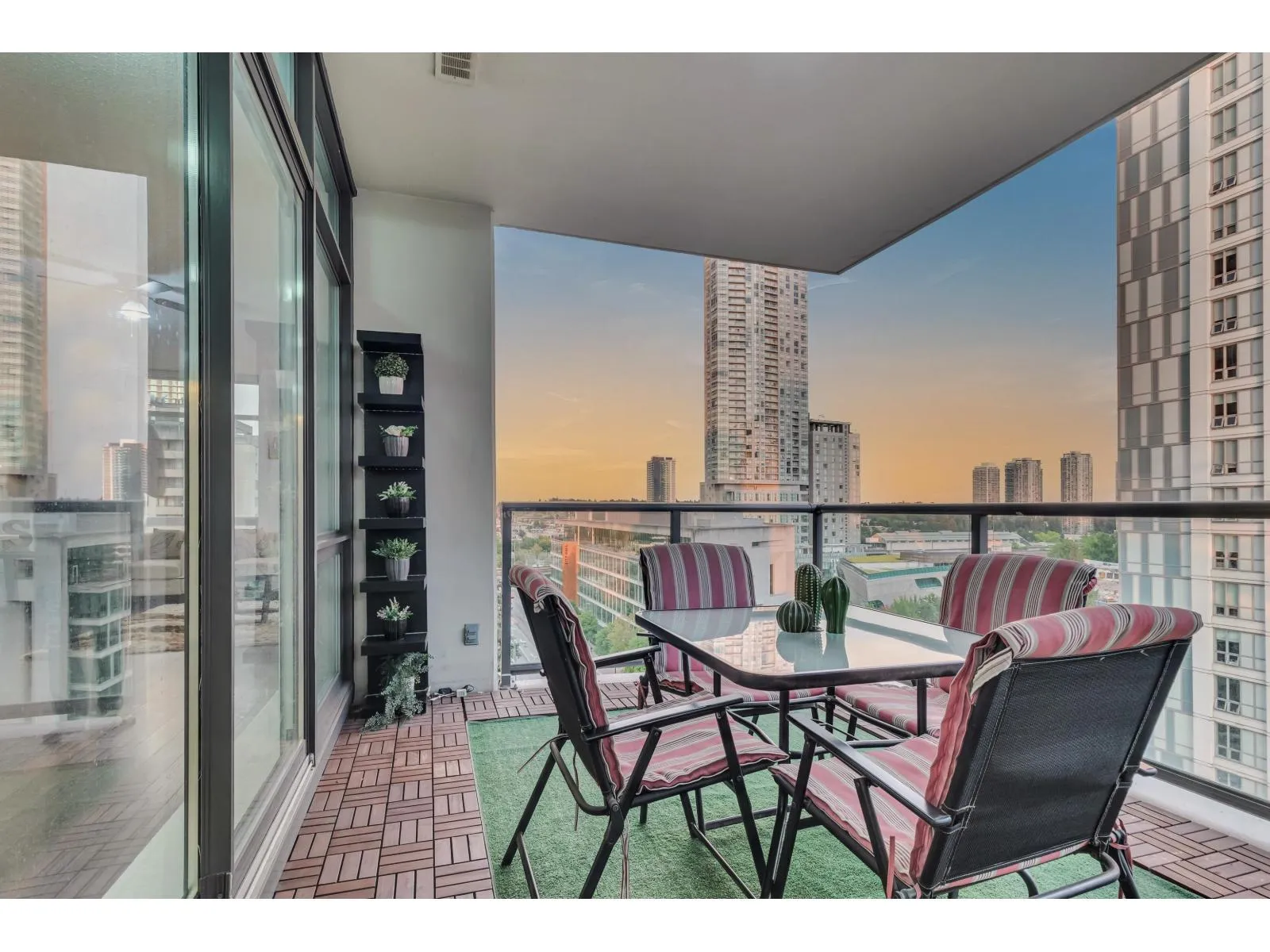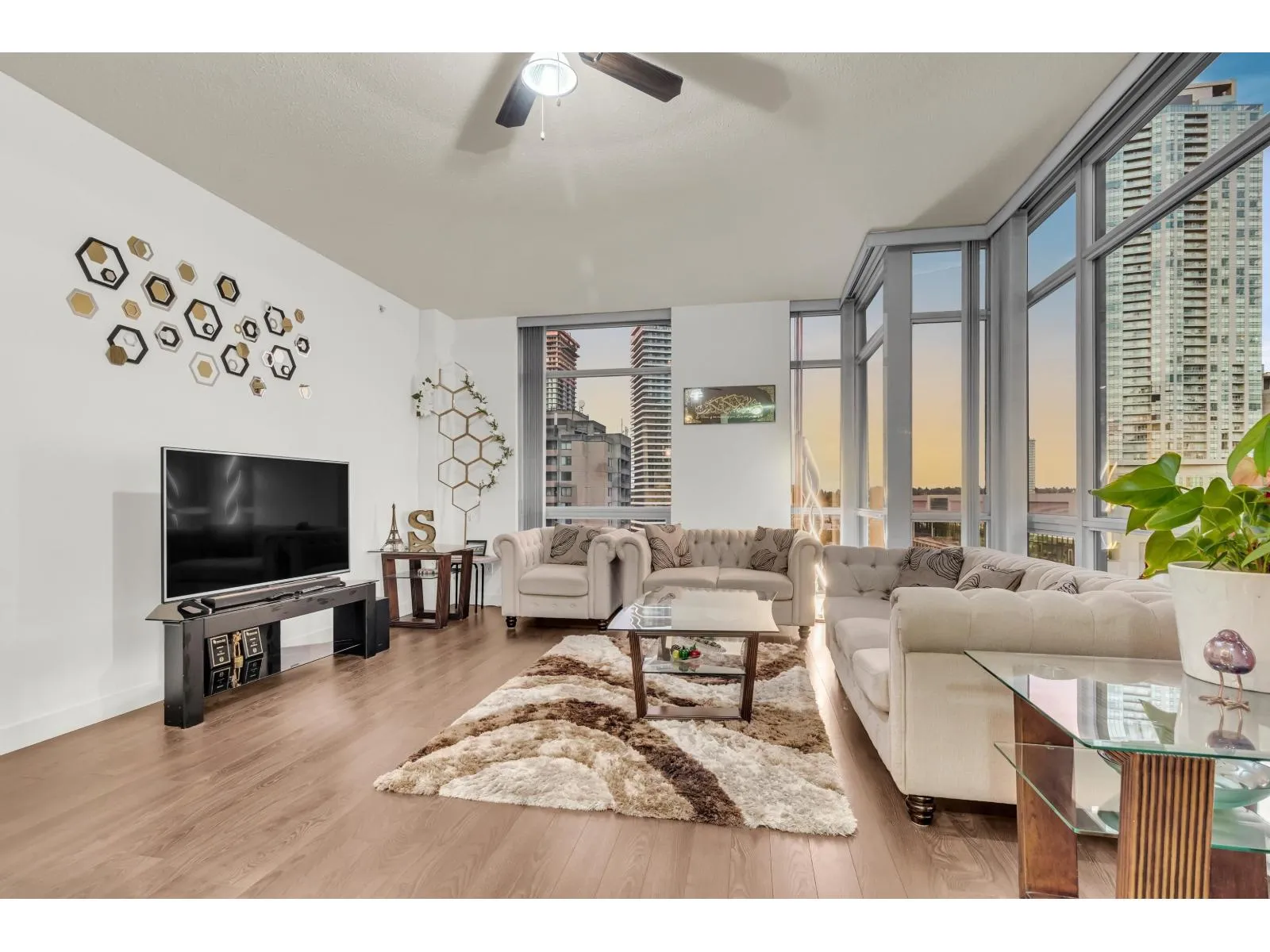 Modern urban living in the heart of Surrey Central! This bright and spacious 1 Bedroom plus DEN Corner Unit Condo is perched on the 10th floor of a solid concrete High-Rise, offering stunning Mountain, City and South Facing views through Floor to ceiling windows. Enjoy an open-concept living area flooded with natural light, steps from SkyTrain, Library, Civic Plaza, Shopping, Dining, SFU and KPU Campus. The functional layout includes a versatile den perfect for a home office. This Condo includes one secure undergound parking and one storage locker. An ideal opportunity for first-time buyers or investors seeking unbeatable convenience and lifestyle. (id:27476)