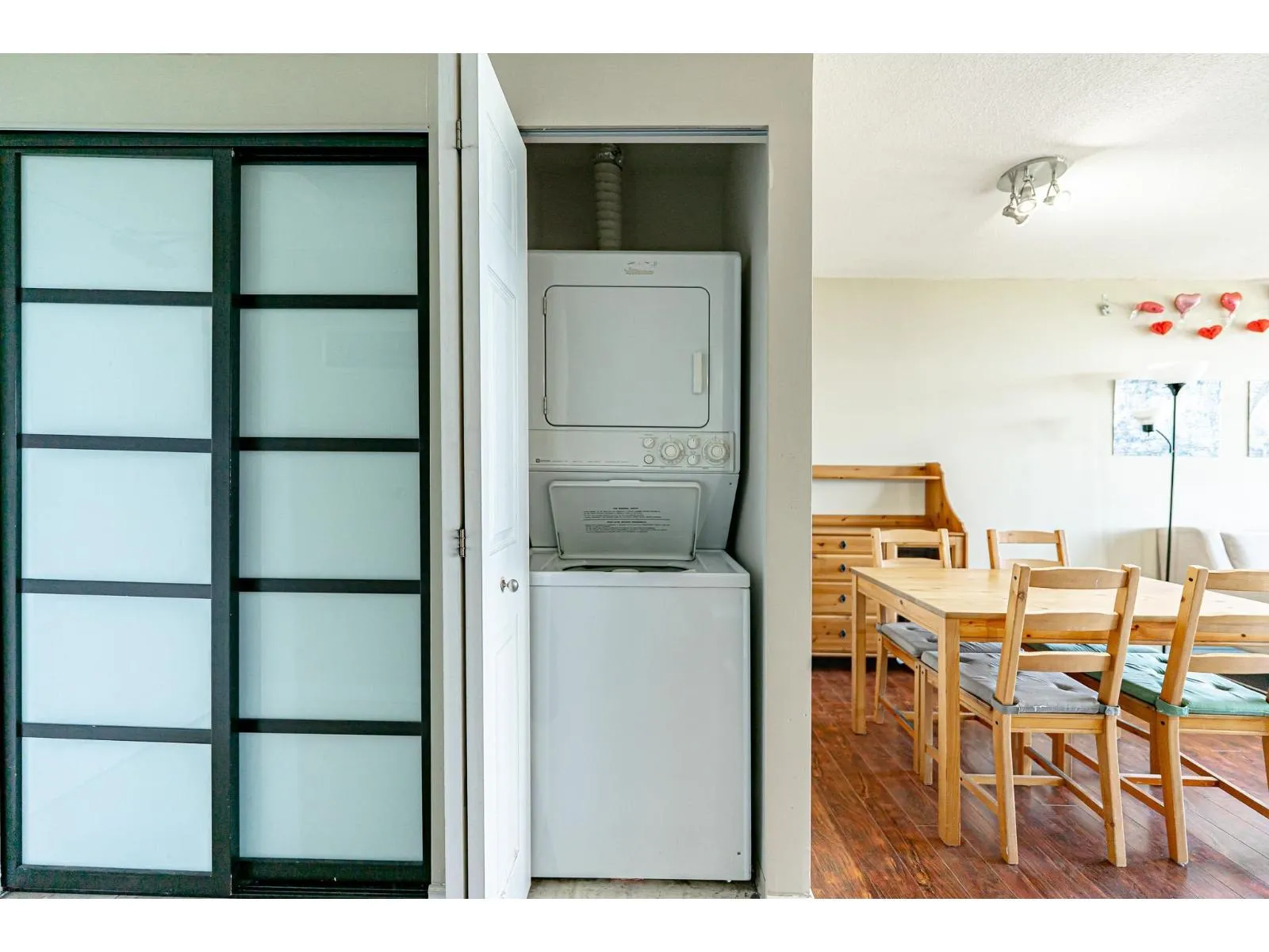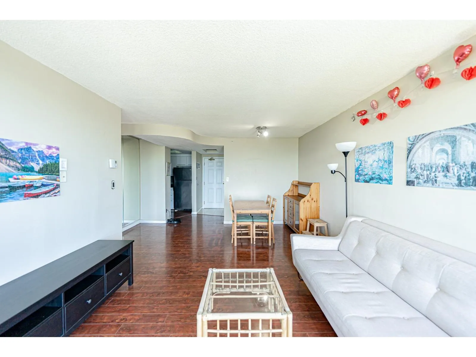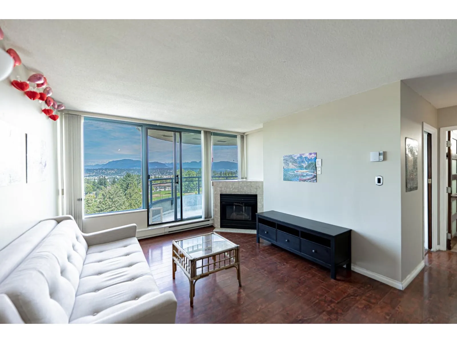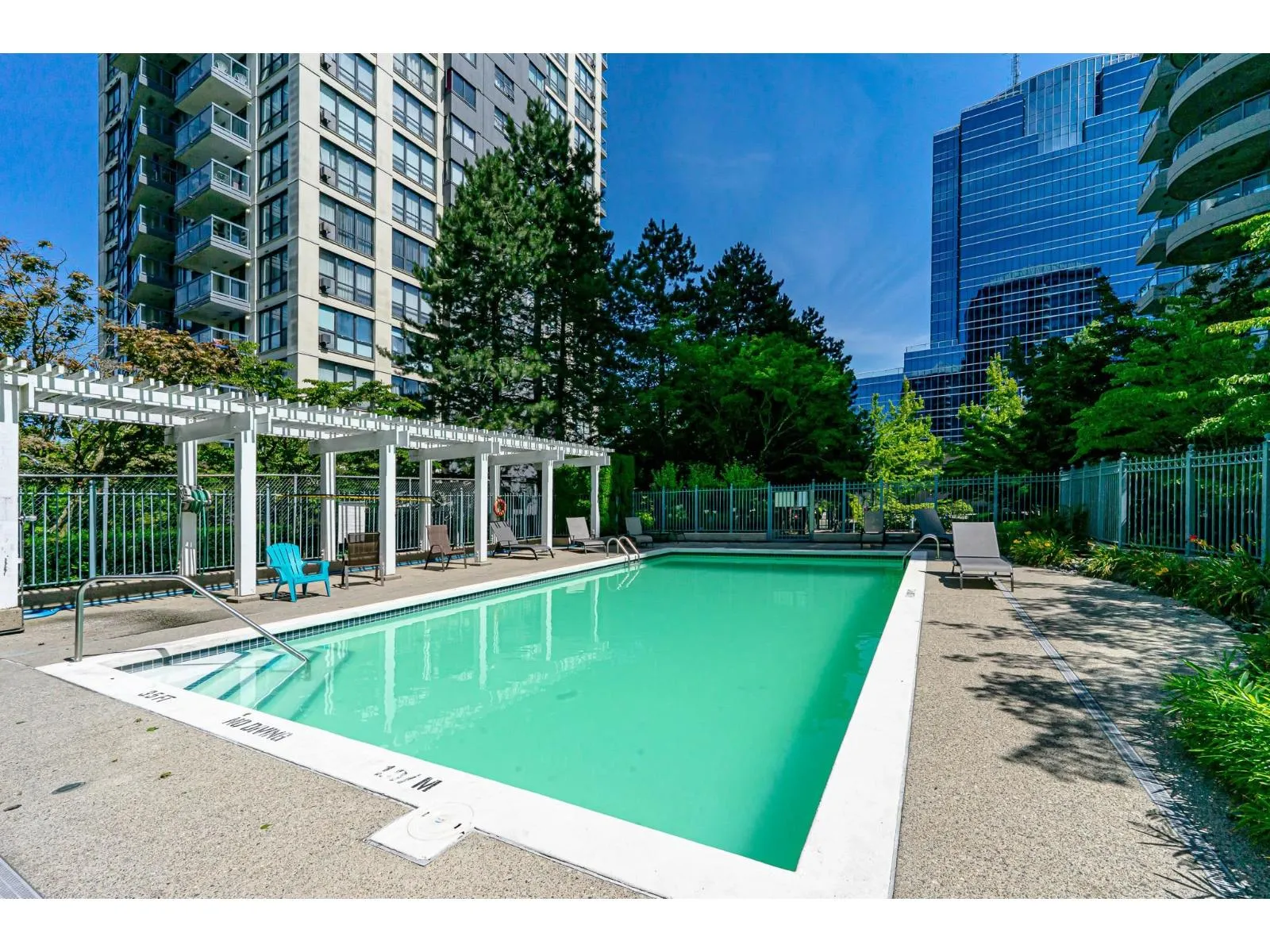 Welcome to this North facing 644 SQFT functional and spacious 1 bedroom condo with urban styling. Be fascinated with the panoramic unobstructed view of the North Shore Mountains and the Fraser River. Large circular balcony accessible from bedroom and from living room. This home boasts gleaming hardwood floors with upgraded s/s appliances, in-suite washer/dryer, cheater ensuite with contemporary fixtures. BONUS 2 designated underground parking & own storage locker. Beautiful secured building steps away from Gateway station in the Central City close to shopping, restaurants, library, recreation centre and the SFU Campus. Amenities include an outdoor pool and gym! Call for your private showing today! (id:27476)