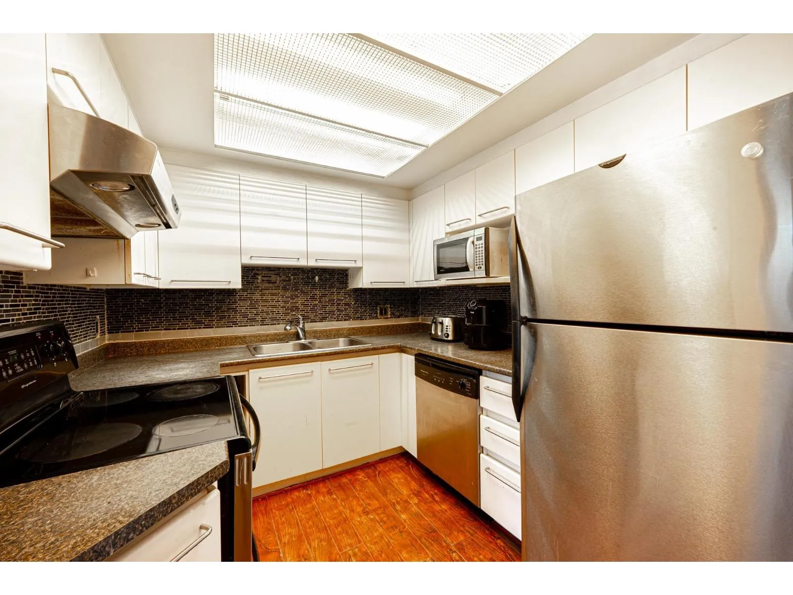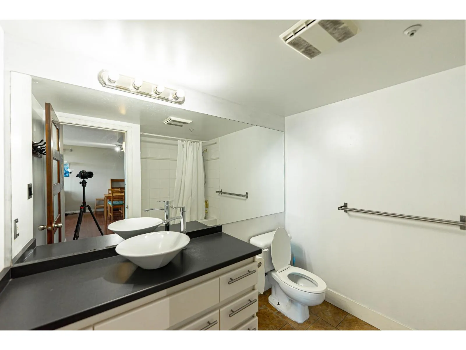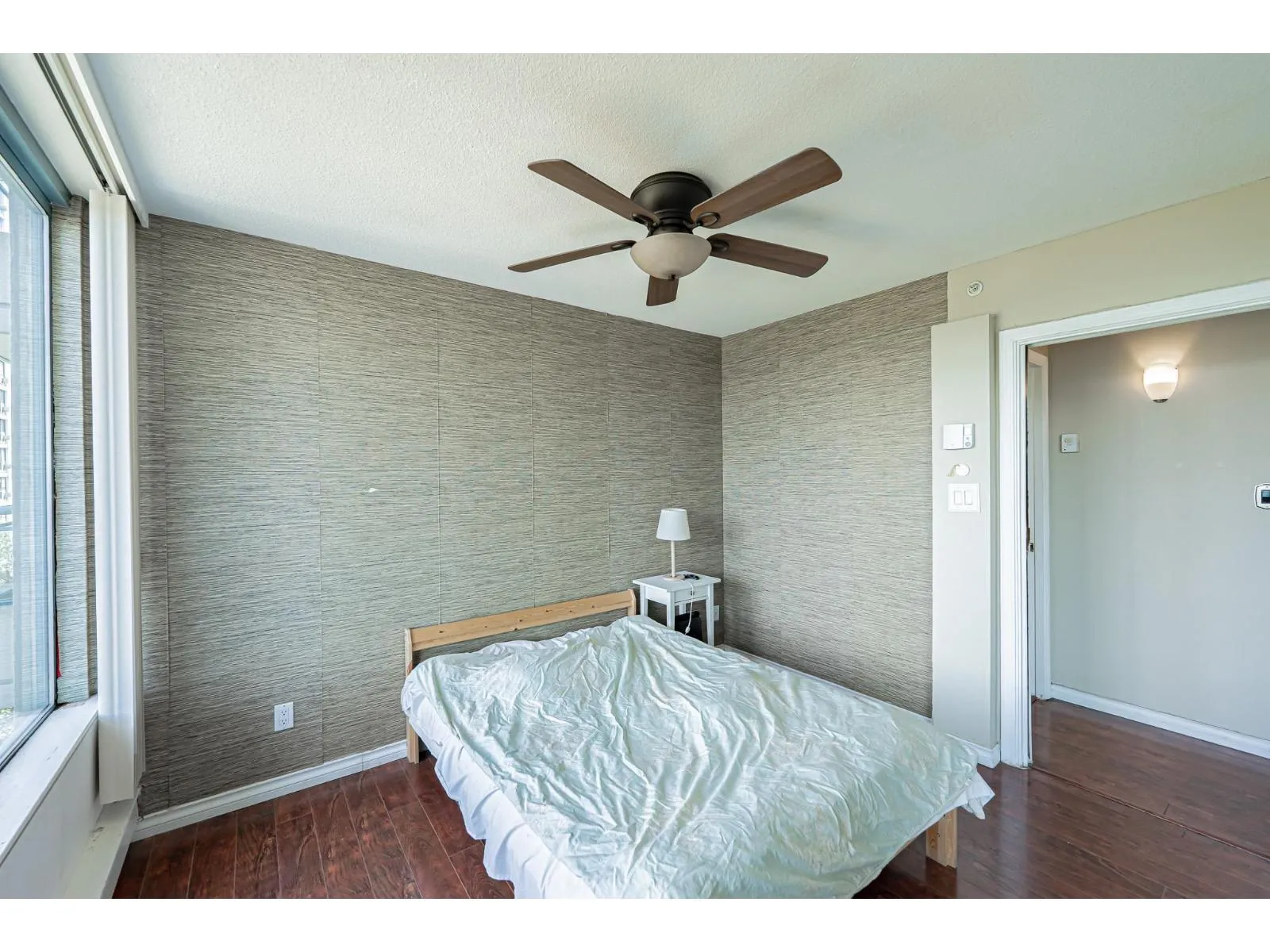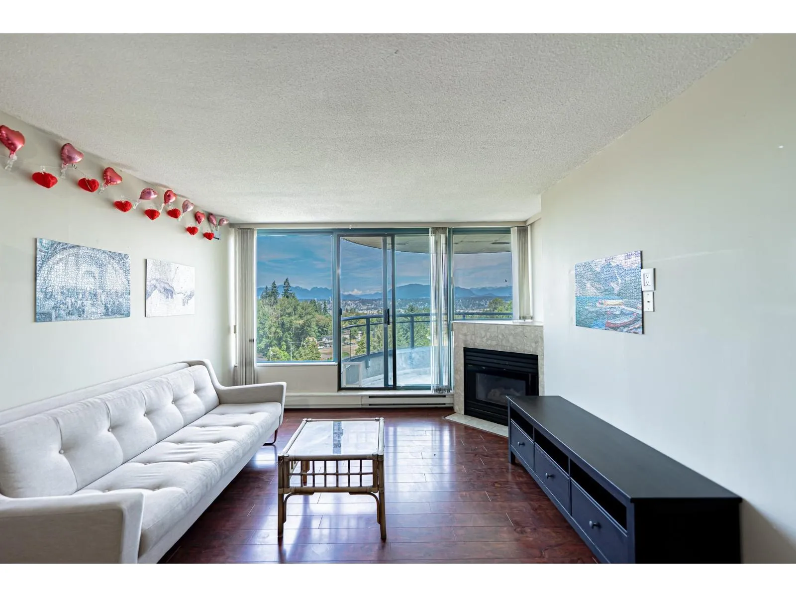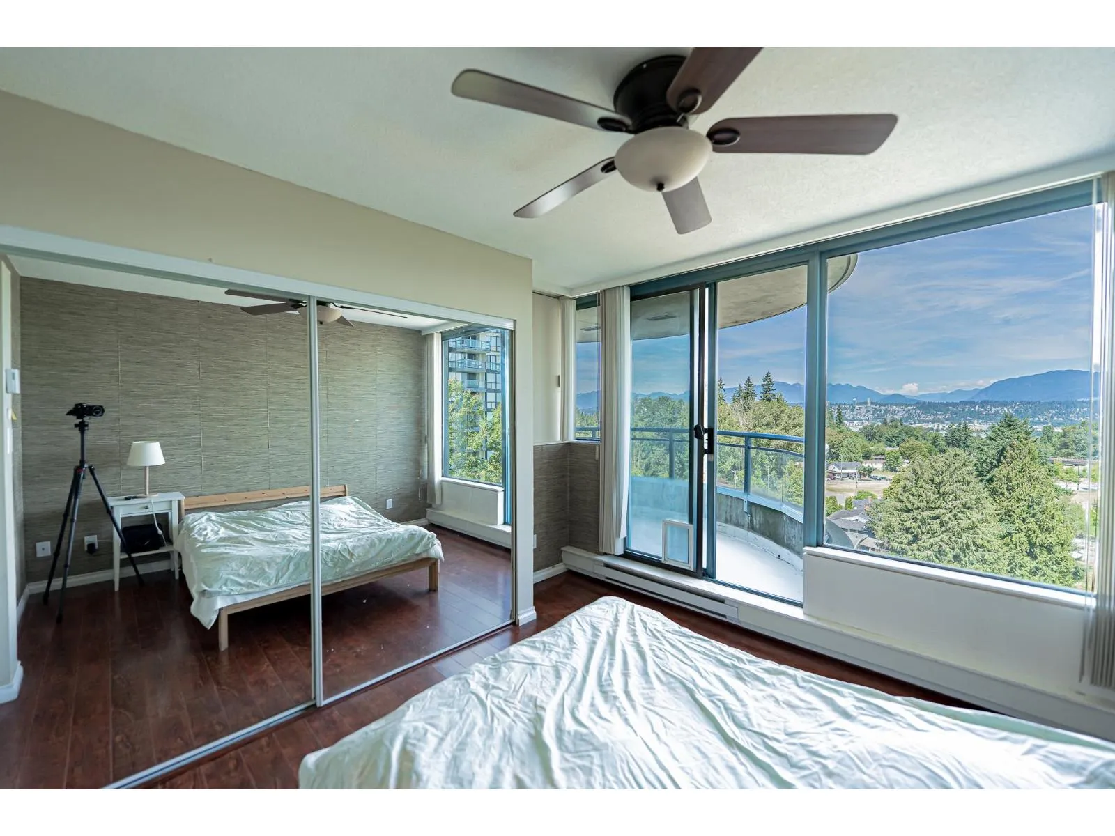 Welcome to this North facing 644 SQFT functional and spacious 1 bedroom condo with urban styling. Be fascinated with the panoramic unobstructed view of the North Shore Mountains and the Fraser River. Large circular balcony accessible from bedroom and from living room. This home boasts gleaming hardwood floors with upgraded s/s appliances, in-suite washer/dryer, cheater ensuite with contemporary fixtures. BONUS 2 designated underground parking & own storage locker. Beautiful secured building steps away from Gateway station in the Central City close to shopping, restaurants, library, recreation centre and the SFU Campus. Amenities include an outdoor pool and gym! Call for your private showing today! (id:27476)