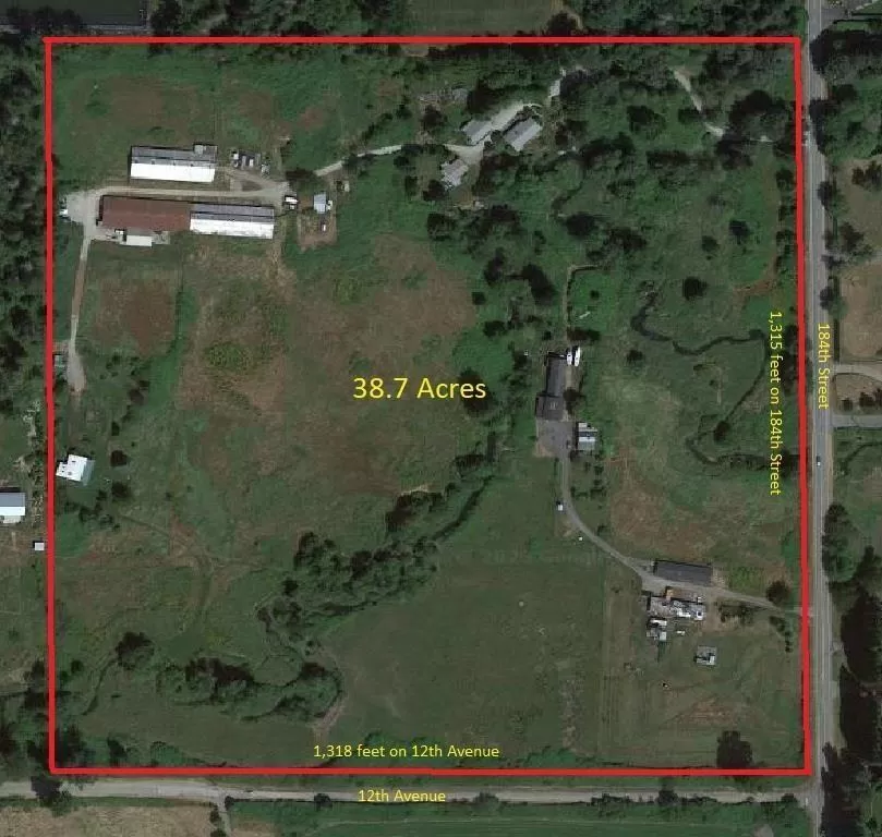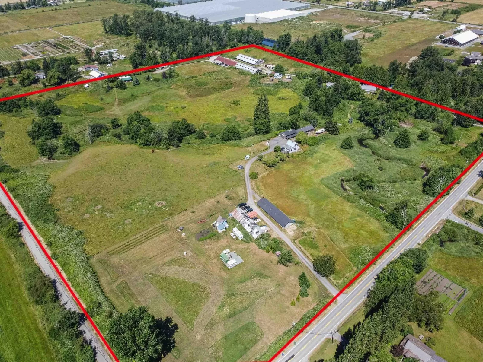 A true opportunity for the whole family to live together! This is a once in a lifetime property that has an abundance of options for your imagination & dreams! A gorgeous 38.7 acre ESTATE property located in the highly desirable & sought-after area of Hazelmere in South Surrey. Two solid main homes are acres apart with separate addresses & driveways. A multitude of large barns 289'X50', 139'X49', 110'X22', 92'X24', 42'X34' and workshops. The acreage has some gentle rolls with the salmon producing Little Campbell River meandering through "a true nature watchers paradise". Water rights of 37,000m3 per year. A blank canvas for you to create an Equestrian estate, a winery, greenhouse production, your dream farm. Fabulous location just minutes to the US border and freeway access. WOW! (id:27476)