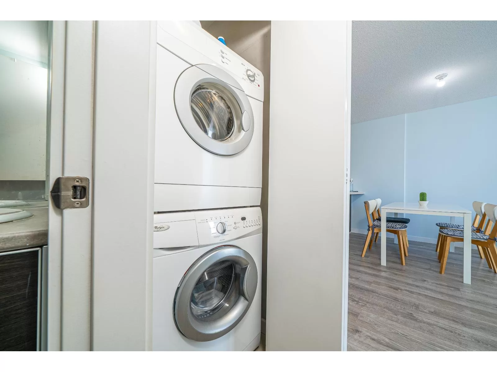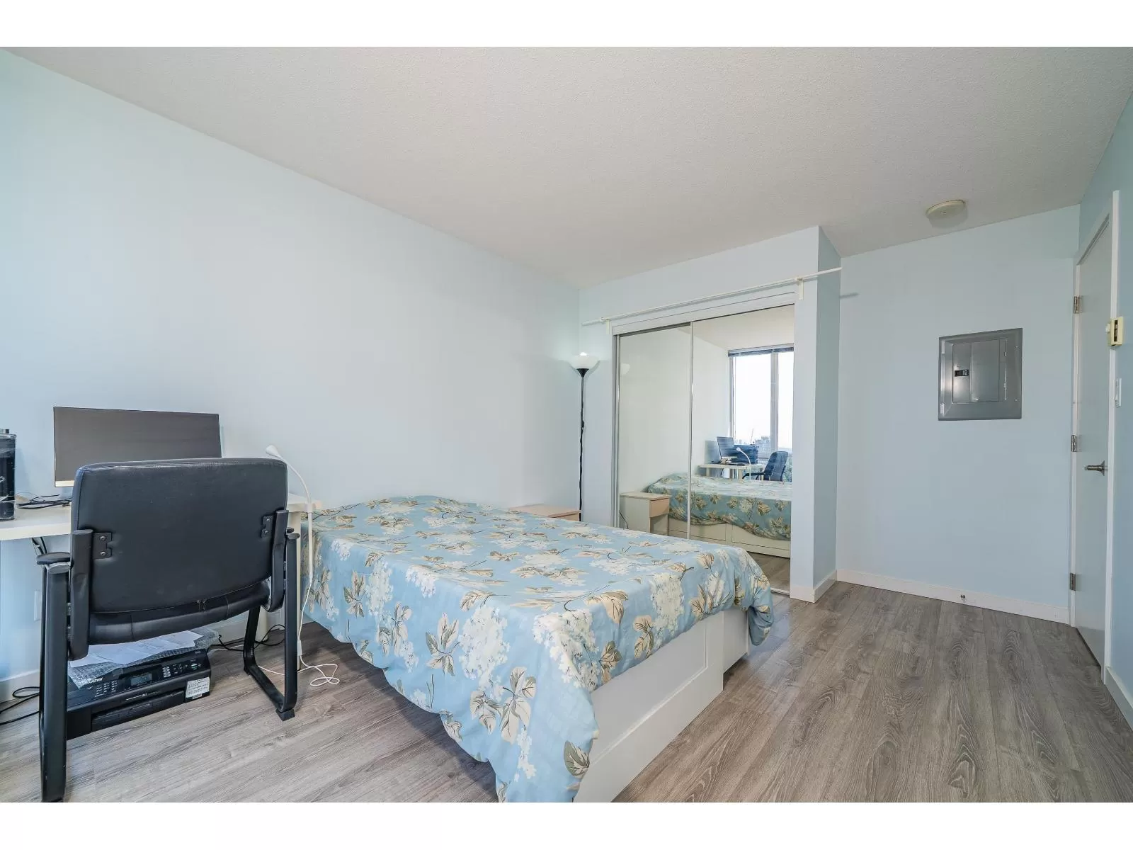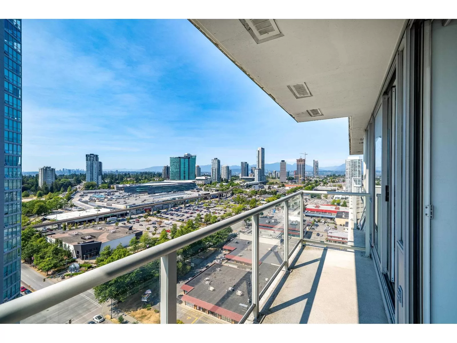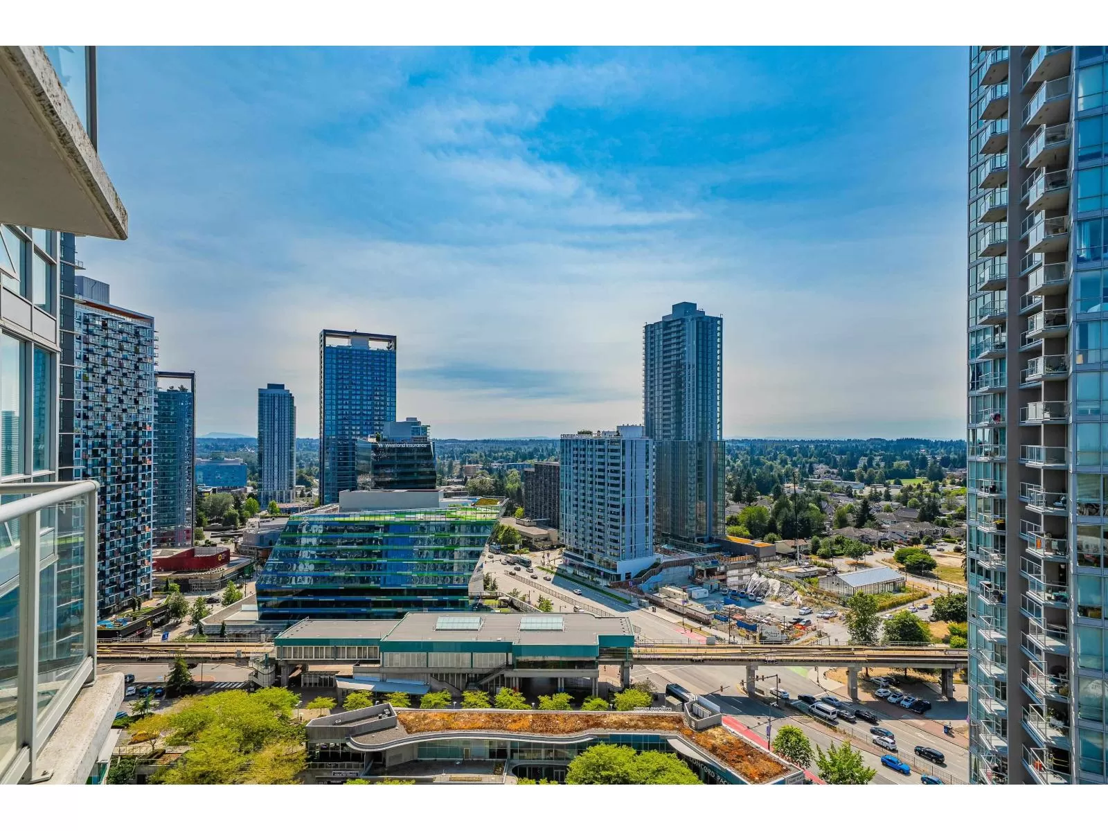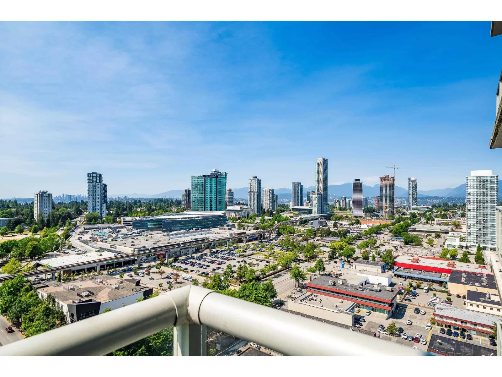 Welcome to Park Place One by Concord Pacific! This bright two-bedroom unit offers stunning north and south views of the city and mountains. Features include an open layout, Corian countertops, stainless steel appliances, eating bar, laminate flooring, and porcelain tile. The master bedroom has near floor-to-ceiling windows, and the second bedroom is spacious and versatile. Located in a concrete high-rise just steps from the SkyTrain, SFU campus, Holland Park, shopping, and entertainment. Amenities include a gym, yoga room, steam room, bowling alley, theatre, lounge with billiard table, rooftop garden, plus 24-hour concierge and parcel service. Includes Parking Stall #170 on P1, to the left of the exit door. Open house at 2-4PM on September 6 (Sat). (id:27476)