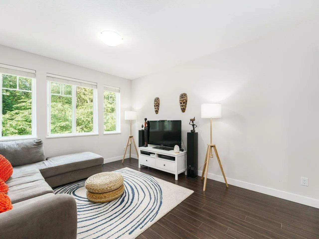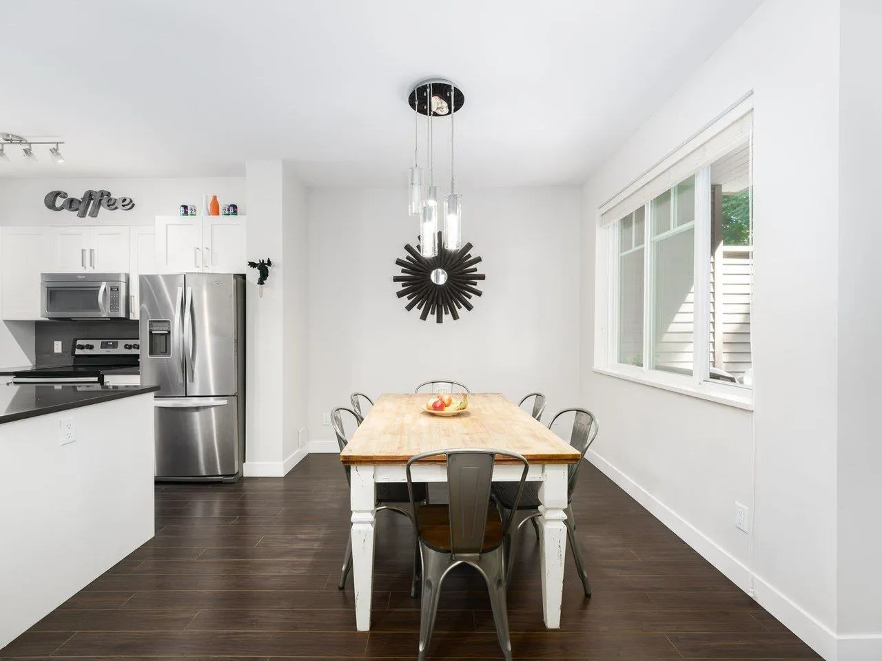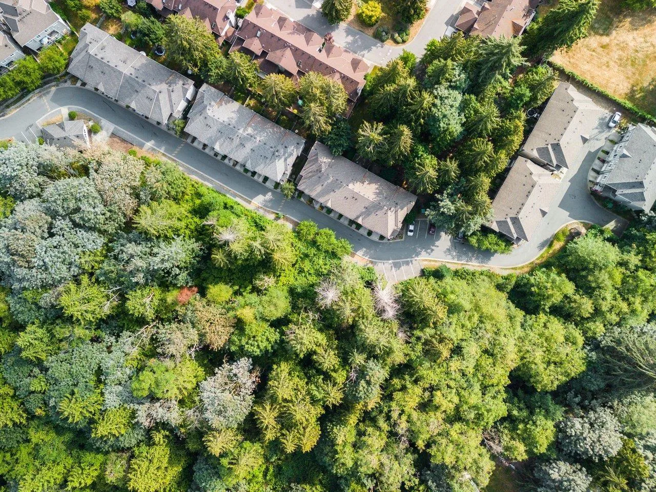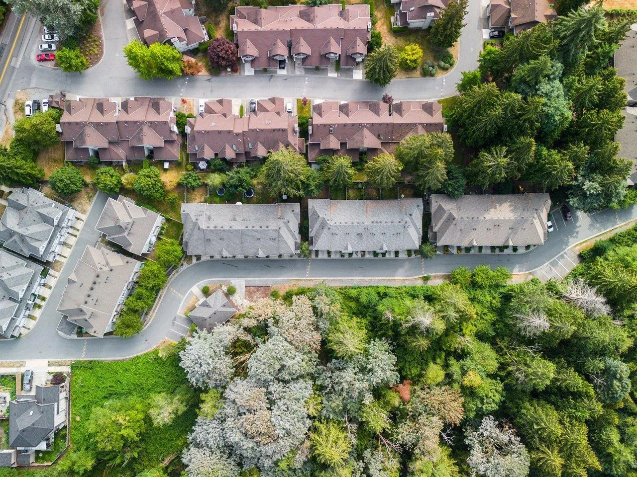 Teo by the Creek - This quiet, well-maintained 3-bed, 3-bath townhome offers rare privacy, backing onto a lush greenbelt with trees front and back. Lightly lived in by one family, it's in excellent condition and features 9' ceilings on the main floor, a spacious open-concept layout, and a stylish kitchen with a large island, wood shaker cabinets, soft-close drawers, quartz counters, undermount sinks, and stainless steel appliances-including an upgraded fridge with water/ice. Enjoy large windows, a full-size washer/dryer, roomy deck, fenced backyard, and a 2-car tandem garage. Ideal location steps to Hyland Elementary, trails, parks, transit, childcare, and King's Cross shopping. Just 10 minutes to city centre. (id:27476)