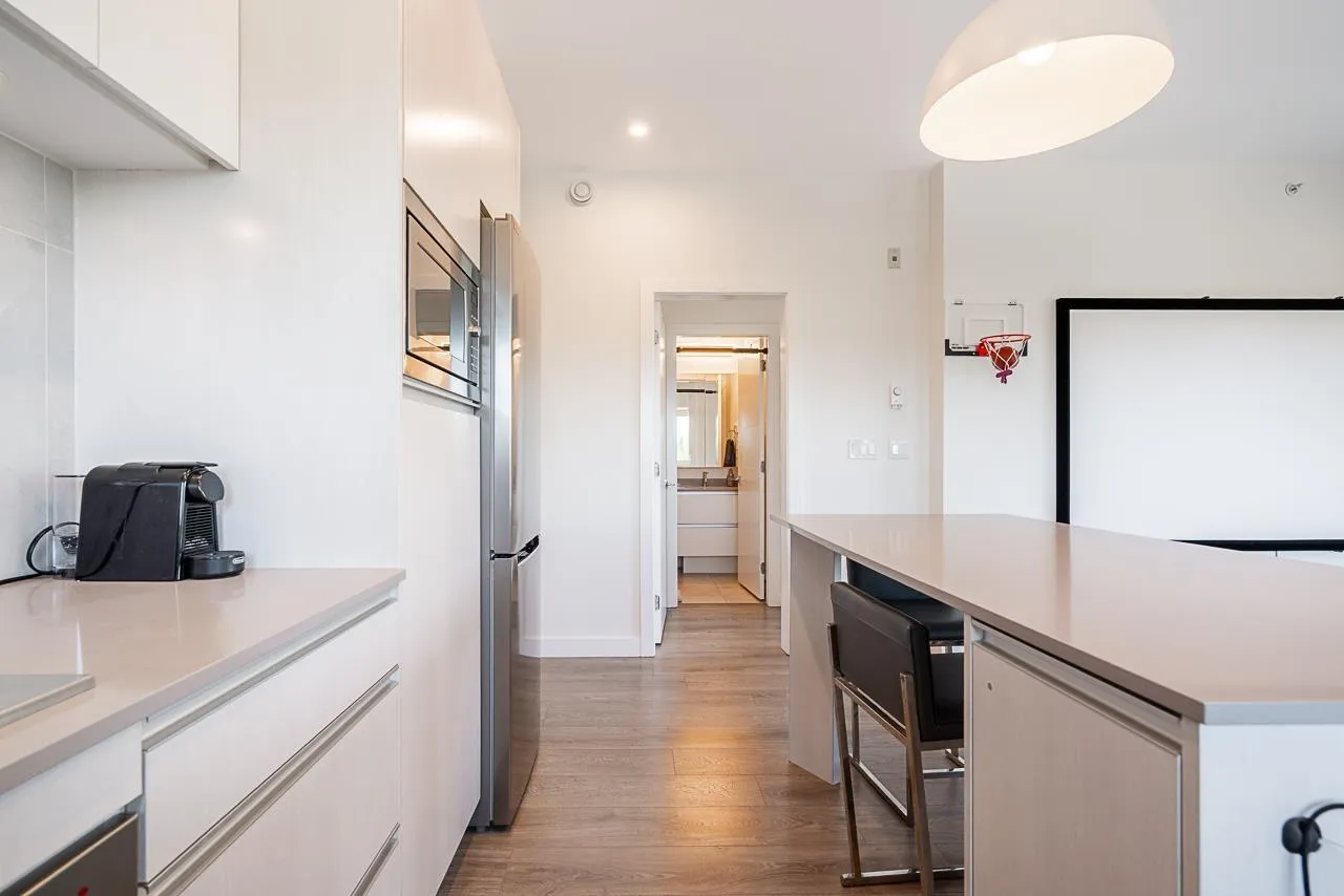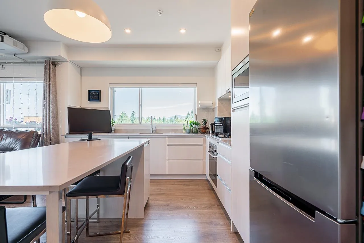 An exceptional 2-bedroom, 2-bathroom corner unit located on the top floor of a well-maintained 6-storey building. Ideally positioned between two major hubs - Guildford Town Centre and Surrey City Centre - this residence offers convenient access to public transit, a wide array of shopping, dining, groceries, and recreational amenities. The home features a generous 142 sq.ft. wraparound balcony, perfect for outdoor relaxation. Includes three dedicated parking stalls. Situated near all levels of schools, this condo combines comfort, convenience, and connectivity. (id:27476)