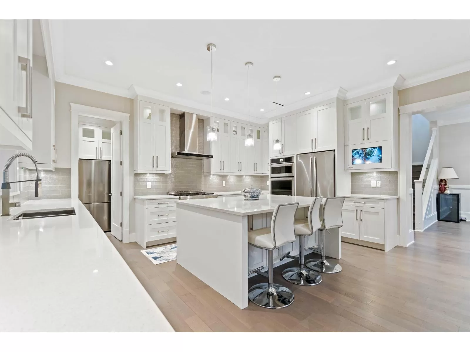 Stunning custom designed home in April Creek of Grandview Heights, with over 10,000 sq ft lot and almost 5,000 sq ft of luxury living space. Open concept floor plan with large picture windows. The gourmet chefs kitchen and wok kitchen with hi-end appliances and cabinetry. Features spacious 4 bedrooms, all with their own ensuite. Master bedroom facing south east. Full finished basement boasts a two bedroom legal suite, and a gym room, steam shower, wine cellar, media or flex area. Walking distance to golf course. Close to shopping centre, new high school, community centre, etc. (id:27476)