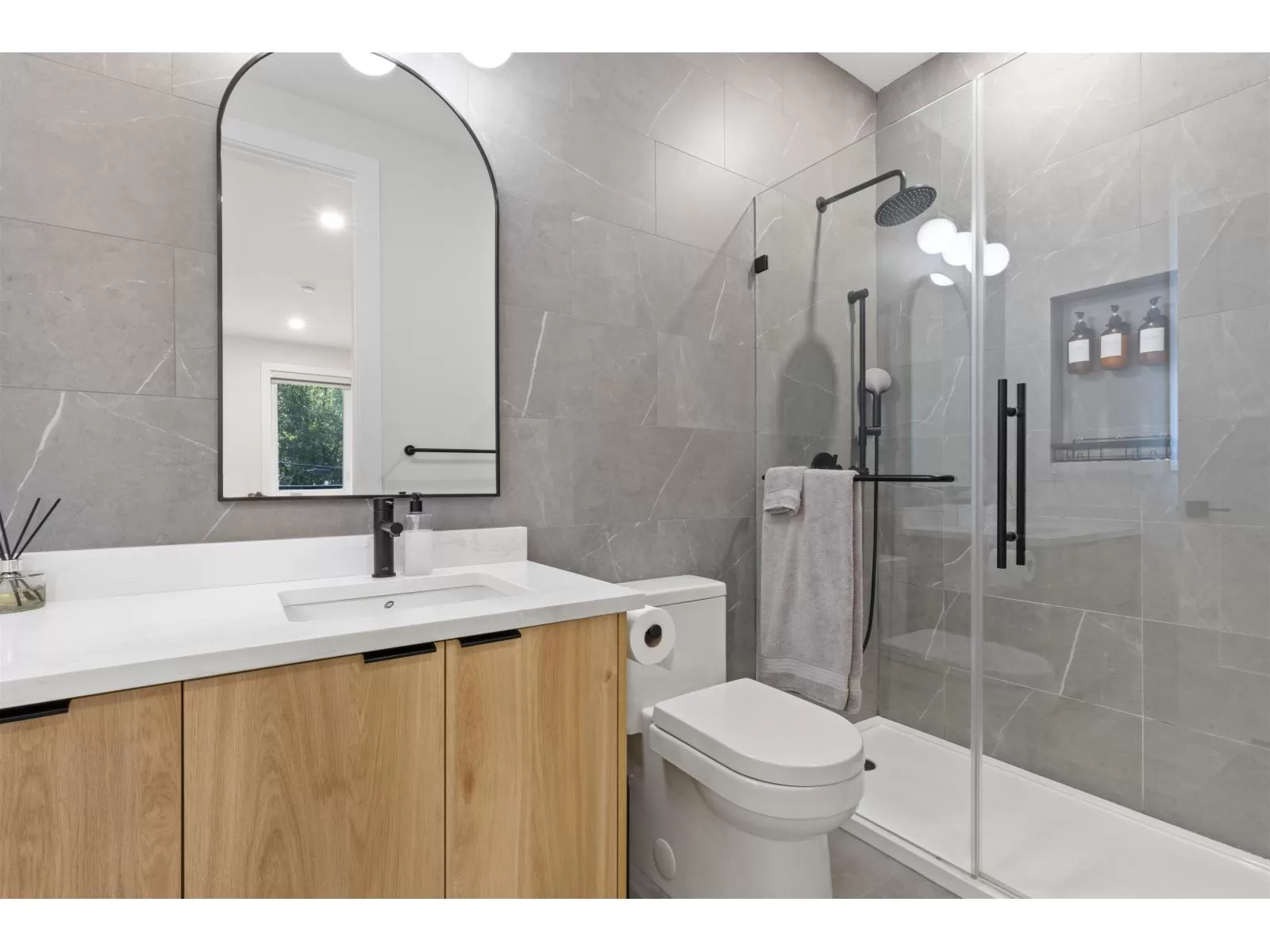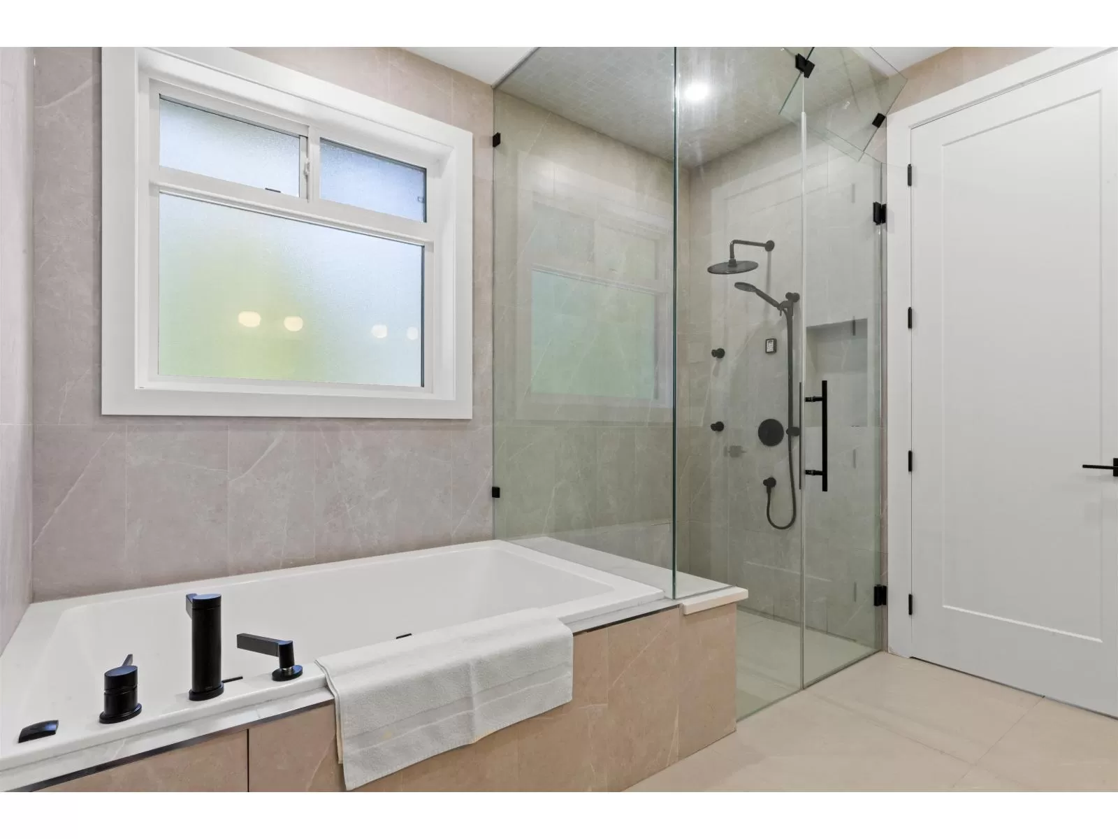 Welcome to this modern luxury home built in the heart of Surrey's Downtown. This home features a total of 8 bedrooms & 9 bath and sits on a beautifully landscaped 7,500sf+ rectangular lot. Quality built, 3 level residence boasts over 5,600sf+ of living space and is located on a very quiet street with many new homes around. Guest bed on main floor with additional 4 bed+bath upstairs. Featuring an open concept floor plan, with endless custom finishes throughout such as stucco exterior, AC/HRV, radiant in floor heat, movie theatre, wet bar, top of the line appliances, security systems, cameras, alarms, steam shower, patios, 10 foot ceilings on main & much more! Walking distance to all levels of school, university, public transit, shopping, rec cent, Surrey Downtown, & easy access to HWY 1. (id:27476)