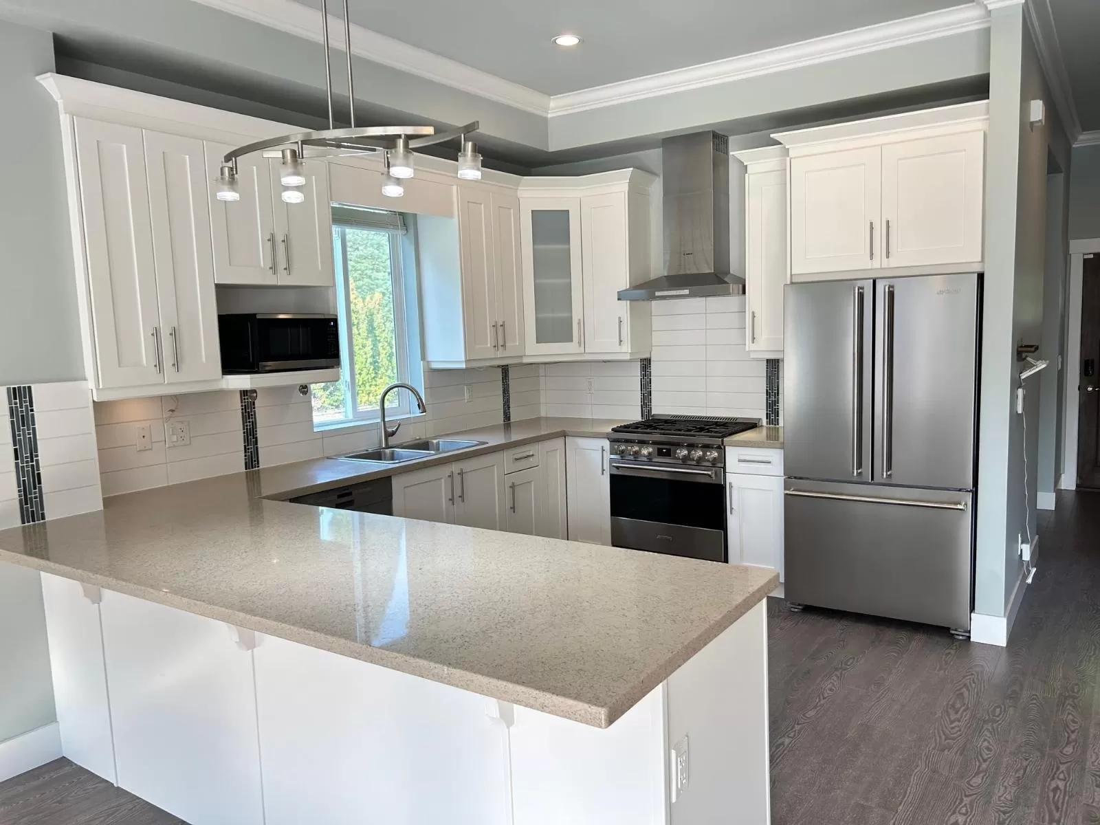 Stunning 2 story executive CARRIAGE HOME with basement suite & coach on a no-thru road siding onto private green belt! Luxuriously updated & freshly painted, featuring premium new Italian appliances, touch sensitive hood fan, new top of the line upper washer/dryer, vaulted ceiling, huge great room with new fireplace, new A/C heat pump & hot water tanks, new plush bdrm carpet, all new basement flooring and s/s appliances, full size laundry in both suites, new glass shower enclosure, new evergreen turf and sidewalk, re-built & freshly stained sundeck, deluxe parking pad, landscaping.. and so much more! Undoubtably, the finest coach home in Clayton! This spacious and elegantly customized beauty is a true '10'. Ready for you to move in, with two premium mortgage helpers. Hurry for this one! (id:27476)