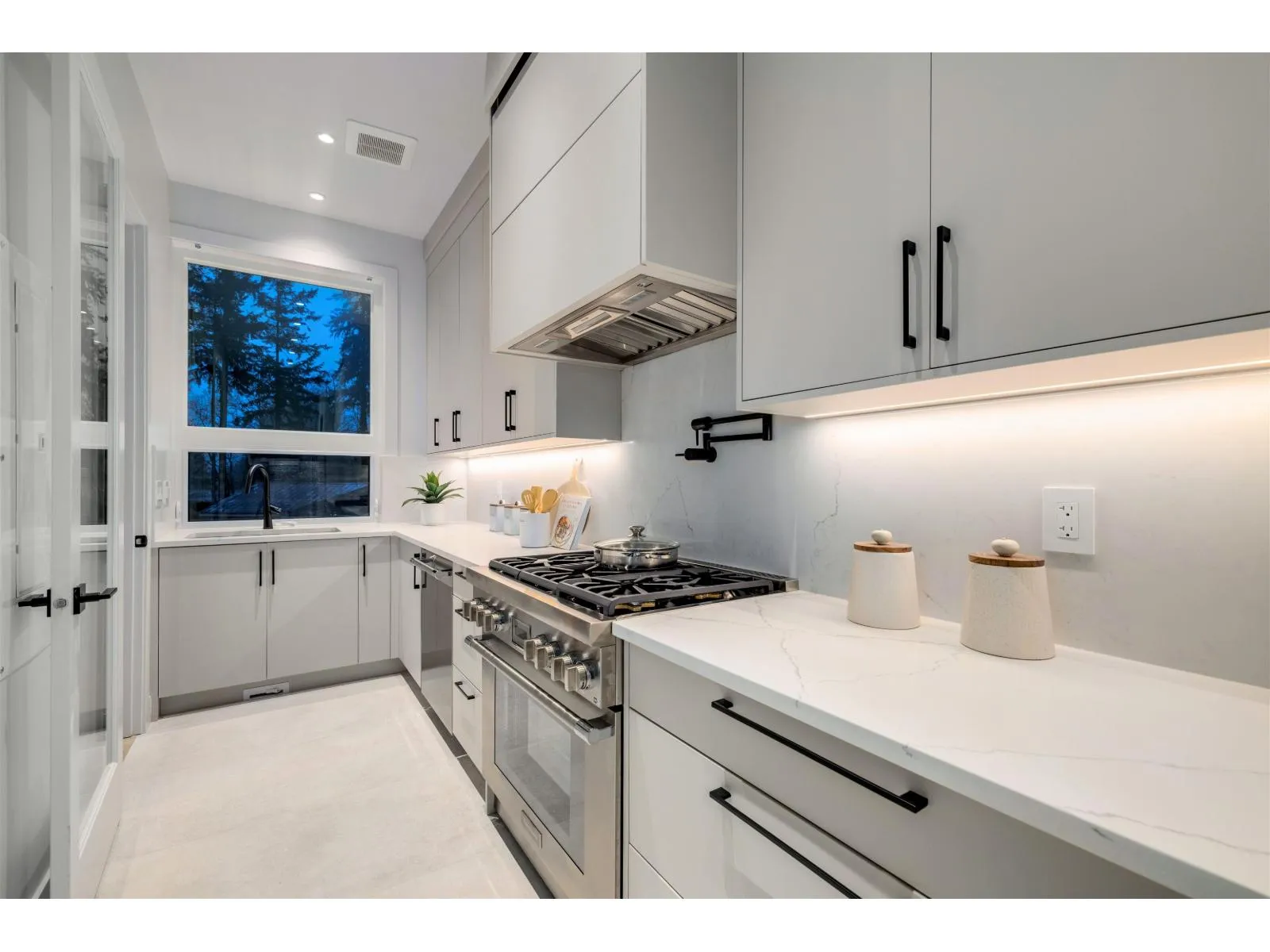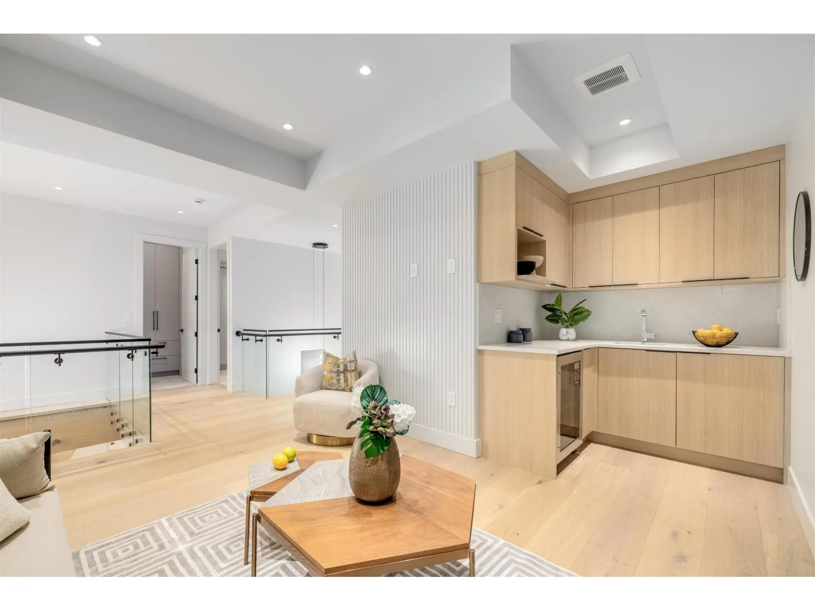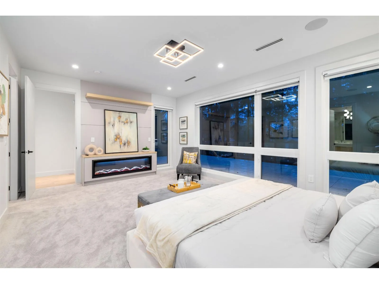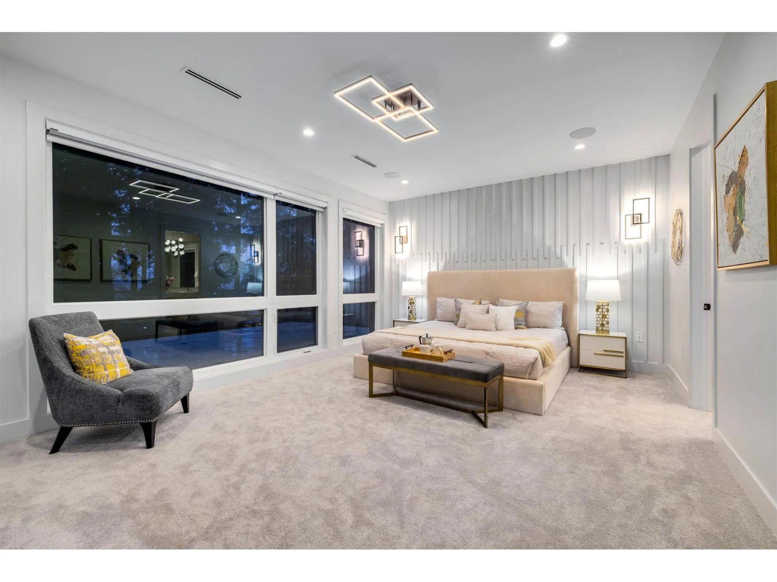 MODERN YET FUNCTIONAL LUXURY HOME! This elegant residence seamlessly blends contemporary design with practical living, offering the perfect balance of style and functionality.The main floor boasts an open-concept layout featuring a glass-door home office, a private bdrm with an ensuite, & two kitchens, equipped with waterfall islands and top-of-the-line appliances. Upstairs, discover four spacious ensuites, including a luxurious primary bdrm with floor-to-ceiling glass windows and access to a private deck. A cozy sitting area provides an ideal space to relax and unwind. The lower level offers a gym, a media room, and a 2-bedroom legal suite with separate access. A self contained coach house, , ample front parking, abundant natural light, designer lighting fixtures, a private backyard. (id:27476)