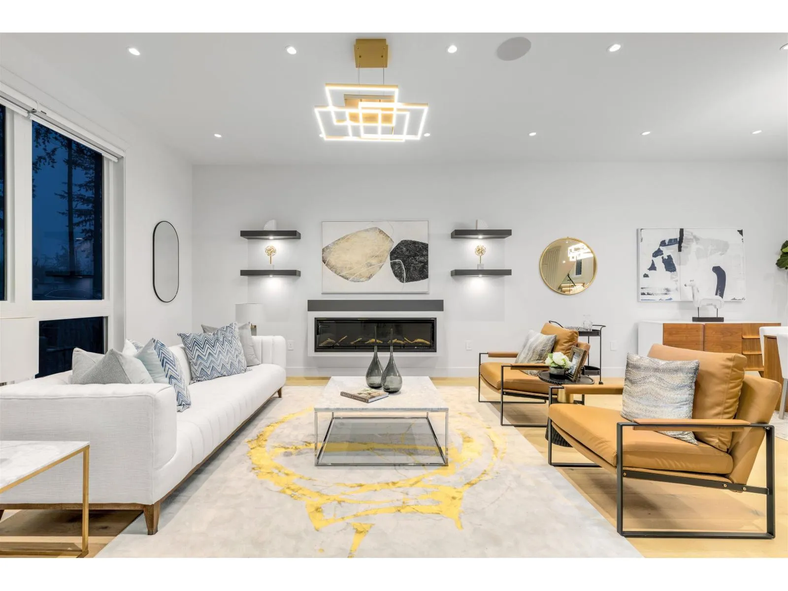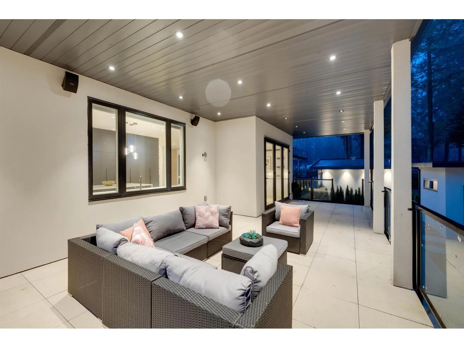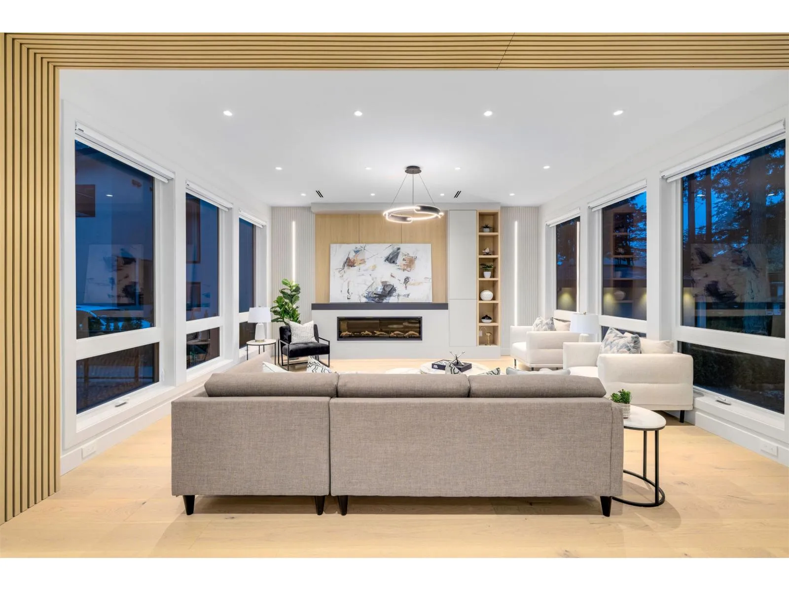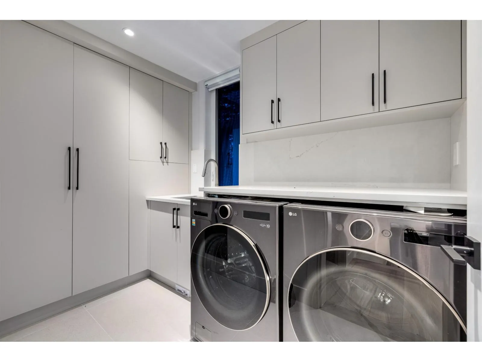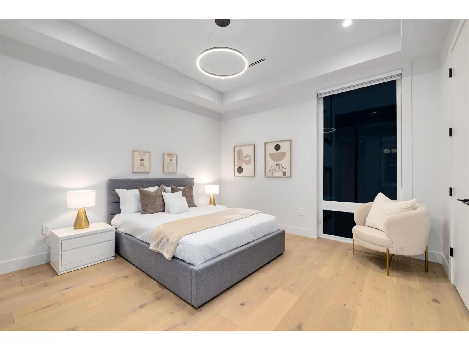 MODERN YET FUNCTIONAL LUXURY HOME! This elegant residence seamlessly blends contemporary design with practical living, offering the perfect balance of style and functionality.The main floor boasts an open-concept layout featuring a glass-door home office, a private bdrm with an ensuite, & two kitchens, equipped with waterfall islands and top-of-the-line appliances. Upstairs, discover four spacious ensuites, including a luxurious primary bdrm with floor-to-ceiling glass windows and access to a private deck. A cozy sitting area provides an ideal space to relax and unwind. The lower level offers a gym, a media room, and a 2-bedroom legal suite with separate access. A self contained coach house, , ample front parking, abundant natural light, designer lighting fixtures, a private backyard. (id:27476)