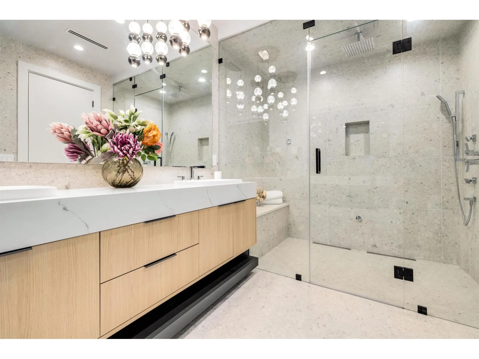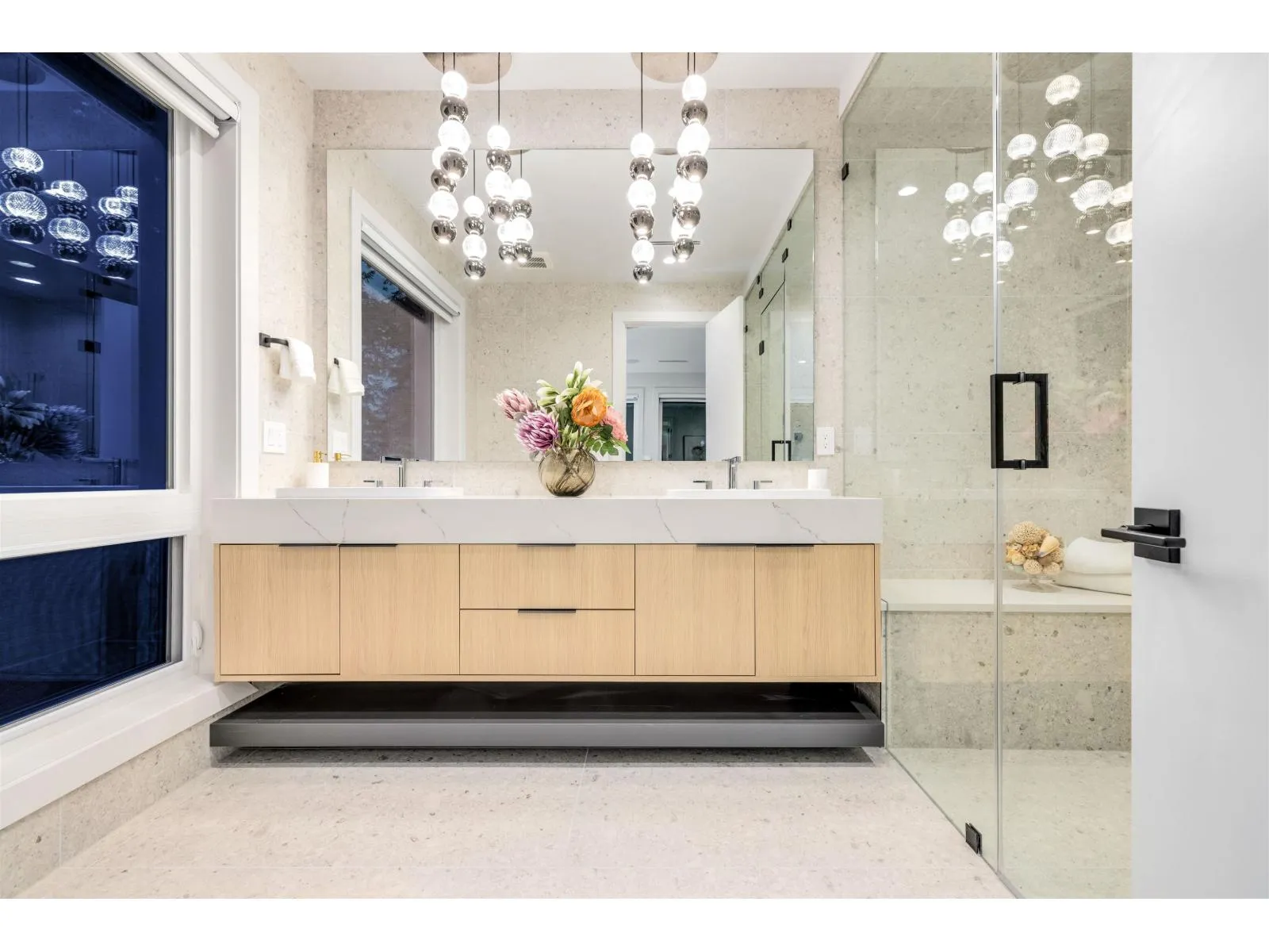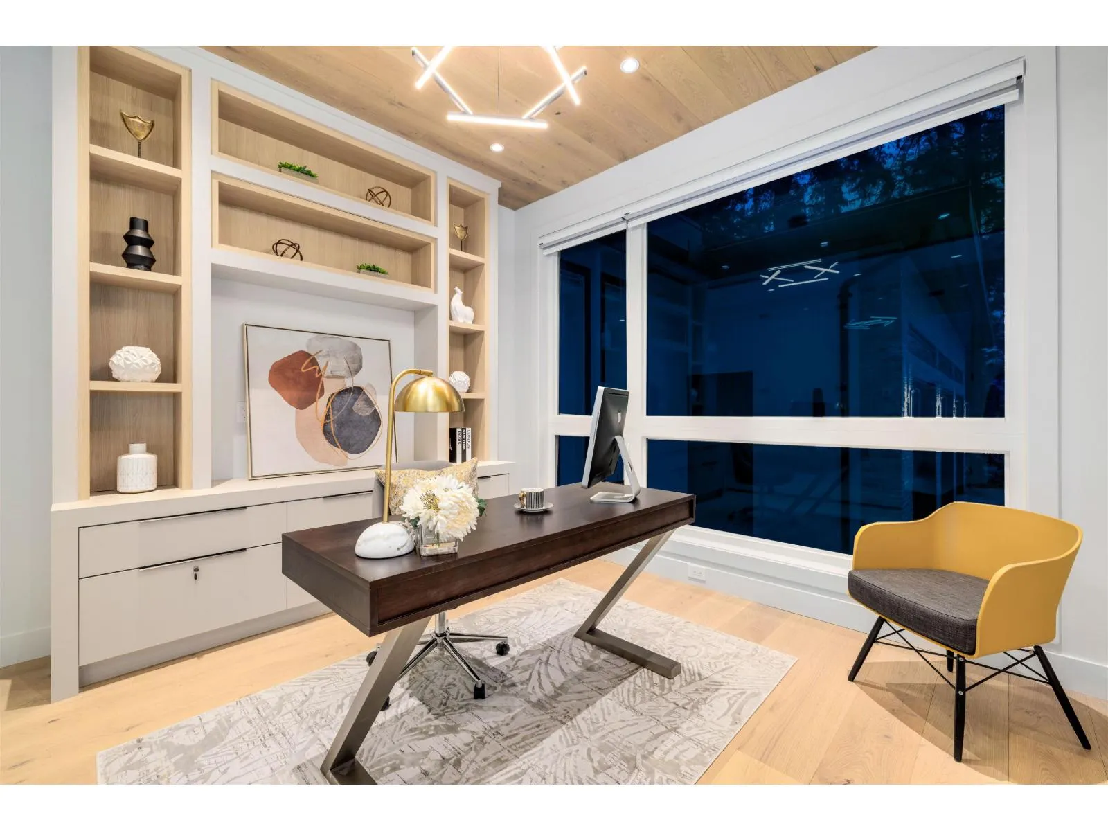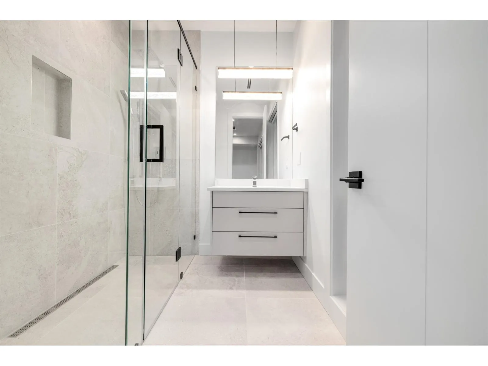 MODERN YET FUNCTIONAL LUXURY HOME! This elegant residence seamlessly blends contemporary design with practical living, offering the perfect balance of style and functionality.The main floor boasts an open-concept layout featuring a glass-door home office, a private bdrm with an ensuite, & two kitchens, equipped with waterfall islands and top-of-the-line appliances. Upstairs, discover four spacious ensuites, including a luxurious primary bdrm with floor-to-ceiling glass windows and access to a private deck. A cozy sitting area provides an ideal space to relax and unwind. The lower level offers a gym, a media room, and a 2-bedroom legal suite with separate access. A self contained coach house, , ample front parking, abundant natural light, designer lighting fixtures, a private backyard. (id:27476)