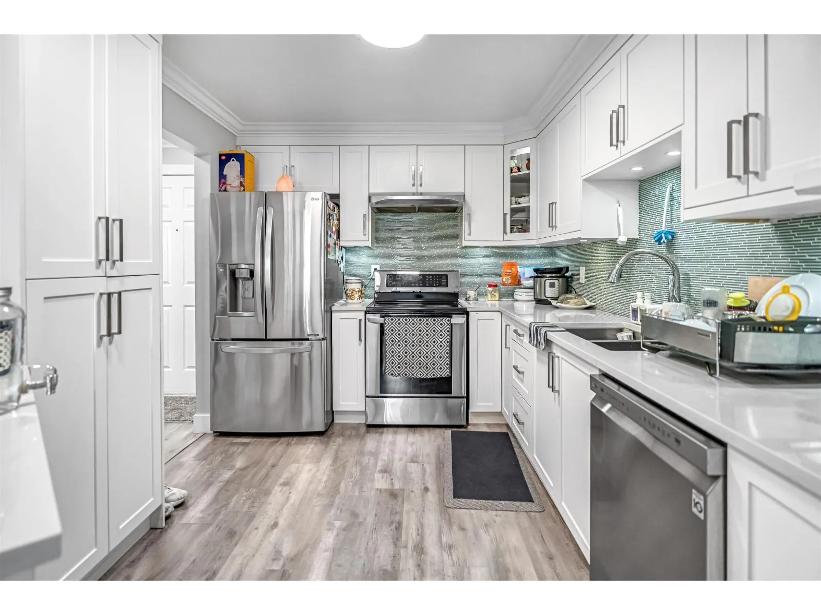 Centrally located exquisite 2 large bedroom, 2 full bathrooms, 2 parking spots with 1 storage locker. Updated Kitchen, bathrooms & cabinets with quartz countertops. This beautiful home has Stainless steel appliances, laminate floors in the living room, carpet in bedrooms and Vinyl tiles in kitchen & bathrooms. This home is within walking distance of public transit, banks, grocery stores, schools, restaurants and other amenities. Book your private showing today! (id:27476)