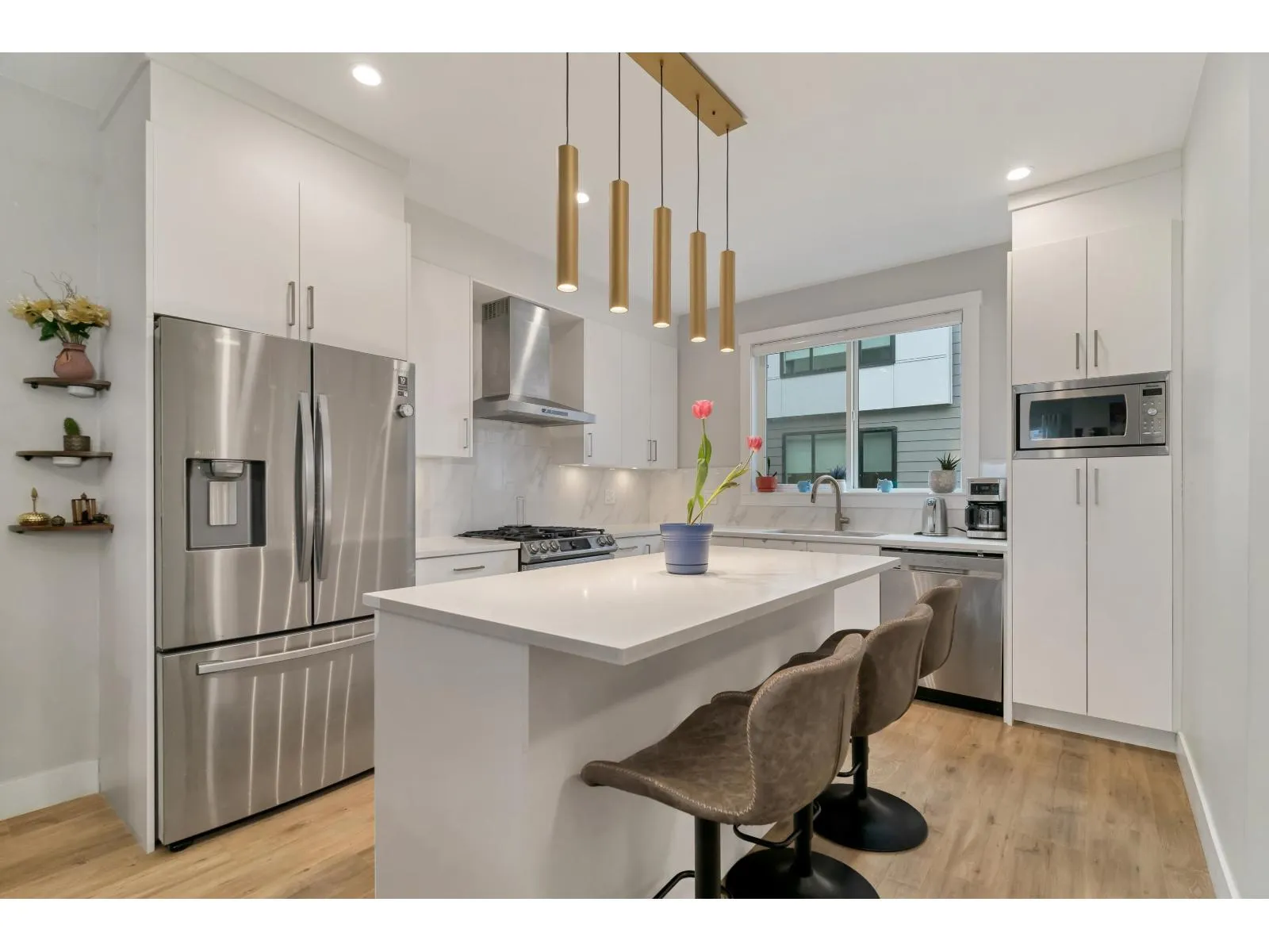 Welcome to Horizon, Well kept Corner unit in Surrey's vibrant Grandview Heights. This modern, three-level townhouse offers a blend of luxury and functionality. Featuring three spacious bedrooms on the upper level and a bed on the ground floor, this home is designed to accommodate diverse lifestyle needs. The open-concept main floor boasts high ceilings and expansive windows, ensuring ample natural light throughout the day. The contemporary kitchen is quipped with high-end stainless steel appliances, including a gas stove, catering to both everyday cooking and entertaining. Double car garage and balcony on the second level, providing additional outdoor space with gas hookup and you can also enjoy the community's dedicated amenities. (id:27476)