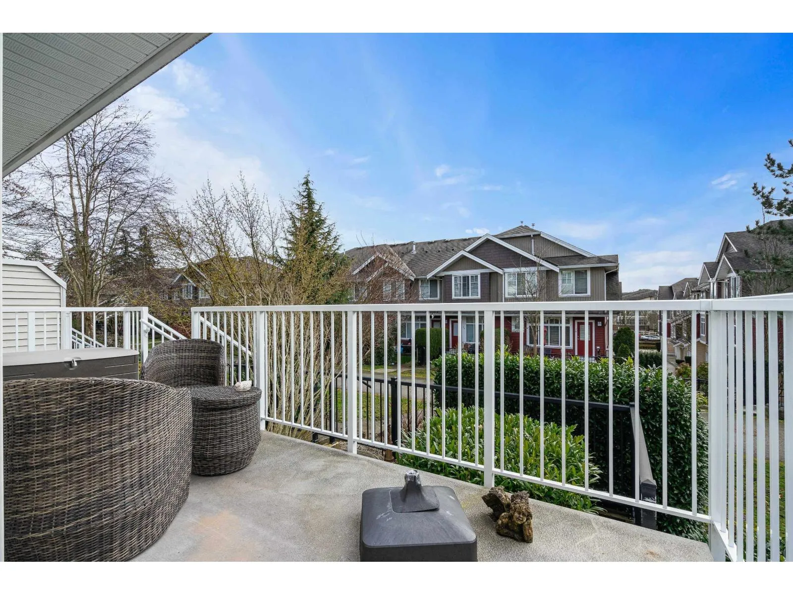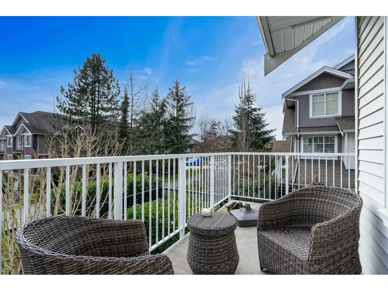 The highly desirable Two Blue II! This bright and spacious end unit features a side-by-side double garage and a versatile floor plan. Nestled in the quietest and most private section of the complex, it offers a serene location with a sundeck overlooking picturesque walking trails and minutes away from the new Clayton Skytrain station. The home is filled with natural light thanks to its many windows and Southwest exposure. The charming kitchen boasts granite countertops and New Stainless Steel appliances. Bonus: New High efficiency Furnace, All new appliances, New Carpet, New Garage Door Opener, Freshly painted & allows for 2 Pets (Cats or Dogs). Quick possession available! (id:27476)