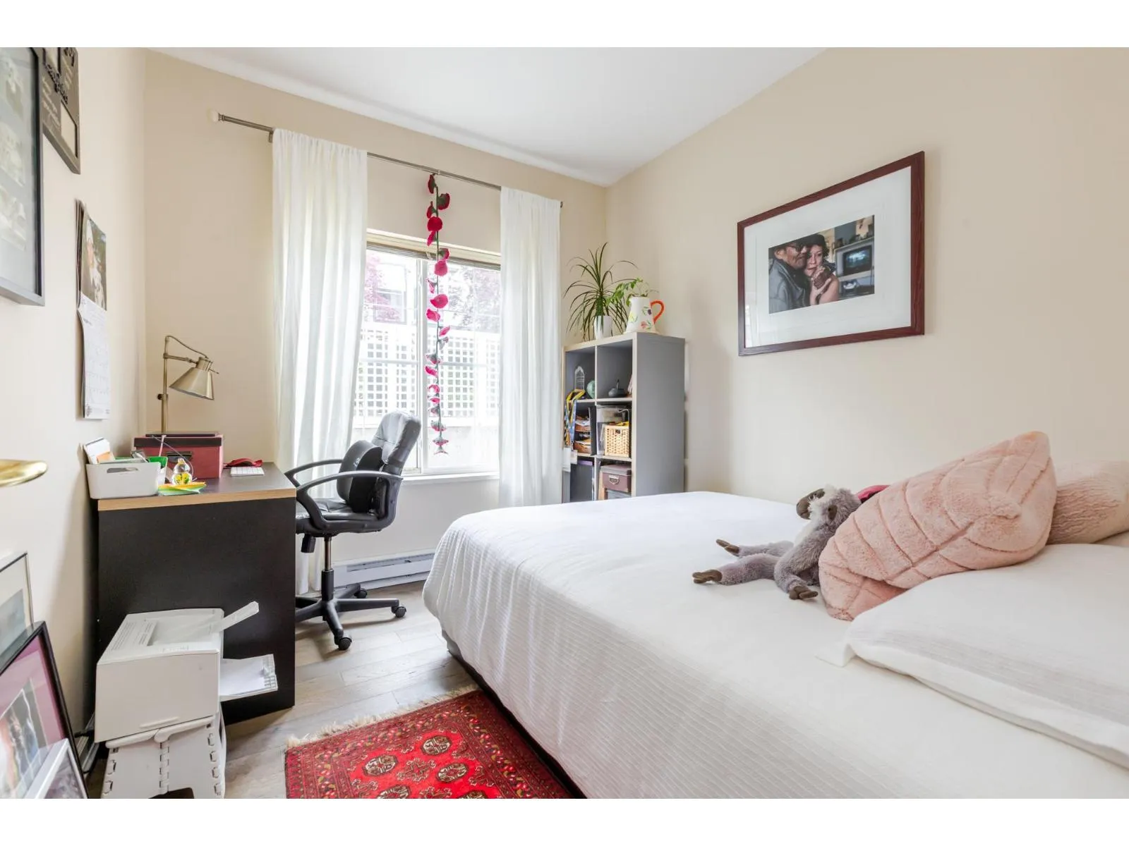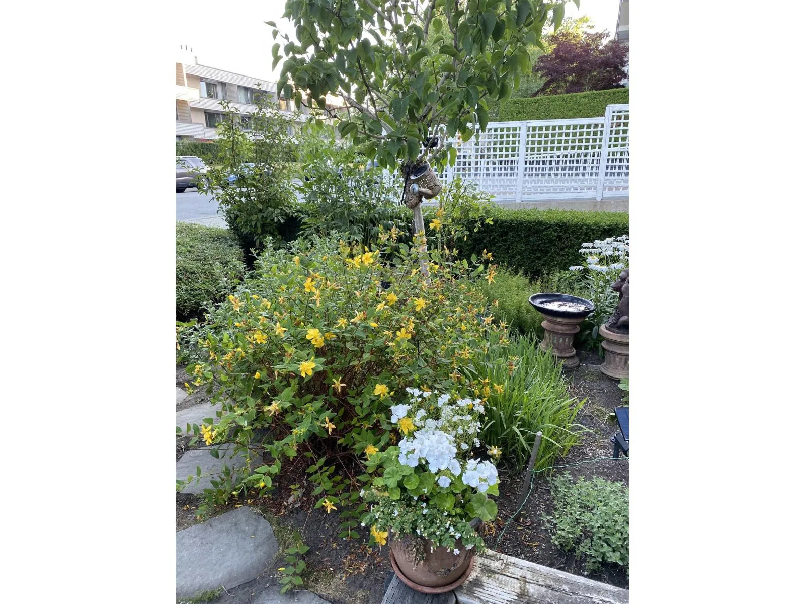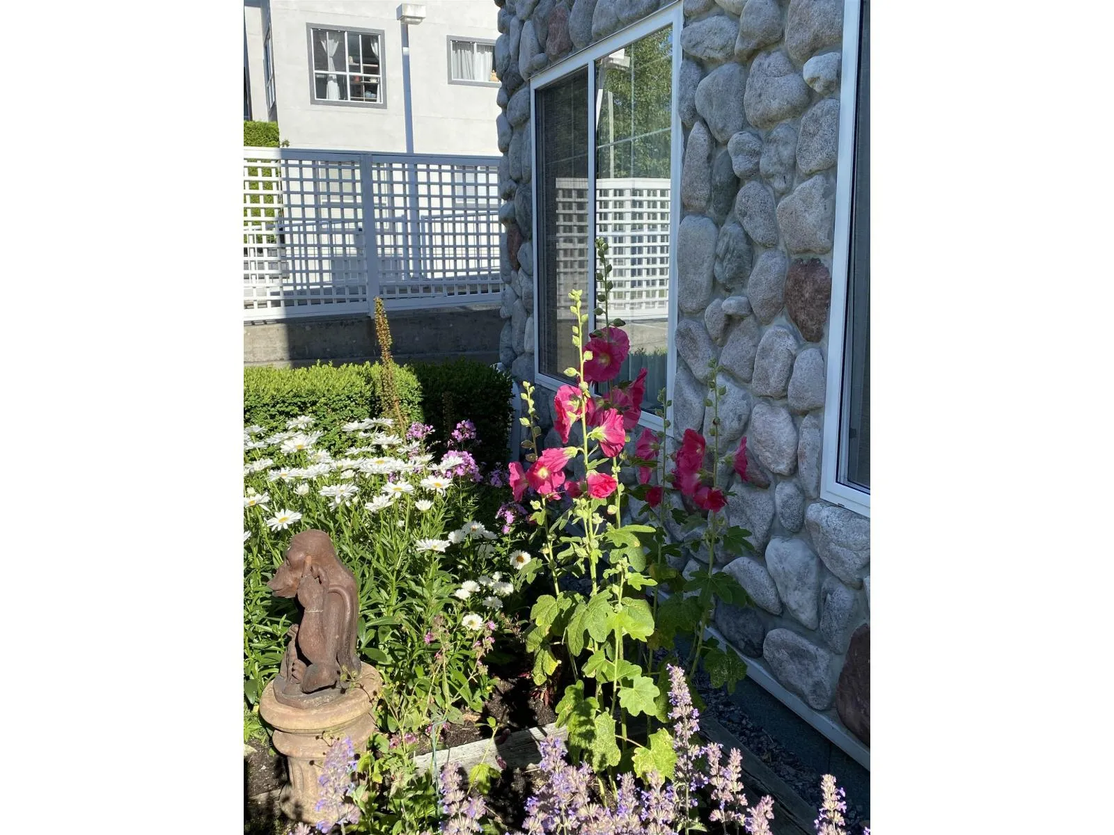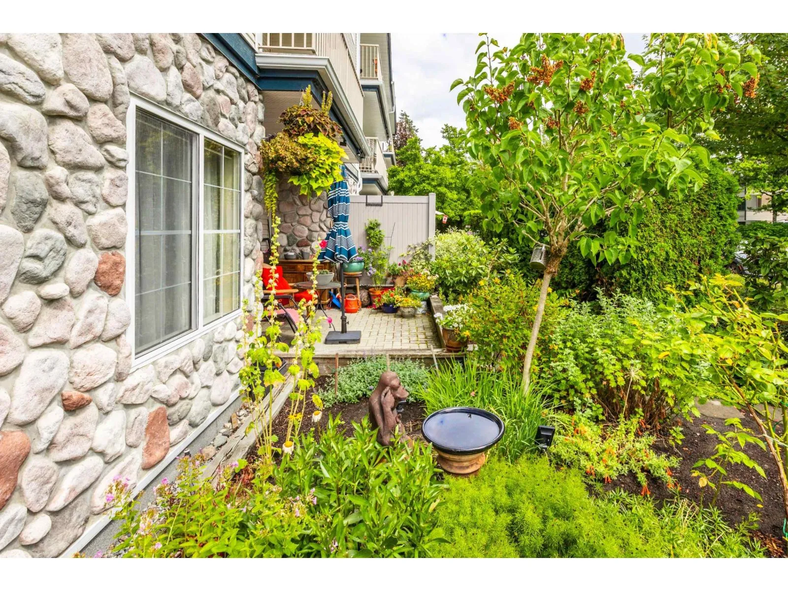 Ground-floor garden condo with a bright south-facing exposure and high ceilings. This spacious corner unit offers a fantastic two-bedroom layout, hardwood floors, and an open kitchen with ample storage. Enjoy the warmth of a gas fireplace, a separate laundry room, and a design that truly feels like a home. One parking space included. The well-maintained complex features an amenity room and a convenient guest suite. Perfect for those who love gardening but are ready for the ease of condo living. (id:27476)