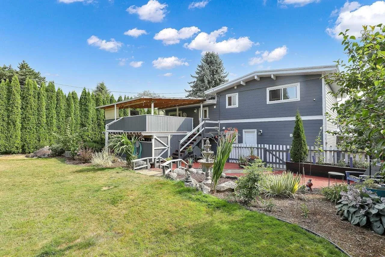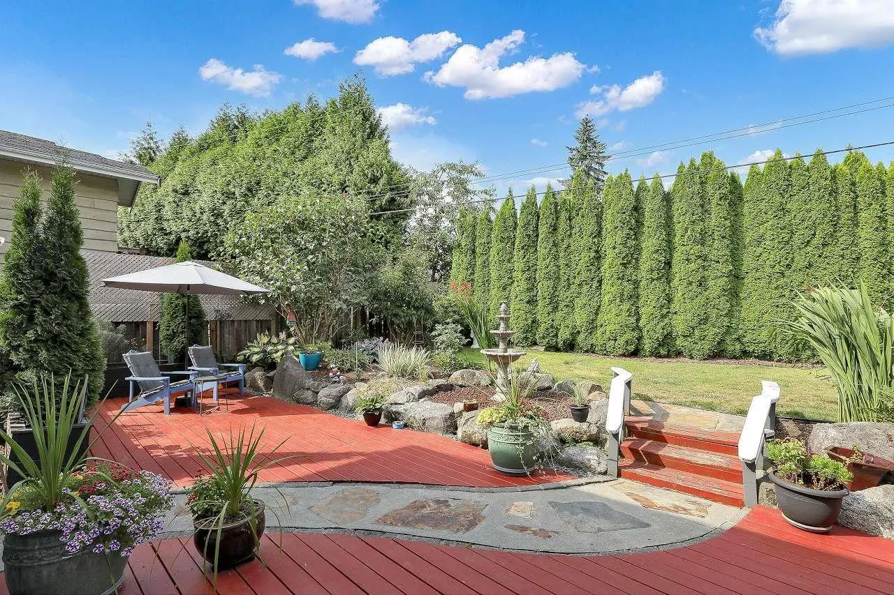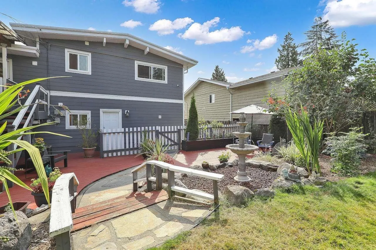 Lovingly maintained and updated over the years. Over 2200 sq ft 4 bdrm, 3 bath, 2 kitchen, on no through part of 152 St in popular Birdland. Main fl with open plan, ideal for entertaining. Kit with large island, newer appls and all 3 bathrooms renovated, 2 recently. Other updates incl refinished hdwds, windows, heat pump & air cond, drain tiles and crown molding. New Hardy brd exterior and paint. Bsmt has new 3 piece bth updated wht kitchen and sep entrance. Huge 20 x 19 raised covered deck off dining rm overlooking a private bk yard with lower grd level deck with water feature and landscaped gardens. Within walking distance to Guildford Mall, rec centre, restaurants and schools. Easy access to Hwy 1, Port Mann, T&T and buses. (id:27476)