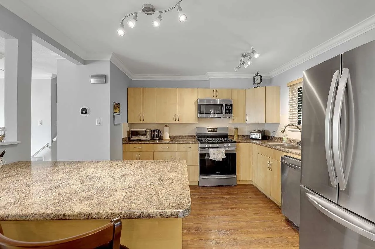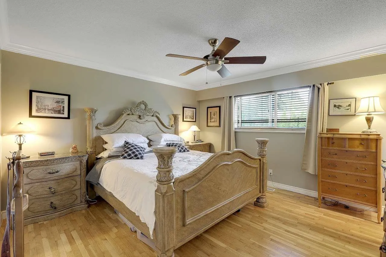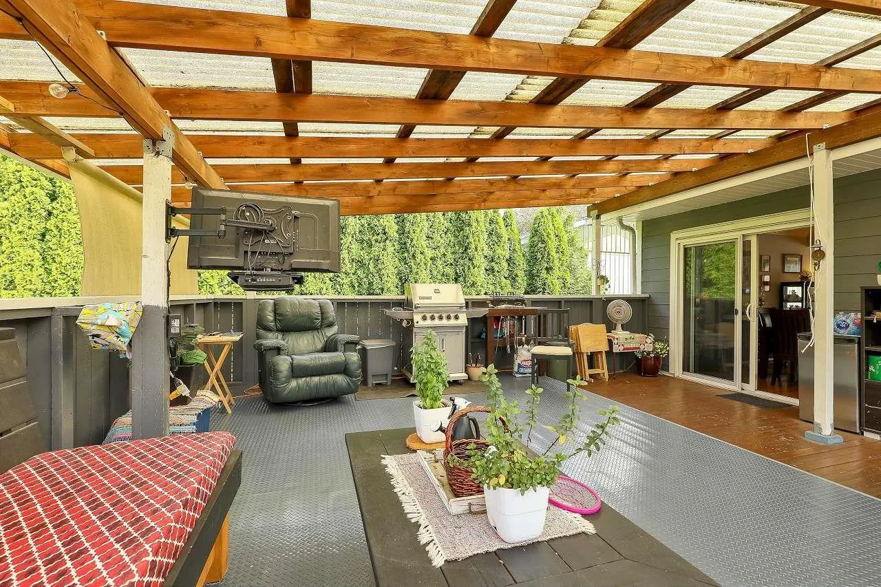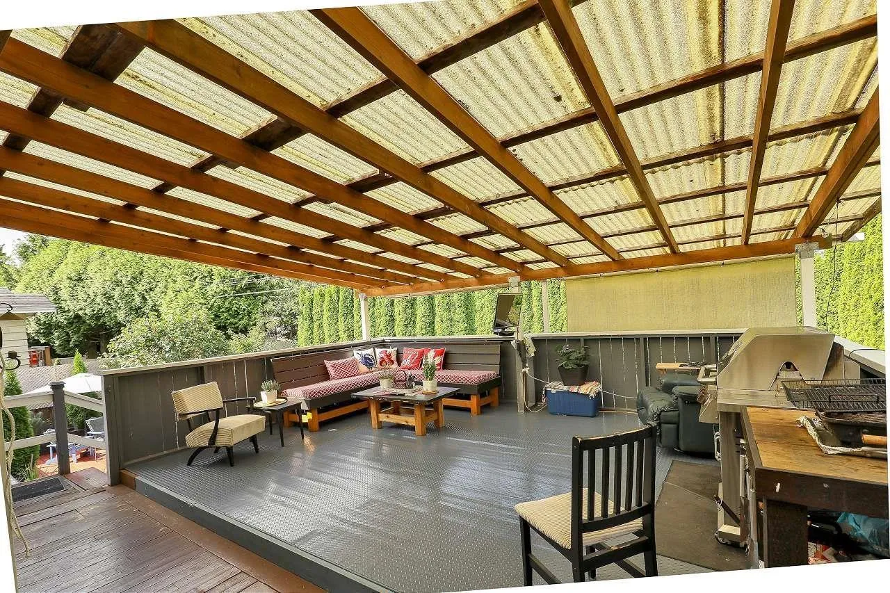 Lovingly maintained and updated over the years. Over 2200 sq ft 4 bdrm, 3 bath, 2 kitchen, on no through part of 152 St in popular Birdland. Main fl with open plan, ideal for entertaining. Kit with large island, newer appls and all 3 bathrooms renovated, 2 recently. Other updates incl refinished hdwds, windows, heat pump & air cond, drain tiles and crown molding. New Hardy brd exterior and paint. Bsmt has new 3 piece bth updated wht kitchen and sep entrance. Huge 20 x 19 raised covered deck off dining rm overlooking a private bk yard with lower grd level deck with water feature and landscaped gardens. Within walking distance to Guildford Mall, rec centre, restaurants and schools. Easy access to Hwy 1, Port Mann, T&T and buses. (id:27476)