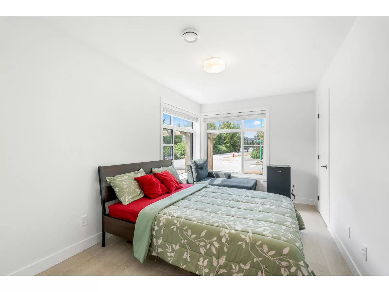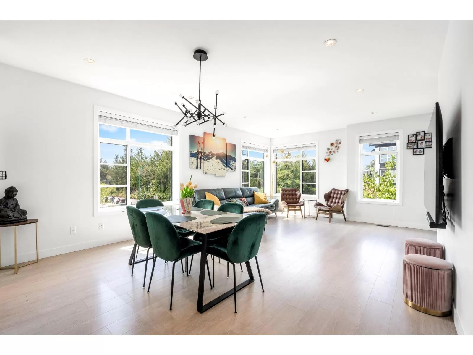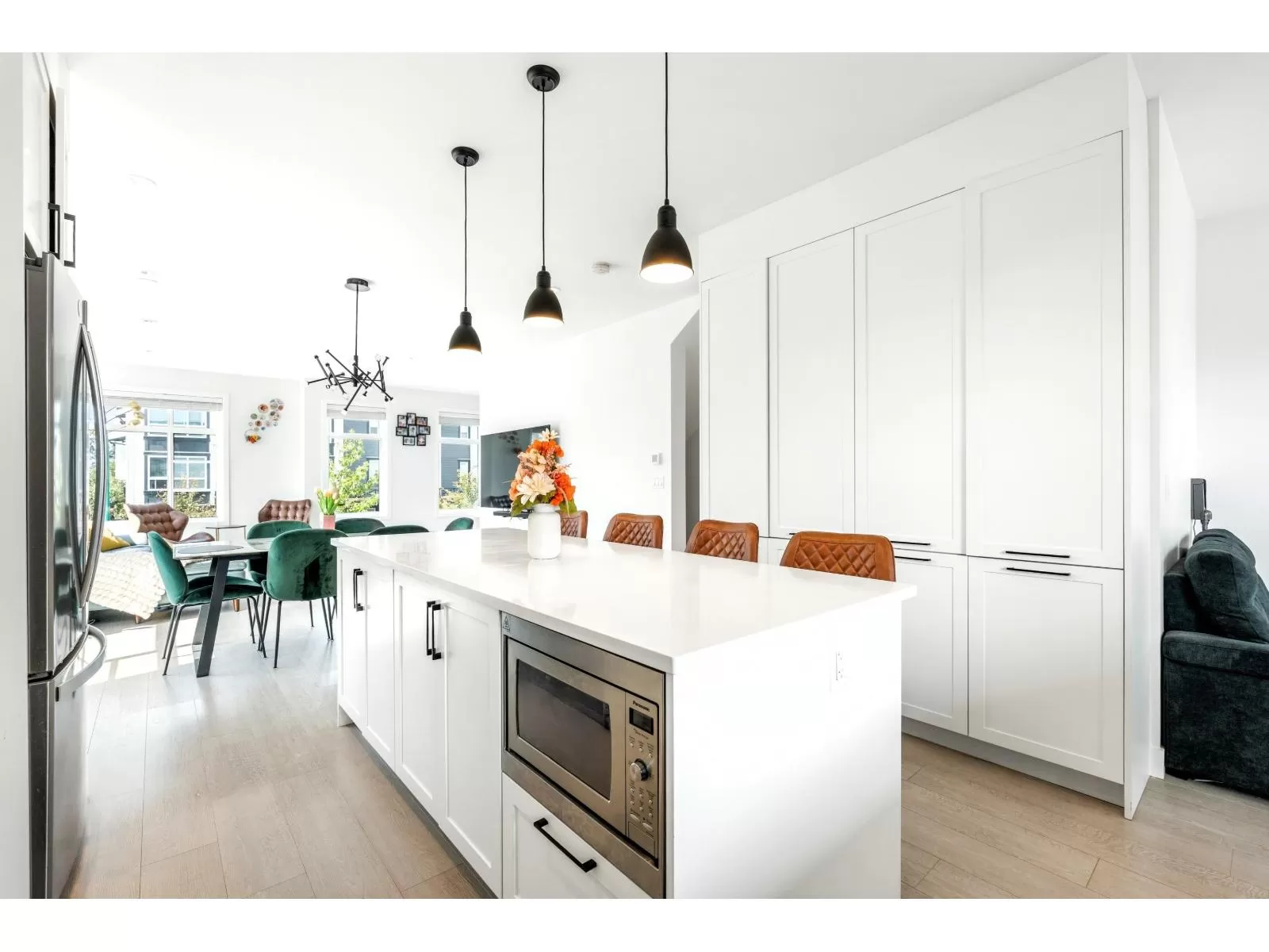 BEST-POSITIONED CORNER END UNIT! 4 Bed + Flex / 4 Bath - BUILT GREEN GOLD Certified townhome in sought-after Clayton, perfectly tucked at the quiet end of the complex with open views and abundant natural light. One of the largest floor plans, featuring upgrades like central A/C, laminate flooring throughout (including stairs & bedrooms), and custom pantry cabinetry. Functional plan offers an entry-level bedroom with ensuite, ideal for guests or in-laws, plus an upper-level primary with ensuite for added privacy. Side-by-side double garage. Steps to schools, parks, shopping, and future SkyTrain accessibility. A rare blend of location, space, and thoughtful upgrades! (id:27476)