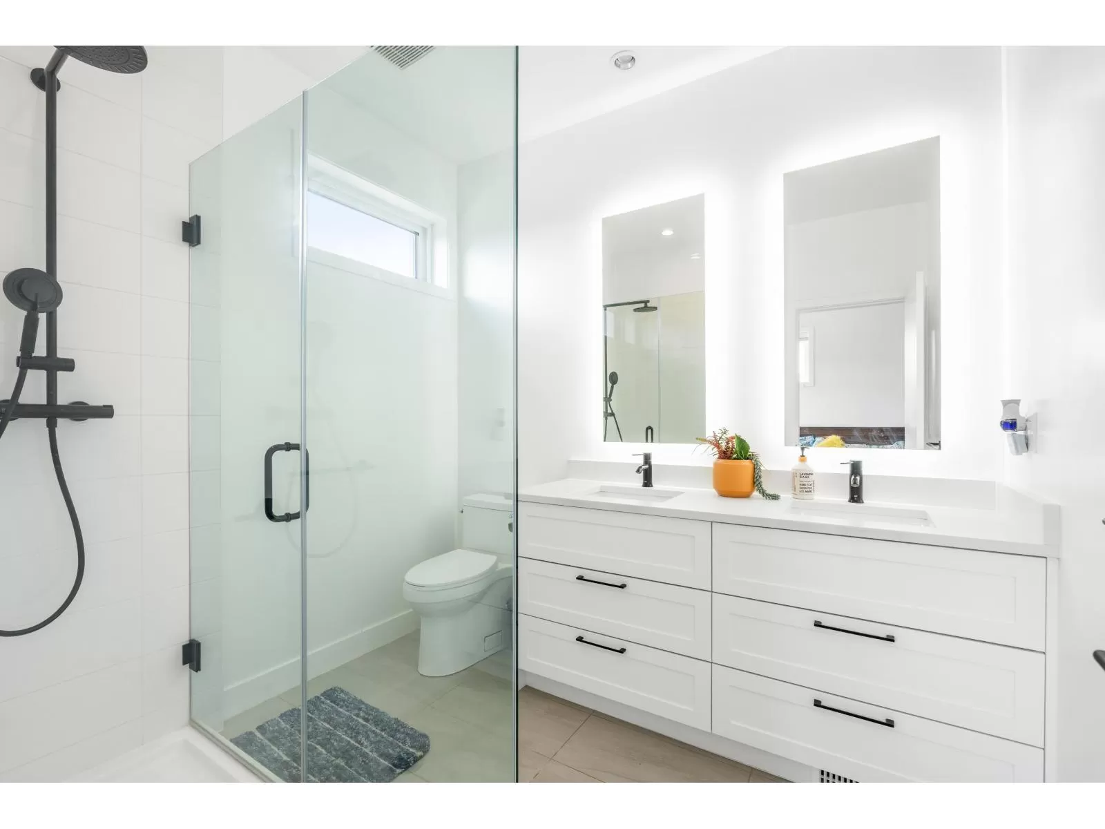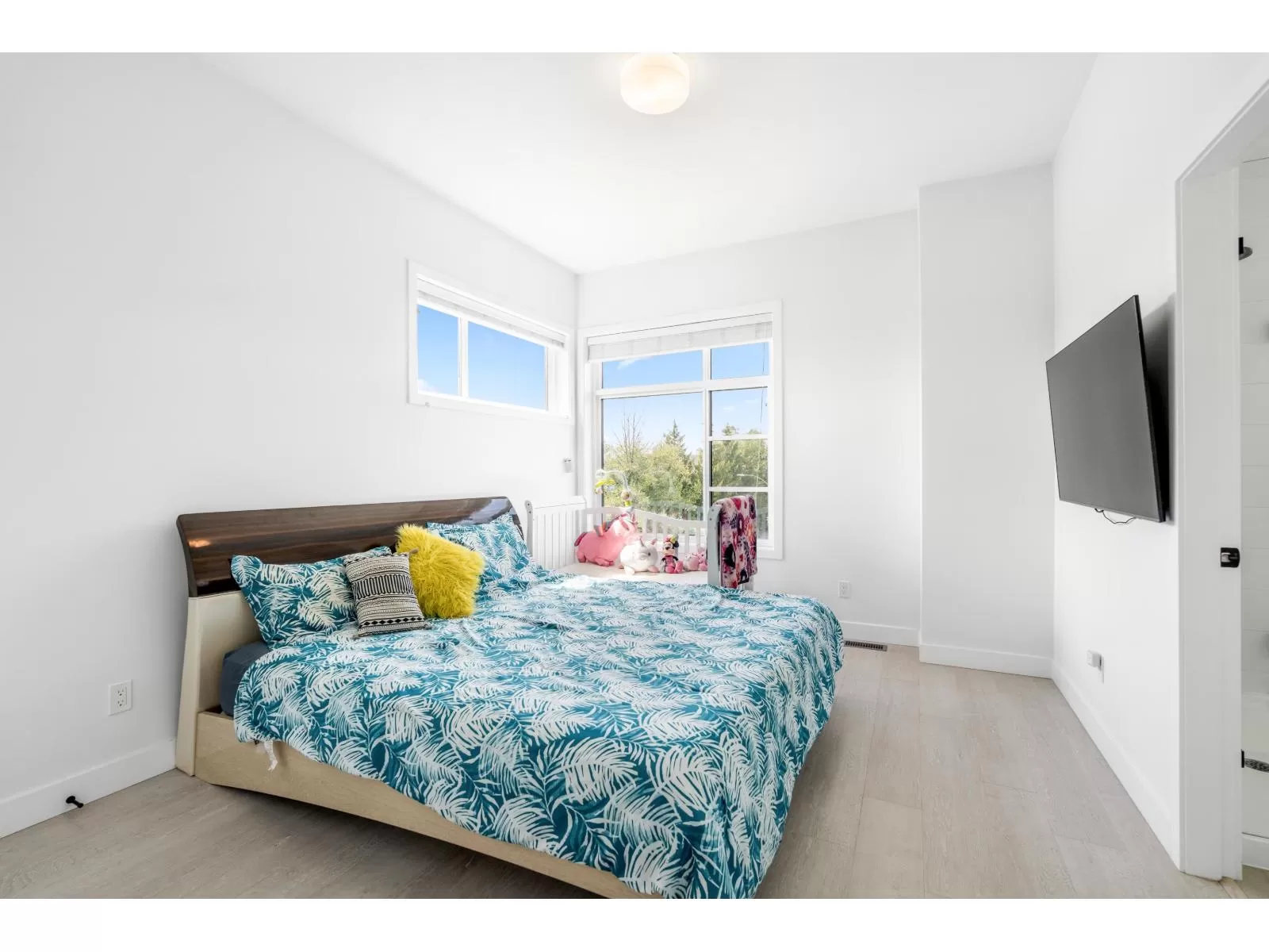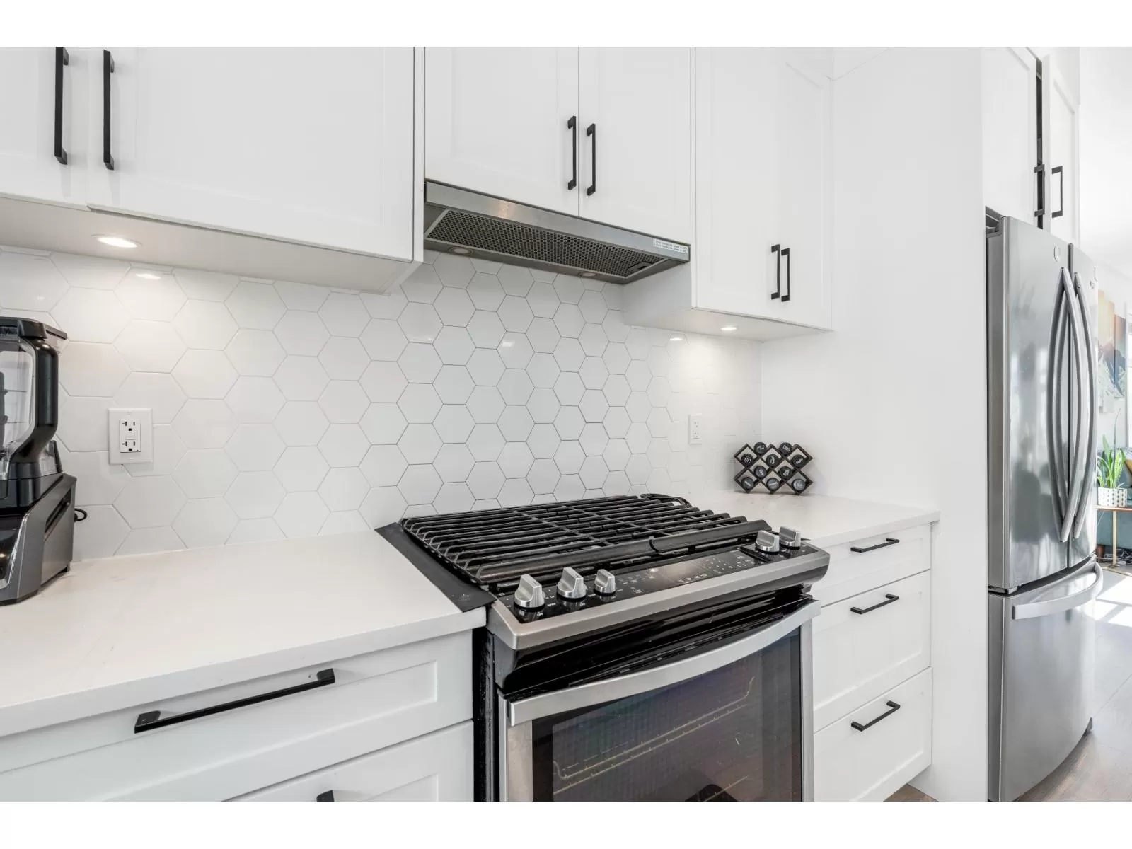 BEST-POSITIONED CORNER END UNIT! 4 Bed + Flex / 4 Bath - BUILT GREEN GOLD Certified townhome in sought-after Clayton, perfectly tucked at the quiet end of the complex with open views and abundant natural light. One of the largest floor plans, featuring upgrades like central A/C, laminate flooring throughout (including stairs & bedrooms), and custom pantry cabinetry. Functional plan offers an entry-level bedroom with ensuite, ideal for guests or in-laws, plus an upper-level primary with ensuite for added privacy. Side-by-side double garage. Steps to schools, parks, shopping, and future SkyTrain accessibility. A rare blend of location, space, and thoughtful upgrades! (id:27476)