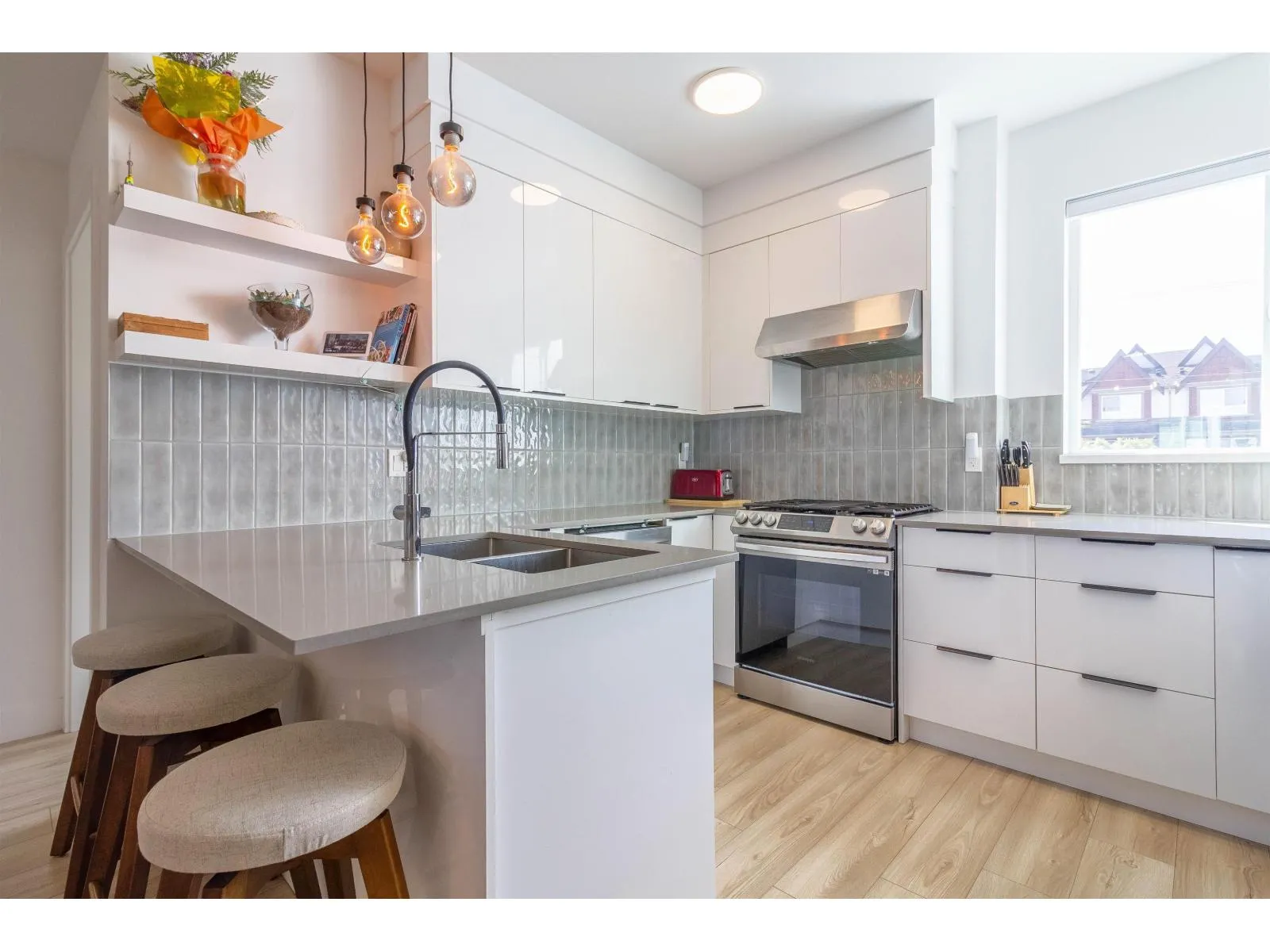 Welcome to ORENDA in vibrant Clayton Heights neighbourhood. This 4 bed 3 bath townhouse offers 9' ceilings and open-concept flow from living room to dining to kitchen, perfect for entertaining. Owner added thoughtful developer upgrades including a gas stove and wood laminate flooring throughout living spaces and bedrooms. Upstairs features 3 spacious bedrooms with primary bedroom boasting a spa-inspired ensuite and large walk-in closet. Step out to the covered patio for year-round enjoyment. Nearby are several parks, dog park and Clayton Community Centre with recreation, arts, library, gym, pool and more. Short drive to Fraser Highway. School catchments: Clayton Elementary, RE Mountain Secondary (IB program), and Ecole Salish Secondary. (id:27476)