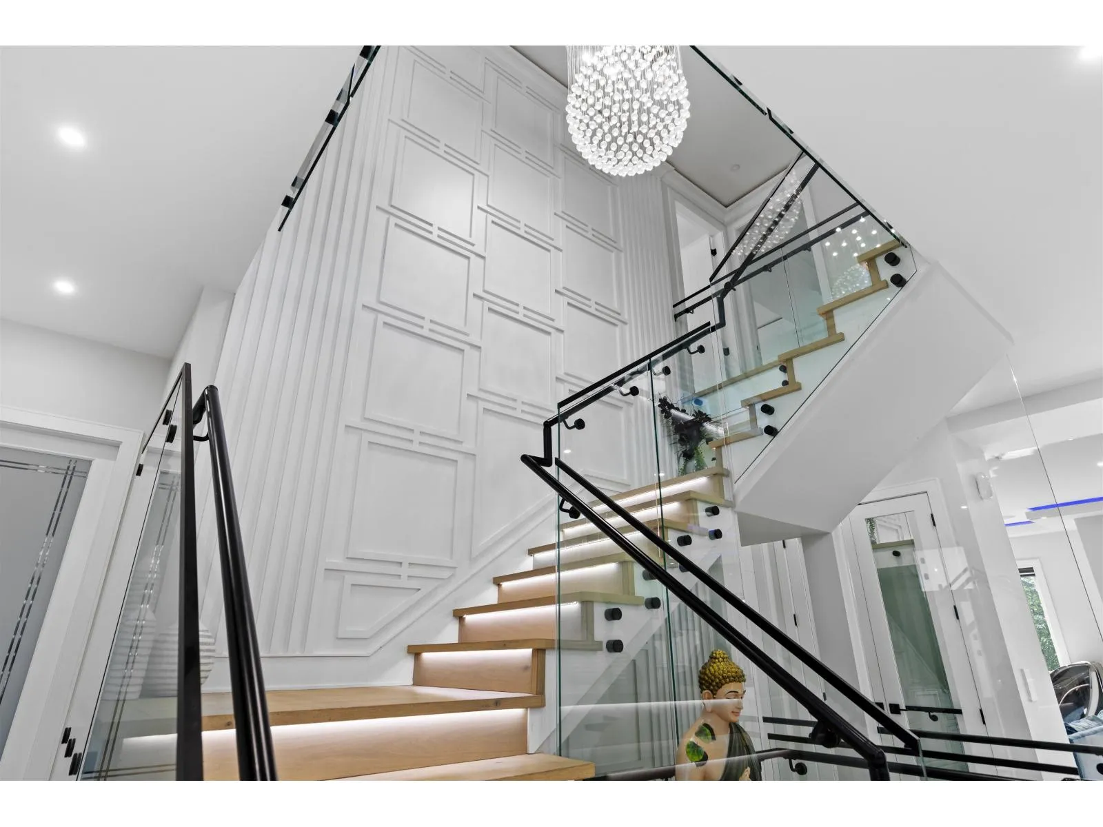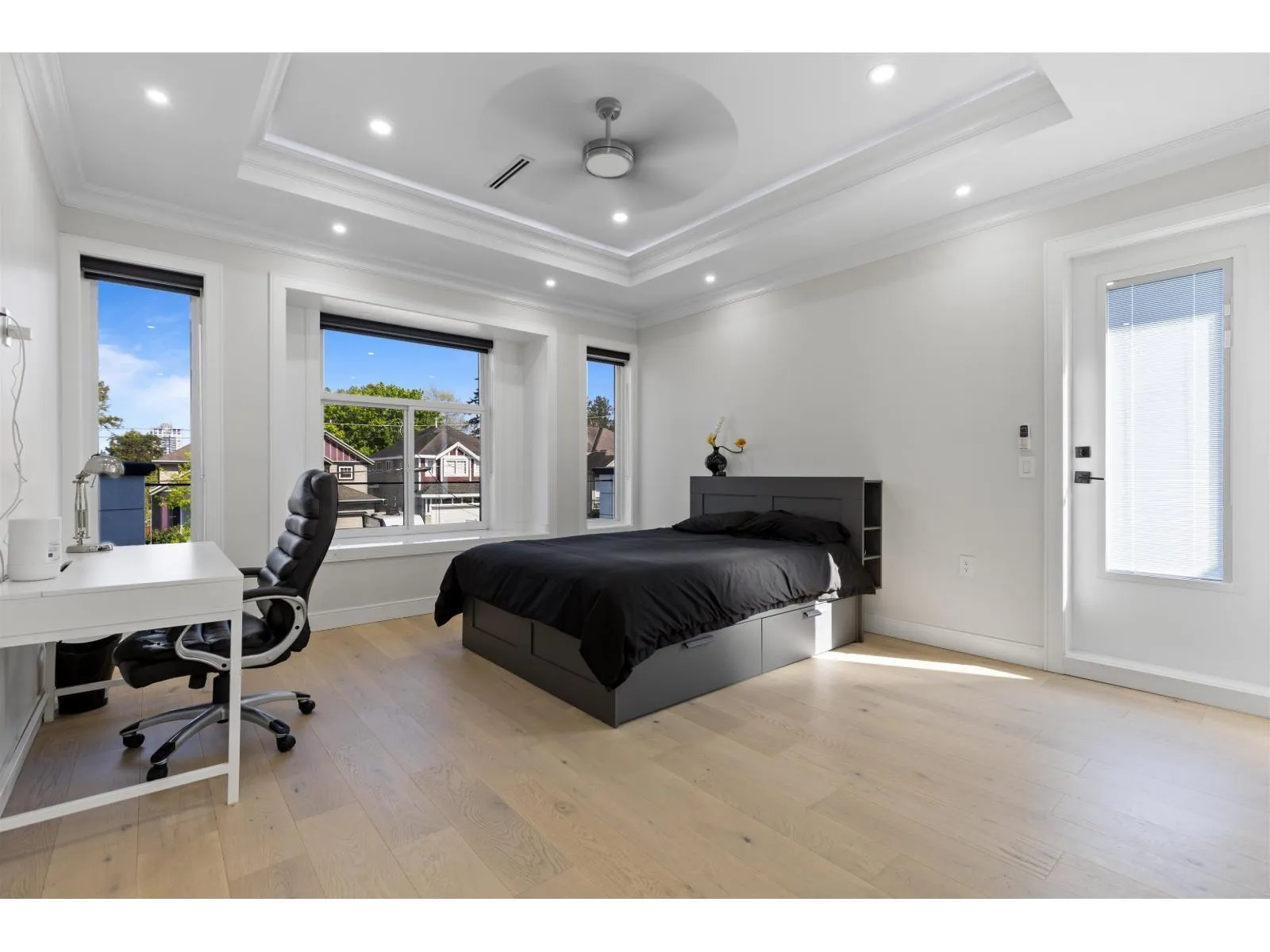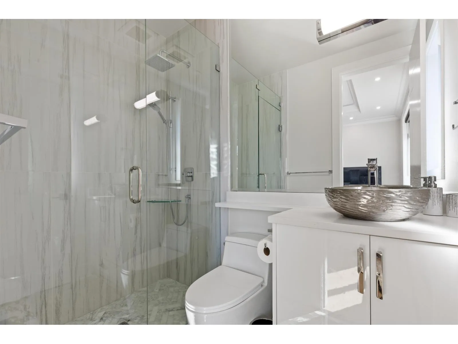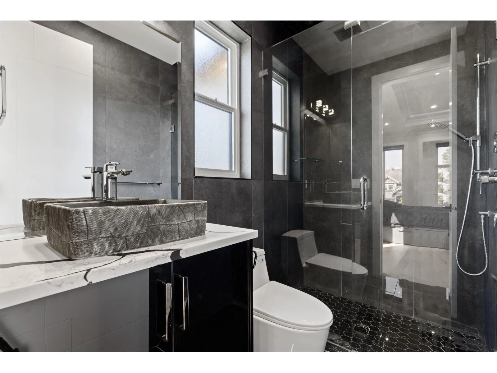Welcome to this stunning custom built brand new 3 story house in Surrey Center Features:Living ,room,dining room,huge family room, kitchen,office,guest bedroom with en-suite, office and a powder room on main floor .4 bedroom all with en-suite & a prayer room on top floor.Central air-conditioning, radiant heat, high-efficiency hot-water furnace.Basement has a huge media room with wet bar and en-suite, plus a legal two bedroom + 1 bedroom unauthorized suite rented for $3700.00 per month. Thermador appliances in main kitchen and spice kitchen, covered patios and a double car garage. 2-5-10 new home warranty. Walking distance to gateway skytrain station. All sizes approximate only ,the Buyer or the Buyer's agent to verify. (id:27476)