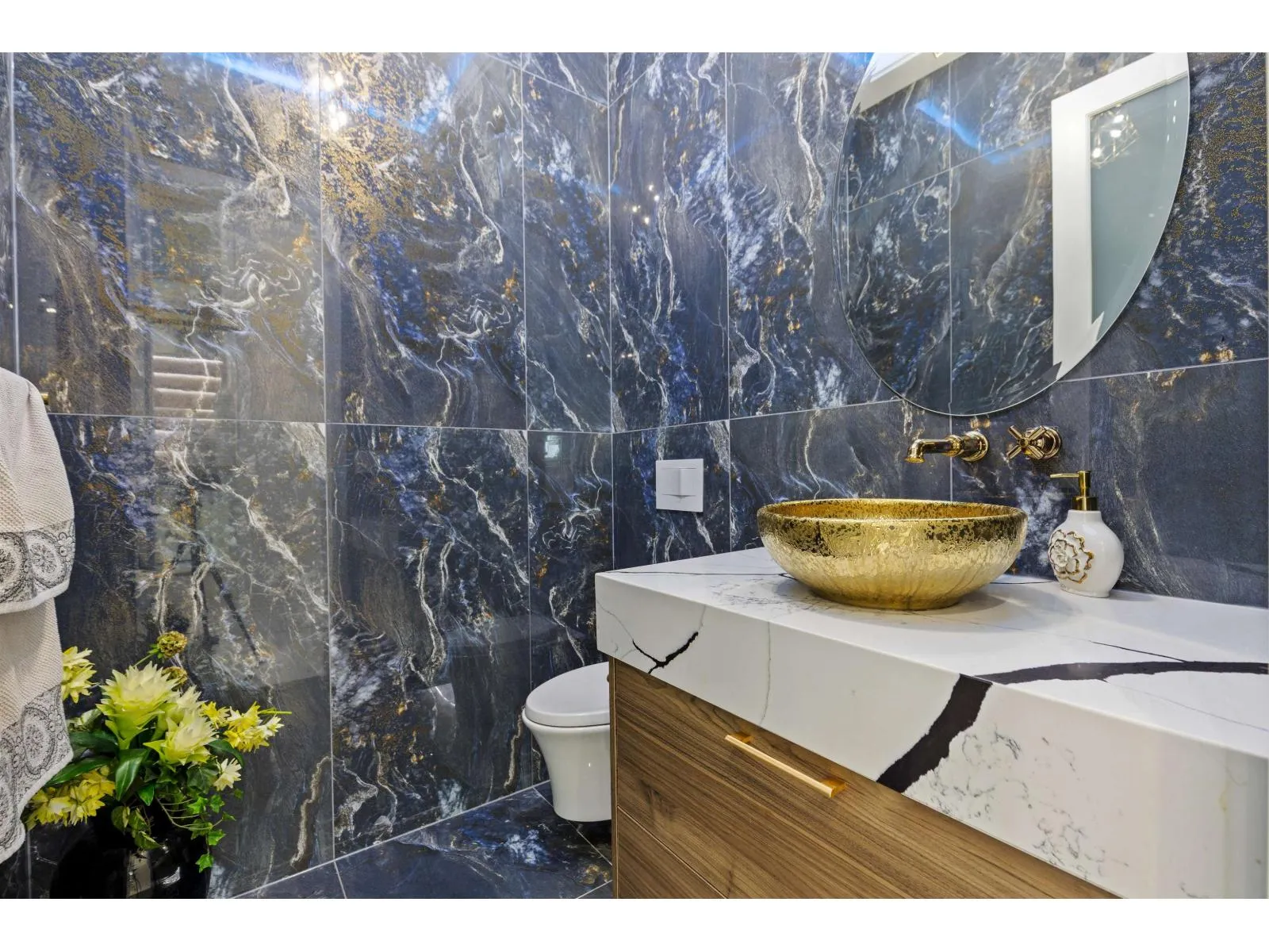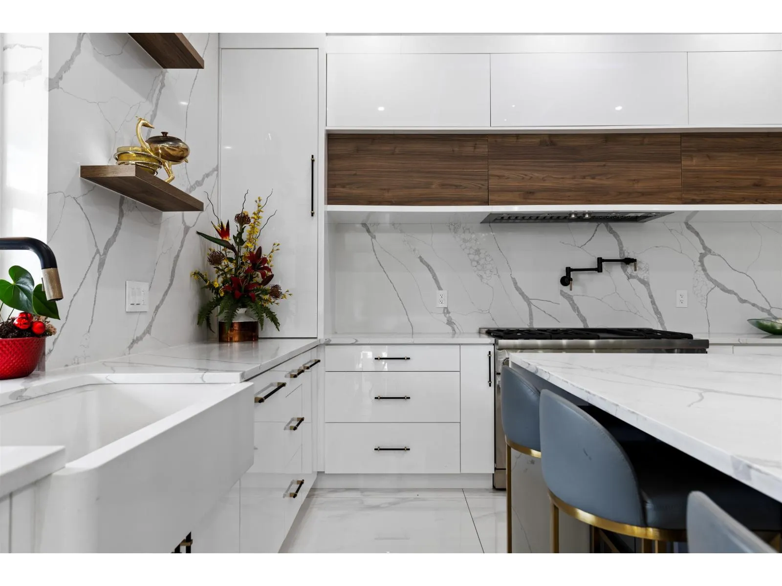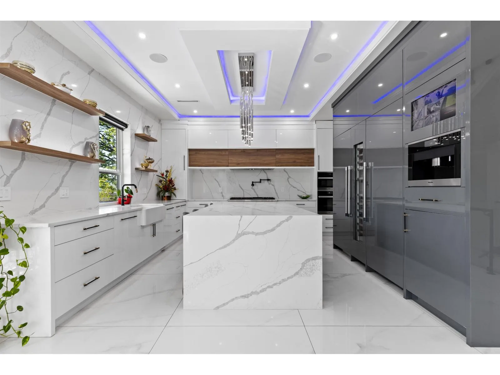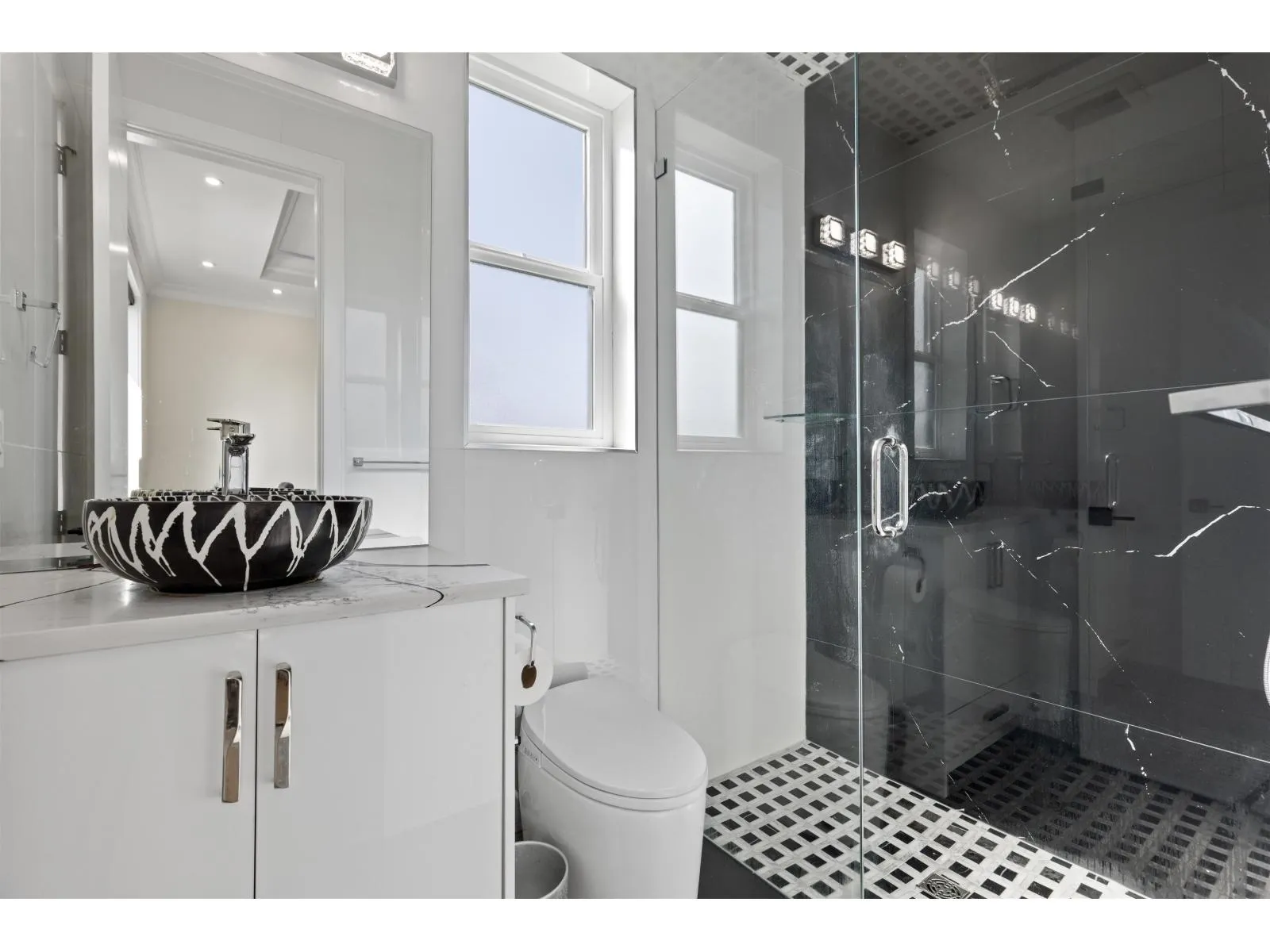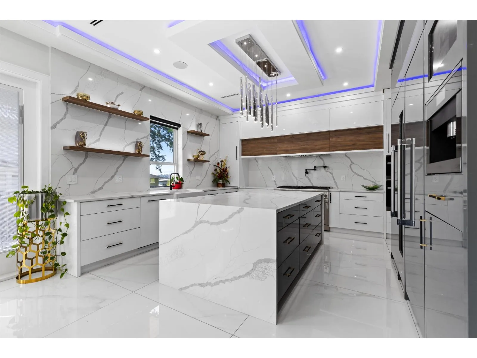 Welcome to this stunning custom built brand new 3 story house in Surrey Center Features:Living ,room,dining room,huge family room, kitchen,office,guest bedroom with en-suite, office and a powder room on main floor .4 bedroom all with en-suite & a prayer room on top floor.Central air-conditioning, radiant heat, high-efficiency hot-water furnace.Basement has a huge media room with wet bar and en-suite, plus a legal two bedroom + 1 bedroom unauthorized suite rented for $3700.00 per month. Thermador appliances in main kitchen and spice kitchen, covered patios and a double car garage. 2-5-10 new home warranty. Walking distance to gateway skytrain station. All sizes approximate only ,the Buyer or the Buyer's agent to verify. (id:27476)