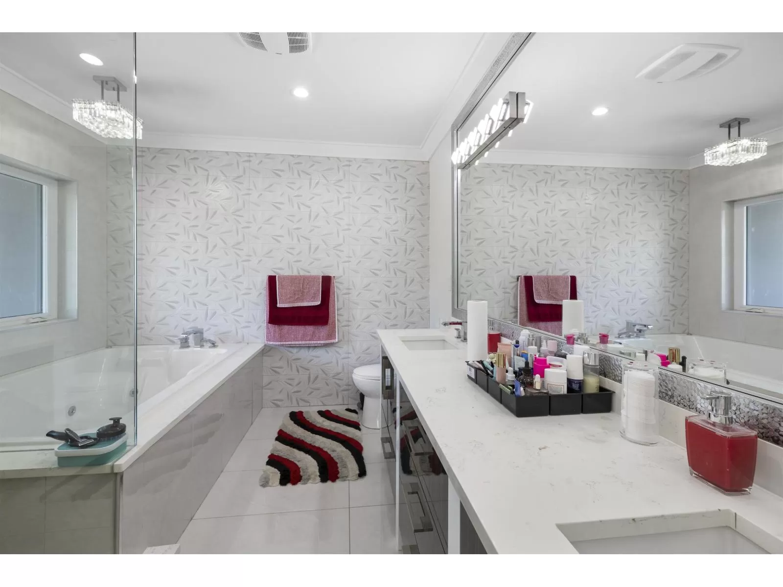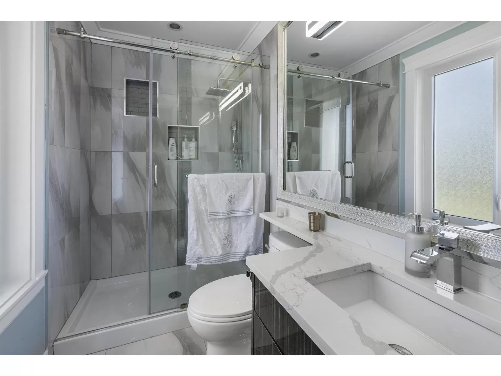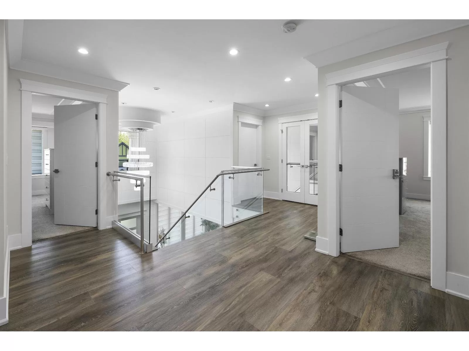 Beautifully crafted custom home offering over 6,200 sqft of living space on a large corner lot in a central, desirable area. This 9 bed, 10 bath home features a main-floor primary bedroom, spacious family room with high ceilings and large windows, and a modern kitchen with spice kitchen. The basement includes a theatre room, steam room, and two mortgage helpers 2+1, perfect for large or extended families. (id:27476)