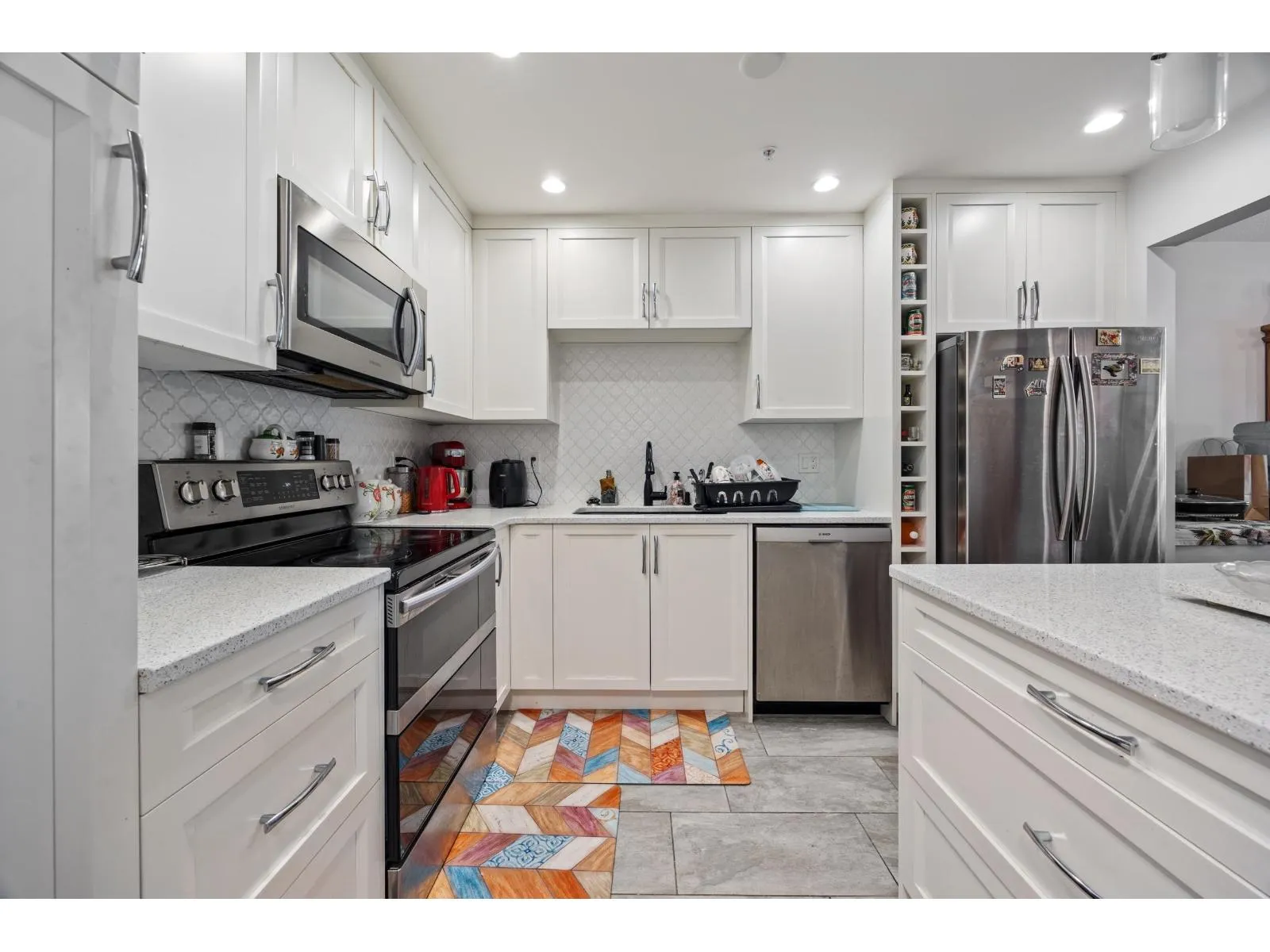 Welcome to this beautifully maintained 2-bedroom, 2-bathroom apartment offering over 1,000 sq ft of comfortable living space in the heart of South Surrey. Perfectly situated close to public transit, shopping, dining, and with easy access to Highway 99, this home combines convenience with lifestyle. Step inside to a bright and functional layout featuring a large living and dining area, ideal for both everyday living and entertaining. Enjoy your morning coffee or host guests on the generous balcony. The kitchen is well-appointed with ample cabinetry, and the convenience of in-suite laundry adds to the home's appeal. The spacious primary bedroom includes a full ensuite, while the second bedroom and bathroom are perfect for guests, a home office, or family. (id:27476)