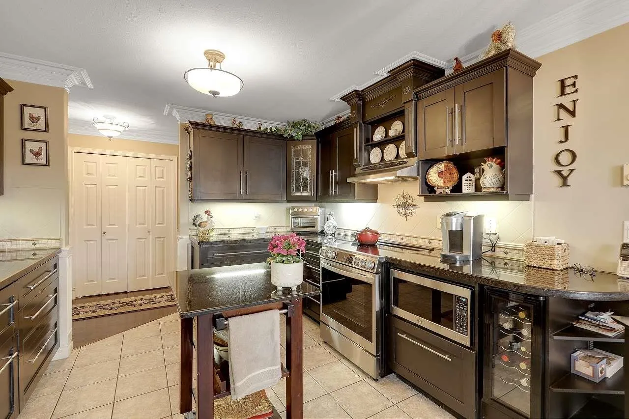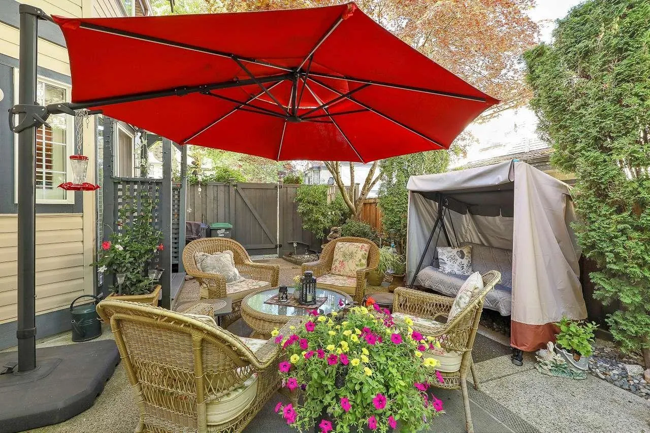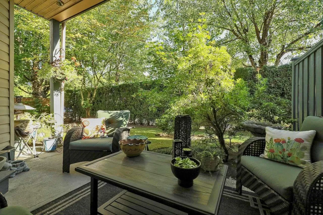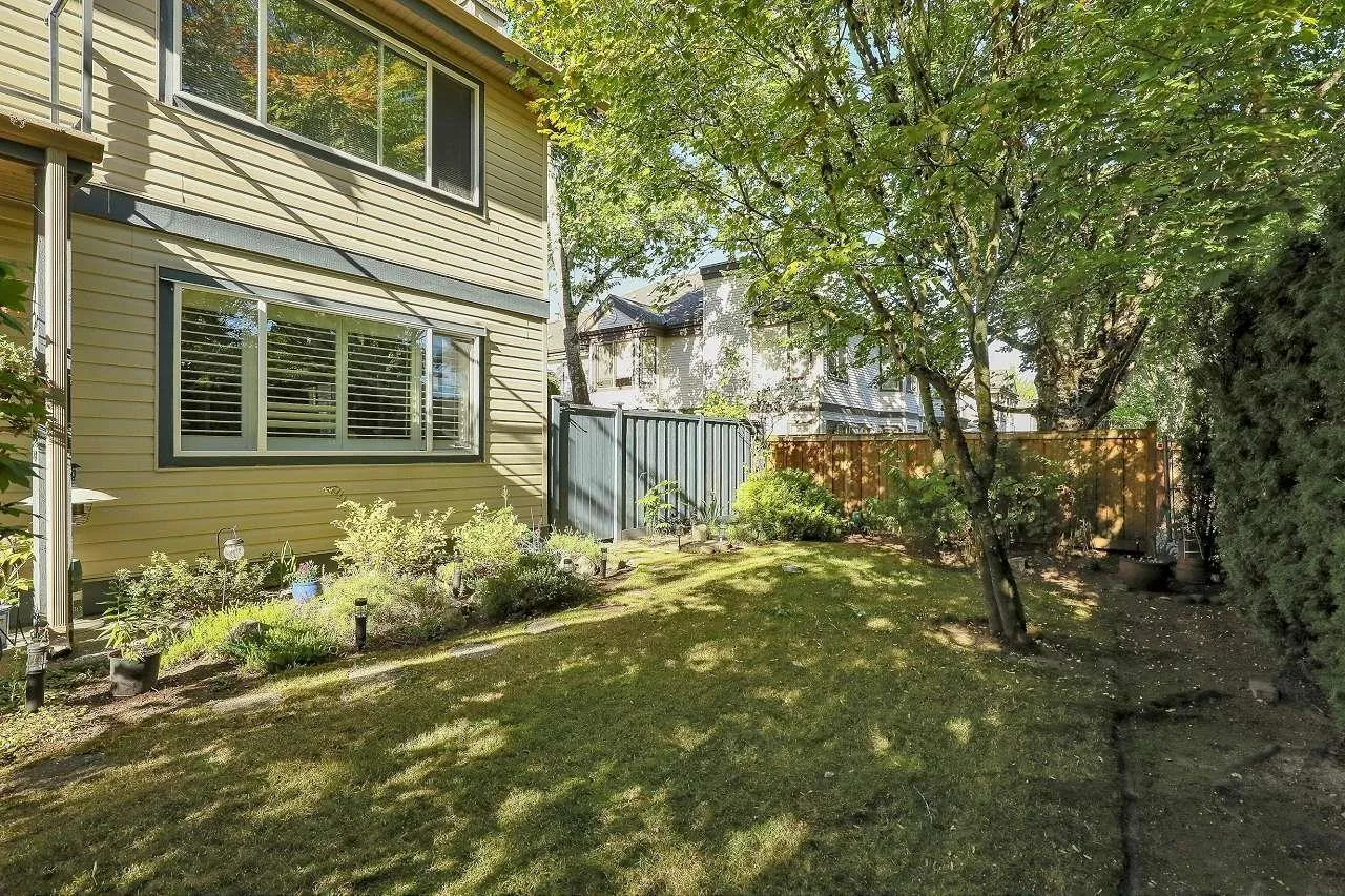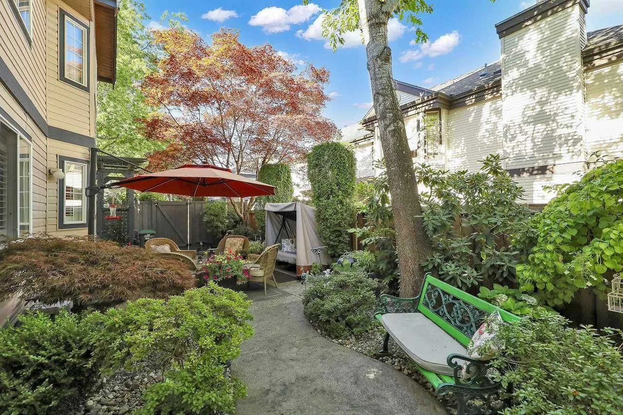 Discover this beautifully customized Townhome, End unit featuring 2 Bdrms. & 2 Bths. & boasting a Private, fully fenced & landscaped backyard-ideal for private outdoor living and entertaining. Inside, the home showcases a Chef's kitchen featuring granite countertops, tile backsplash, heavy-duty lower drawers, movable Island & Jenn-Air Stainless Steel Appliances. Premium finishes including engineered wide plank hardwood flooring, custom crown mouldings, wainscotting & baseboards plus California shutters, built-in bookcases and an entertainment unit. Huge Primary Bdrm. with Luxurious Ensuite including 5 ft. Walk-In Shower. Den or Bdrm. with Built-In Murphy bed. Elegant leaded glass French doors, upgraded light fixtures. New hot water tank, 2 Parking spots. Walk to Fresh St. Market & Transit. (id:27476)