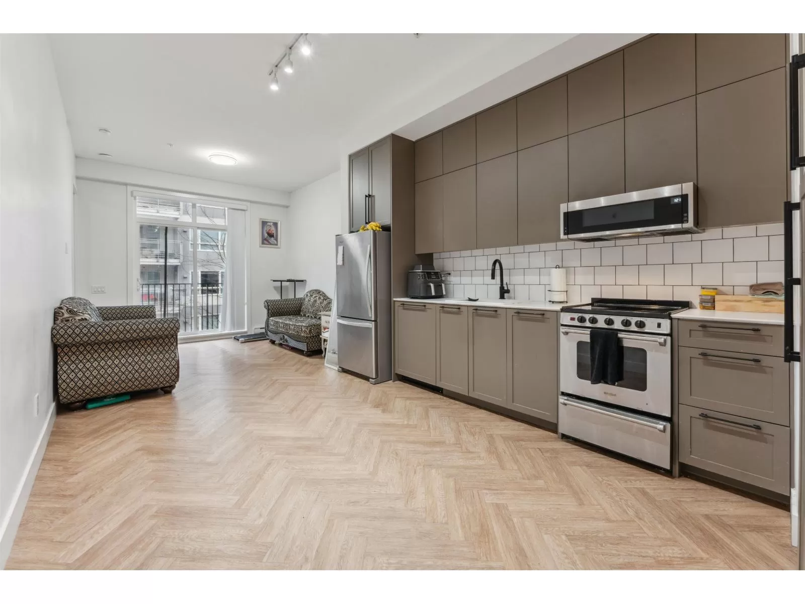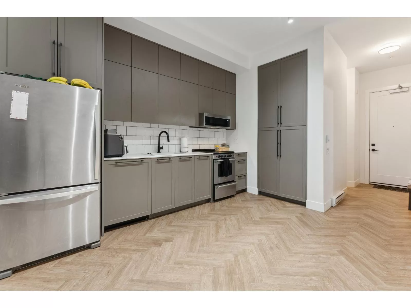 Parker by Mosaic Homes - Developed by Mosaic. Architecture Ramsay Worden Architects. A total of 218 units, consisting of 3 wood frame, 4-storey buildings, including a large outdoor amenity space. Located adjacent to the beautiful Forsyth Park, close to Hawthorne Rotary Park, close to Surrey City Centre where you'll find campuses for both SFU & KPU, access to rapid tr, walking distance to dog friendly off-lease parks and Our Lady of Good Counsel Church. This unit feat. 807 SQ.FT of living and 55 Ft of Balcony w/ 2 BDRMS/1.5 BATHS & 2 car parkings. 10-foot Ceilings throughout, contemporary baseboard and doorway trims blend, oversized windows to increase natural light. Spa inspired bathrooms w/ over-sized porcelain tiles in a marble-like finish. Book your Showings! (id:27476)