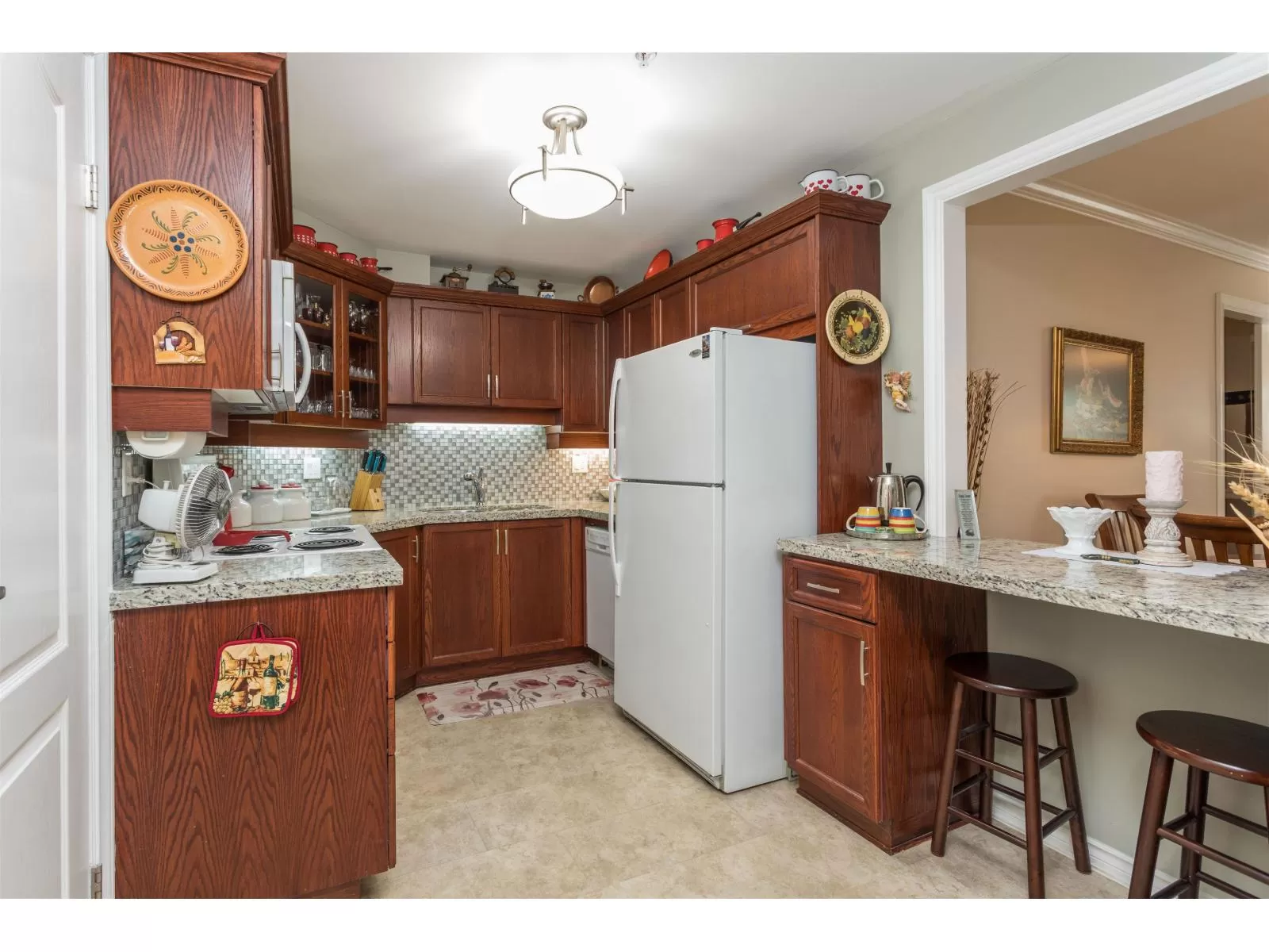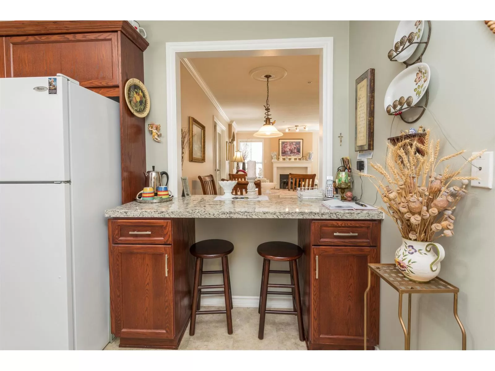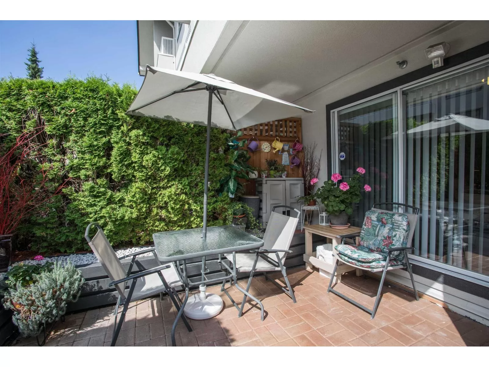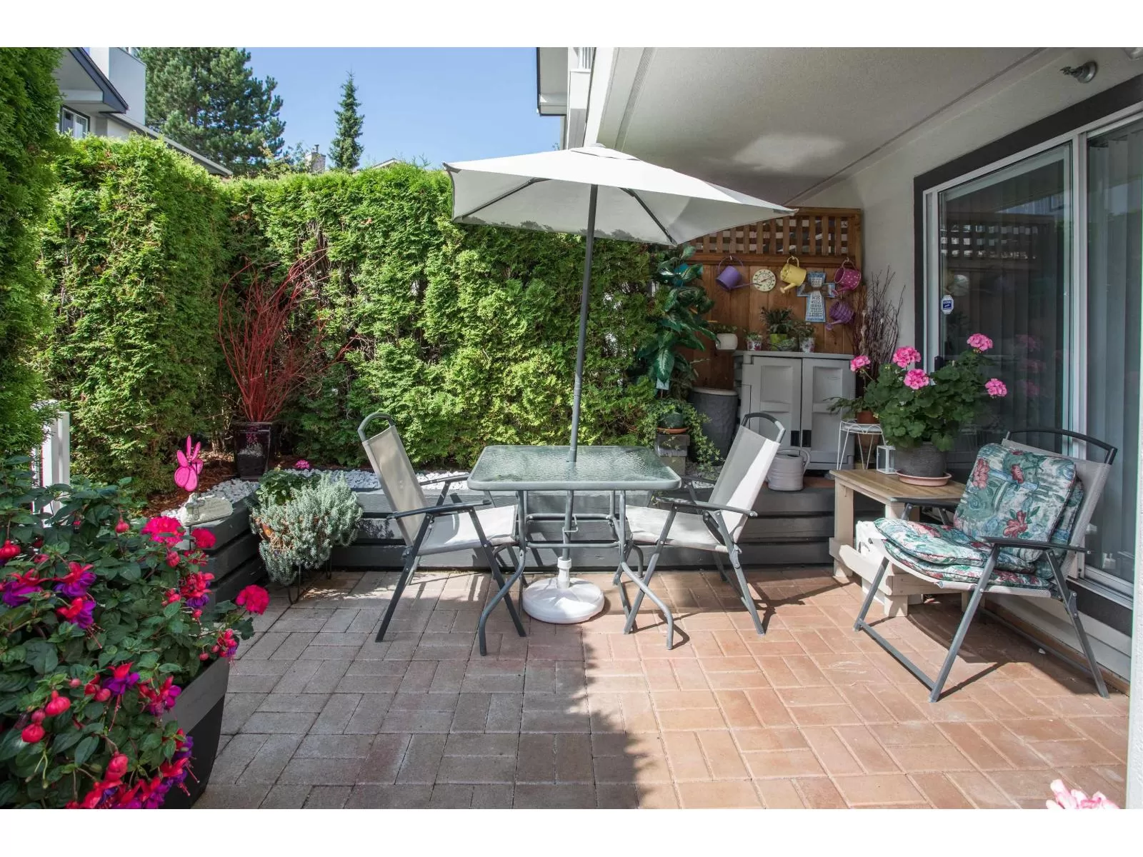 GROUND FLOOR BEAUTY !! PRIVATE south facing patio, 20 ft x 10ft , ready for your green thumb , + storage shed(7 ft x 3.5 FT)included . Updated with Granite counter tops ,paint, new kitchen doors ,vanities, toilets and some custom cabinets. Lots of storage in PANTRY and laundry room , more than most comparable homes . Even room for your FREEZER .Convenient pass through from kitchen to dining room . Huge primary bedroom , ensuite and closets with good seperation from 2nd bedroom .Gas fireplace with gas included in low maintenance fee of $440 .No age resrictions ,no short term rentals and no pets allowed. Handyman workshop in basement. Roof done in 2017 , Hot water tank replaced in 2022, trim painted last year. SPOTLESS home ready for your inspection. (id:27476)